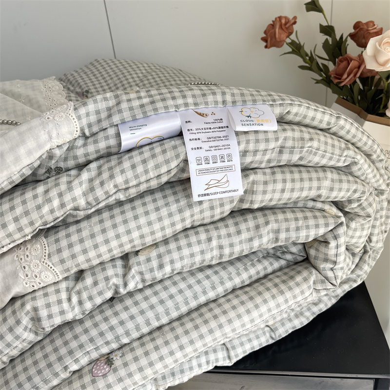 商品名称:奈萝家纺 奈萝2025新款全棉13372法式花边纯棉夏被春秋被 格子草莓
