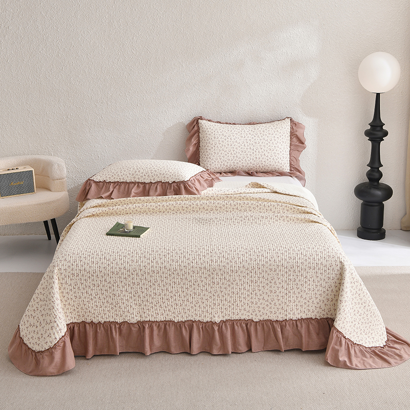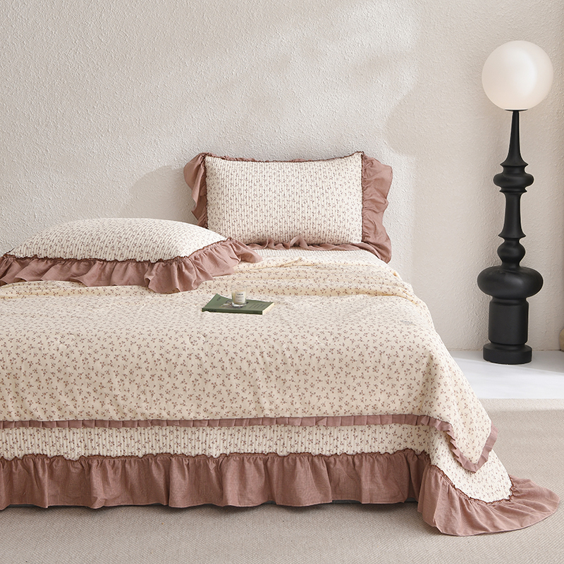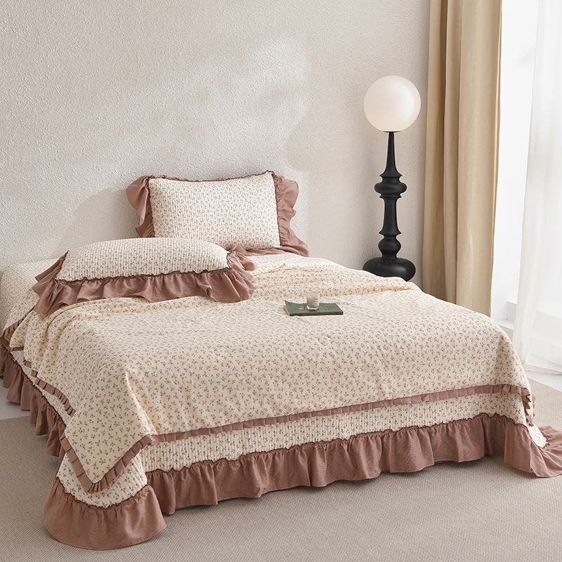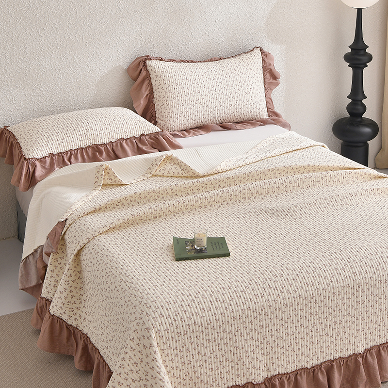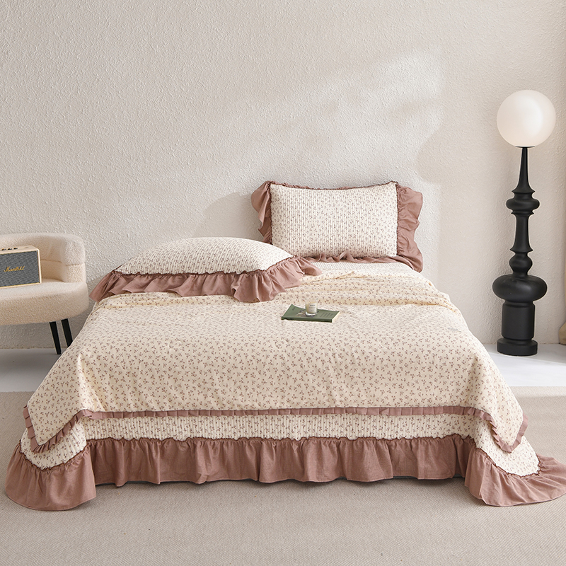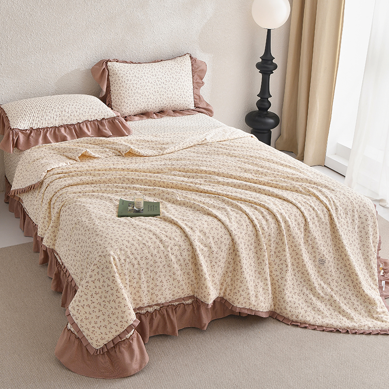 商品名称:有货 2025春夏新款全棉纯棉双层纱夏被夏凉被空调被+床盖三件套 红砚
