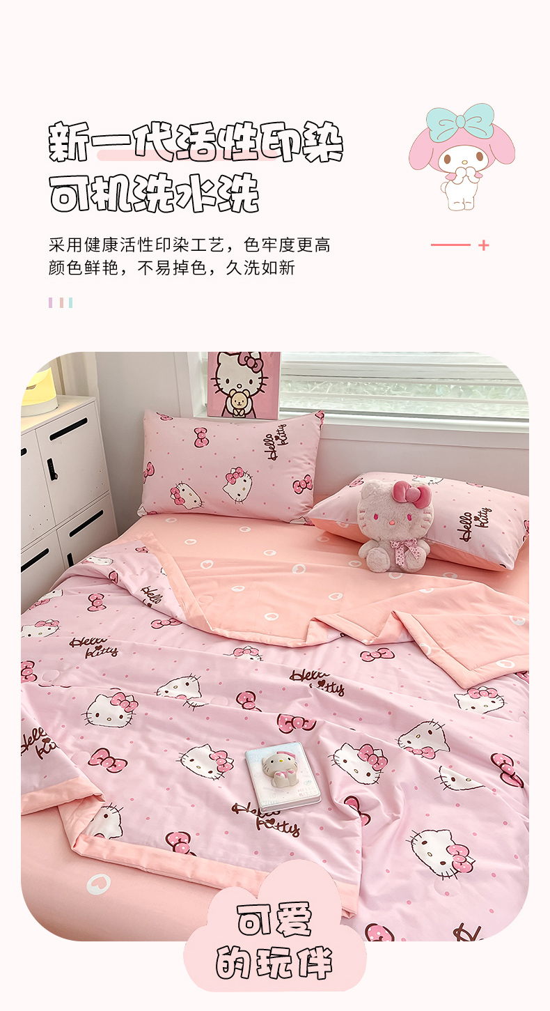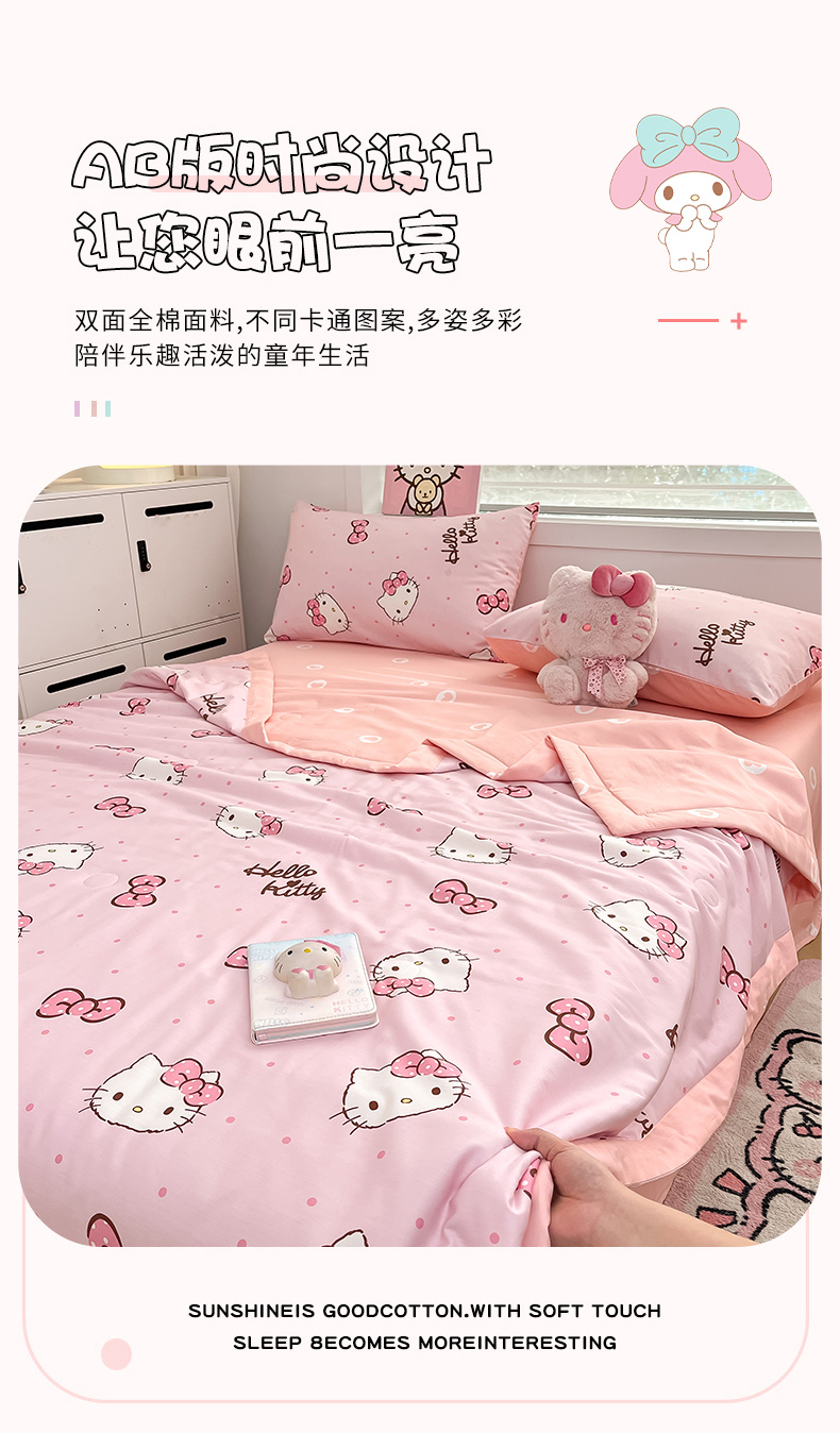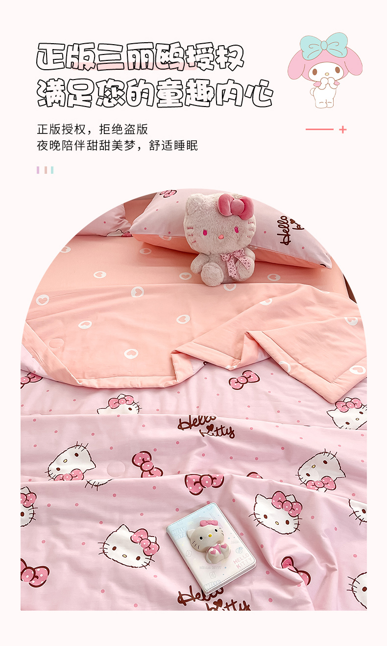 商品名称:博雅 2025新款三丽鸥全棉纯棉夏被夏凉被空调被四件套 夏被全棉-粉色蝴蝶结KT