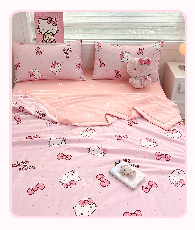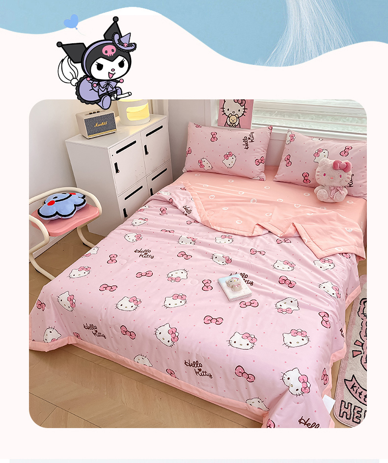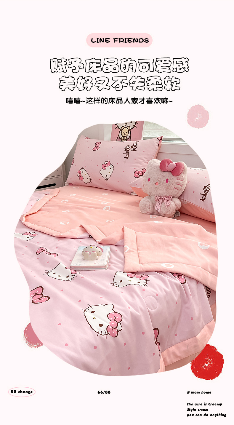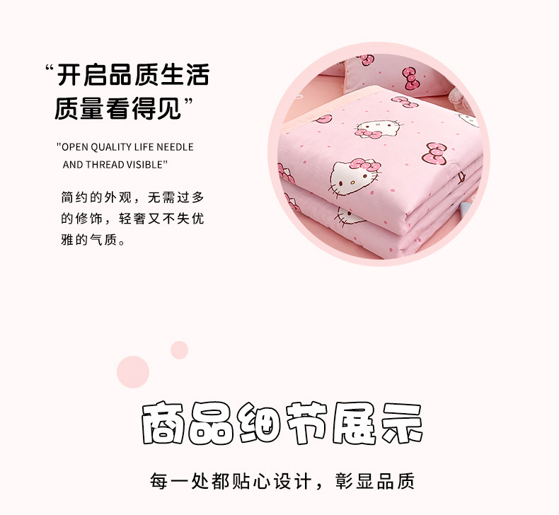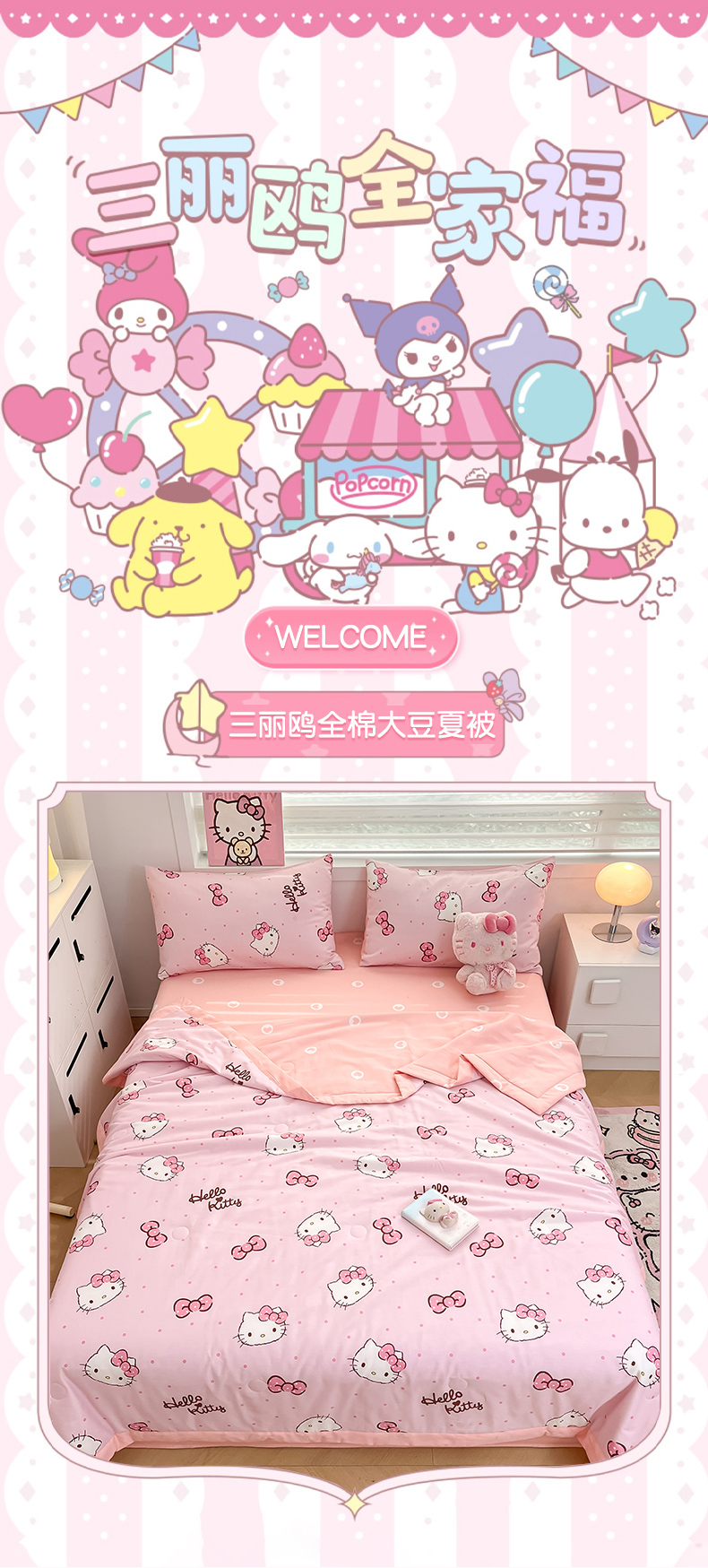 商品名称:博雅 2025新款三丽鸥全棉纯棉夏被夏凉被空调被四件套 夏被全棉-粉色蝴蝶结KT