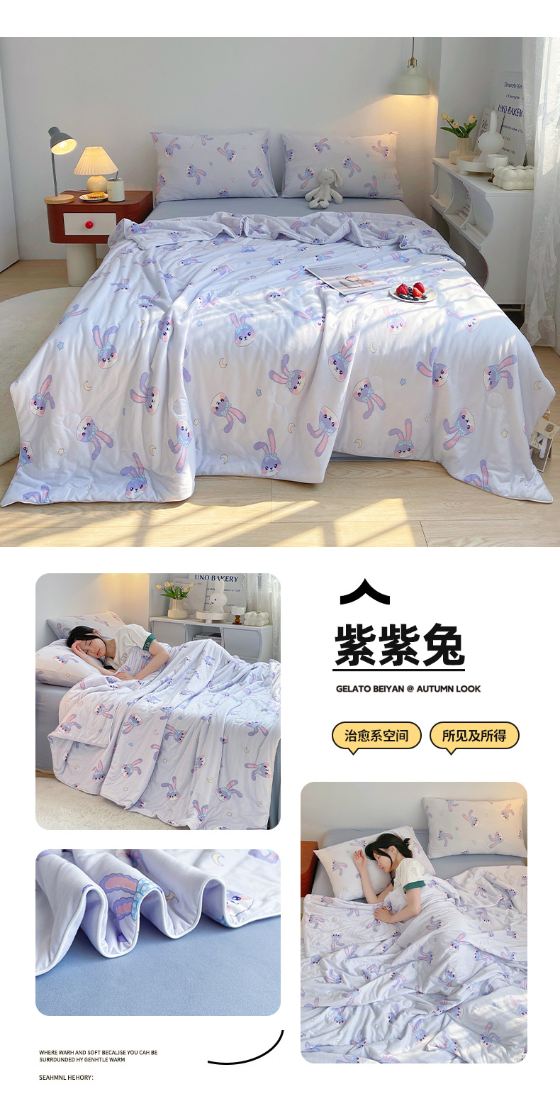 • 91家纺网 家纺一手货源 找家纺 简爱 2025新款A类针织棉大豆纤维夏被 紫紫兔