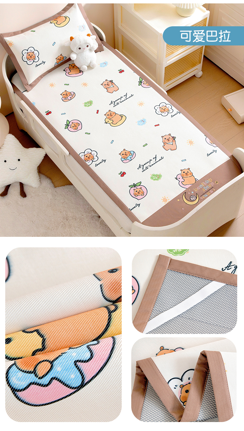 (总)宝贝优选2023新款A类儿童冰藤软席儿童凉席 儿童冰藤席支持定制,大头贴,独角兽,工程师,快乐宝宝,俏皮熊,素食者,甜心兔,晚安