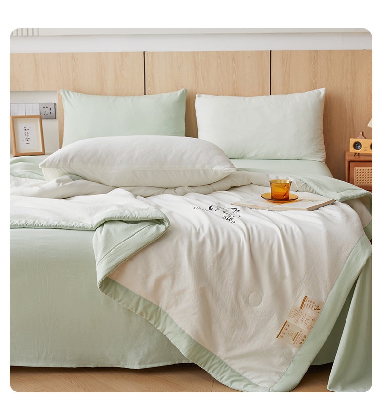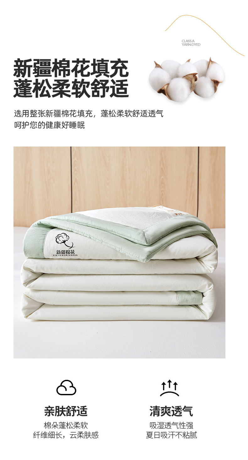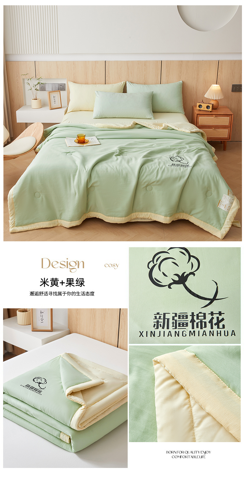 商品名称:爱屋及屋 2025新款纯色撞色100%棉花填充夏被夏凉被空调被夏季可机洗薄被子被芯 果绿+奶白