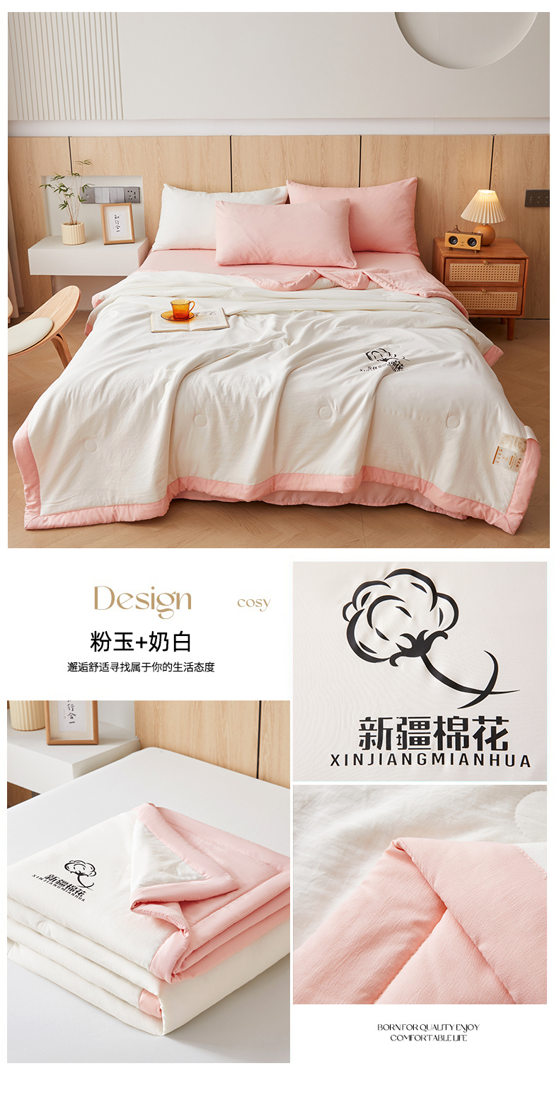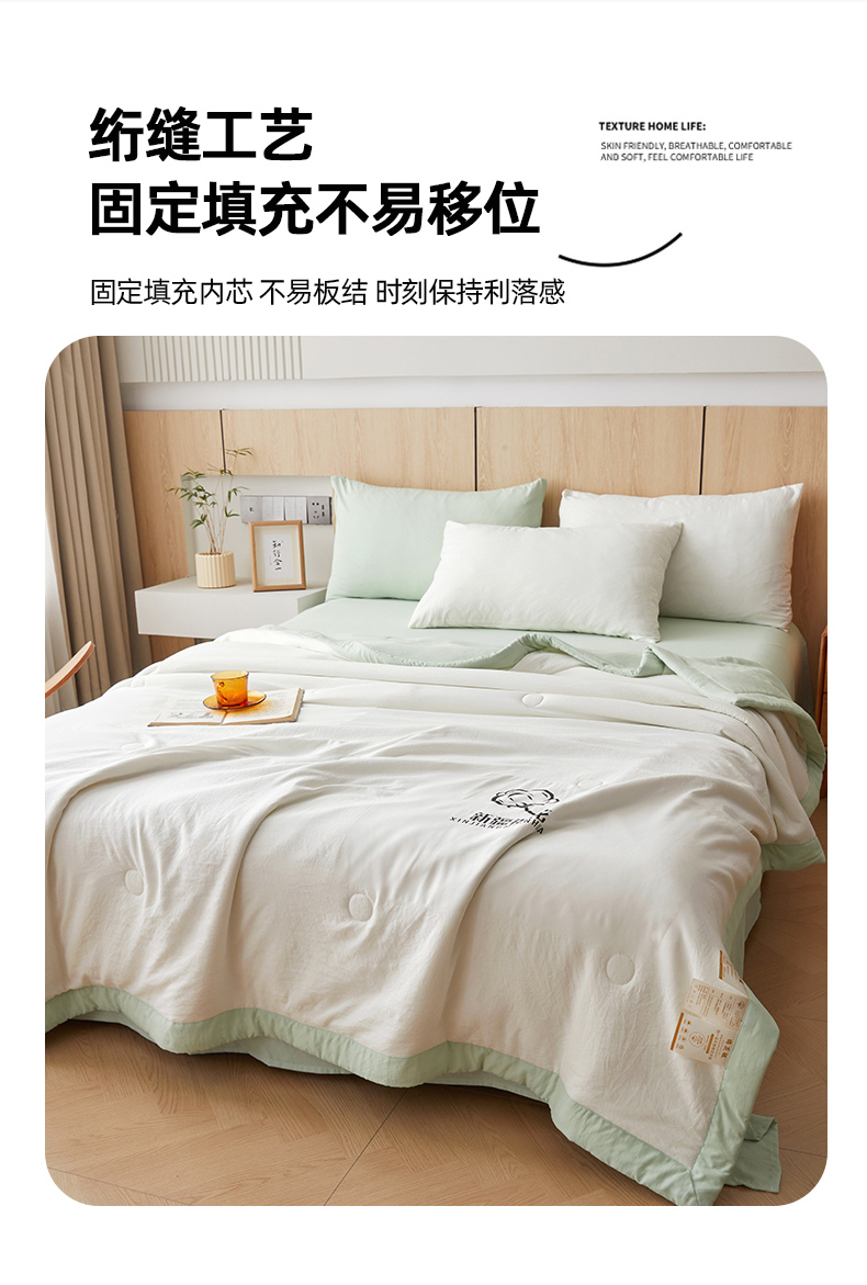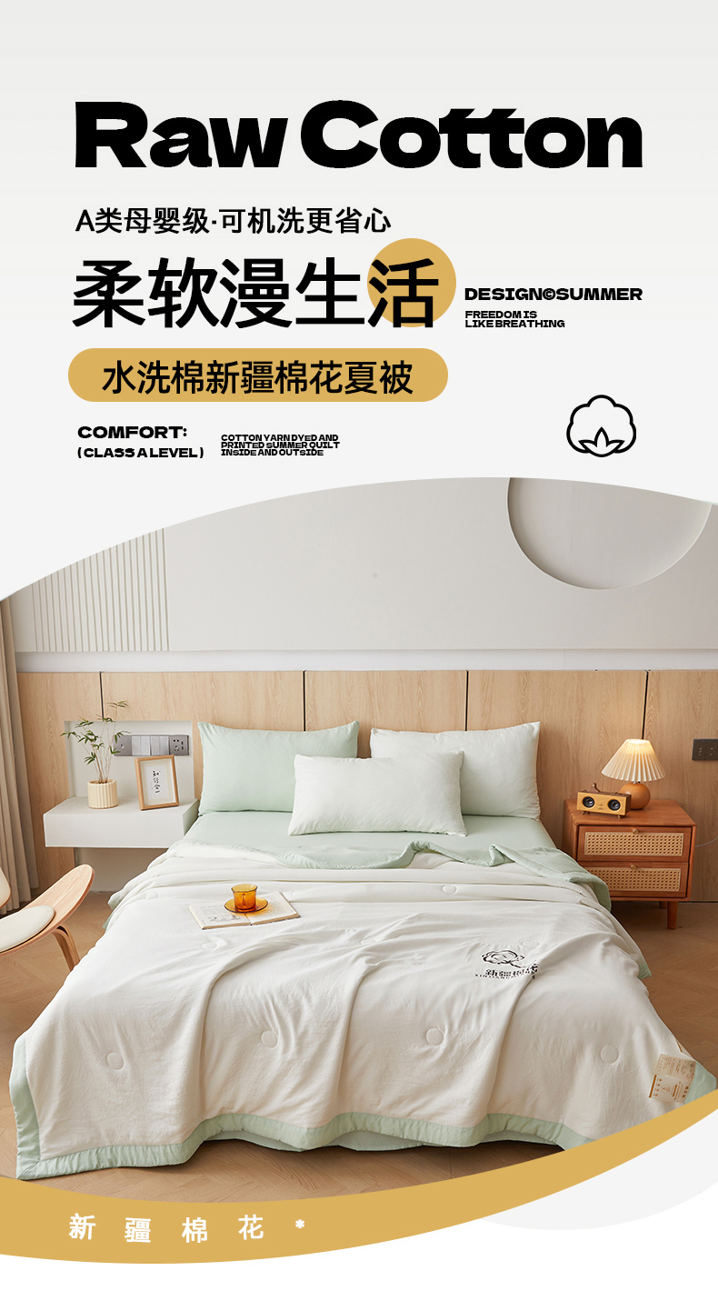 商品名称:爱屋及屋 2025新款纯色撞色100%棉花填充夏被夏凉被空调被夏季可机洗薄被子被芯 果绿+奶白