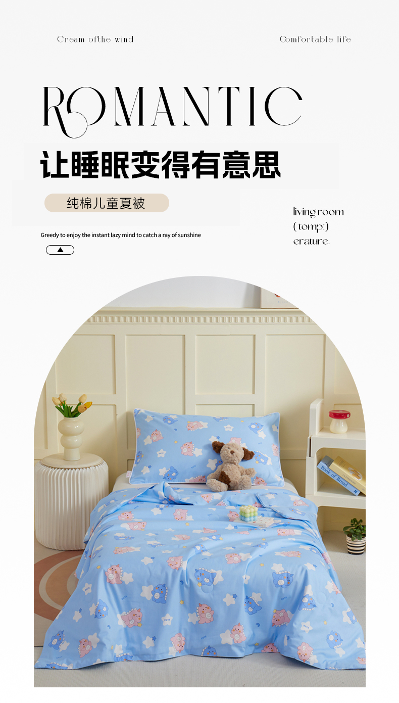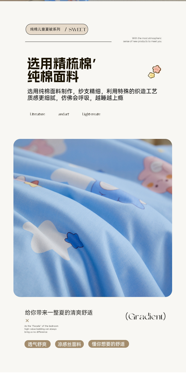 (总)ds生活馆 2025新款儿童学生纯棉精梳棉系列单夏被,森林巴士,草莓生活,海底世界,花朵小鸭,滑板巴拉,水果恐龙,太空库洛米,玩具玉桂狗,小狗熊猫,星星恐龙白,星星恐龙蓝,星星恐龙绿