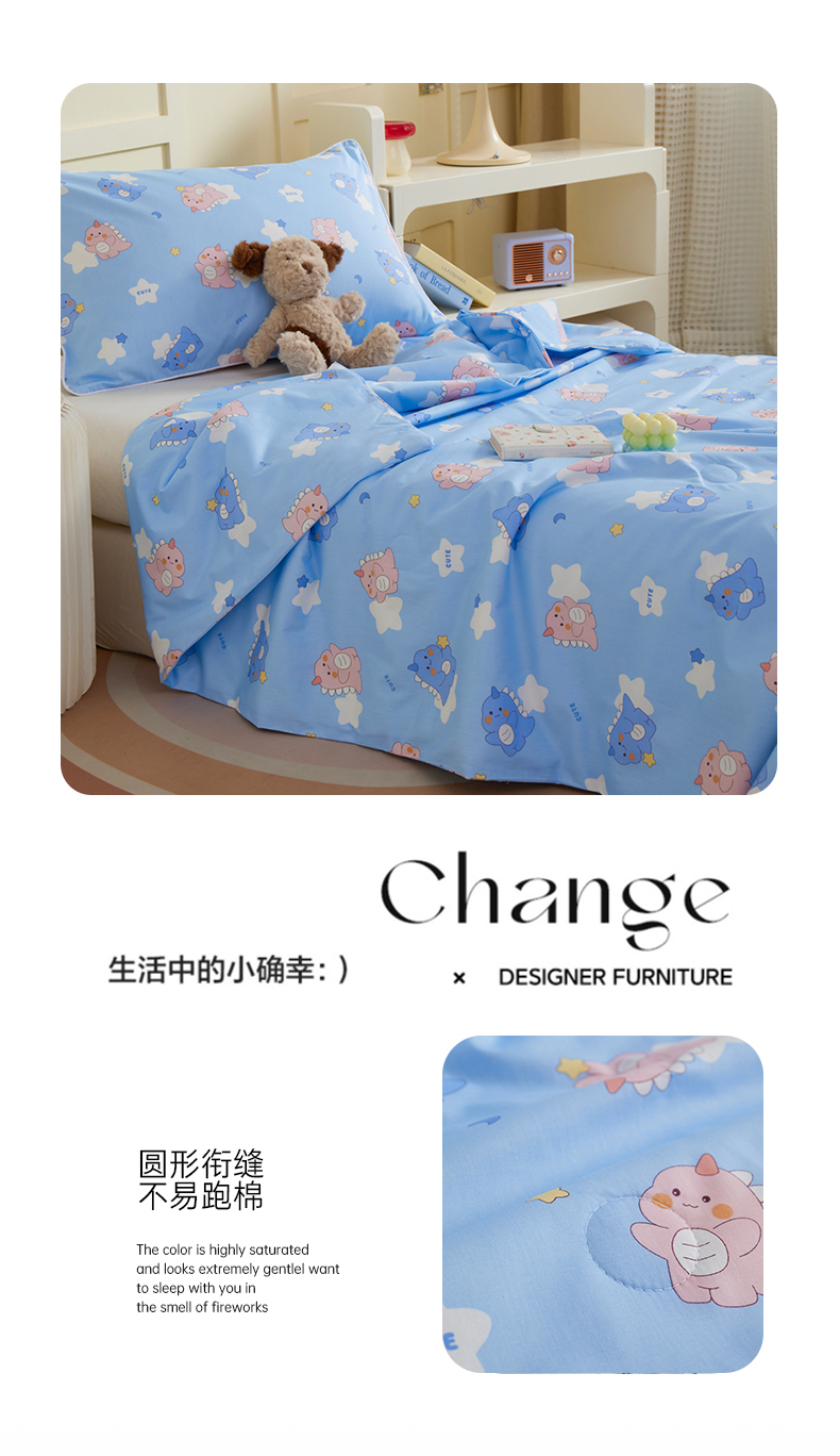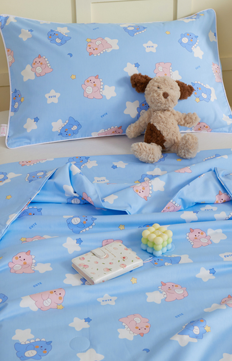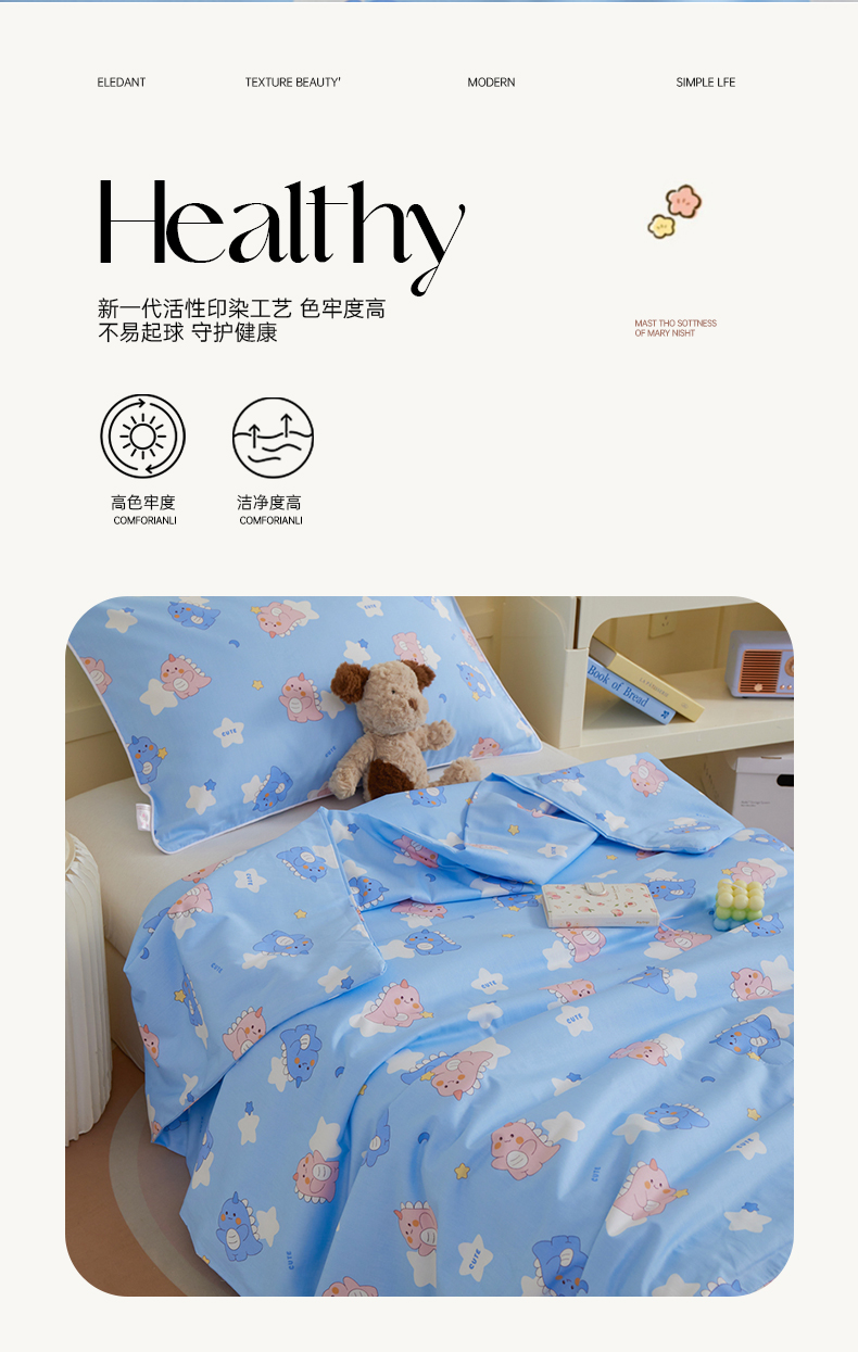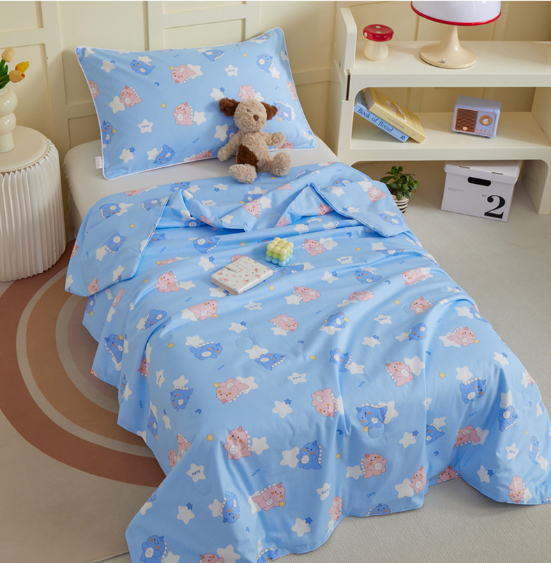 ds生活馆 2025新款儿童学生纯棉精梳棉系列单夏被 星星恐龙蓝