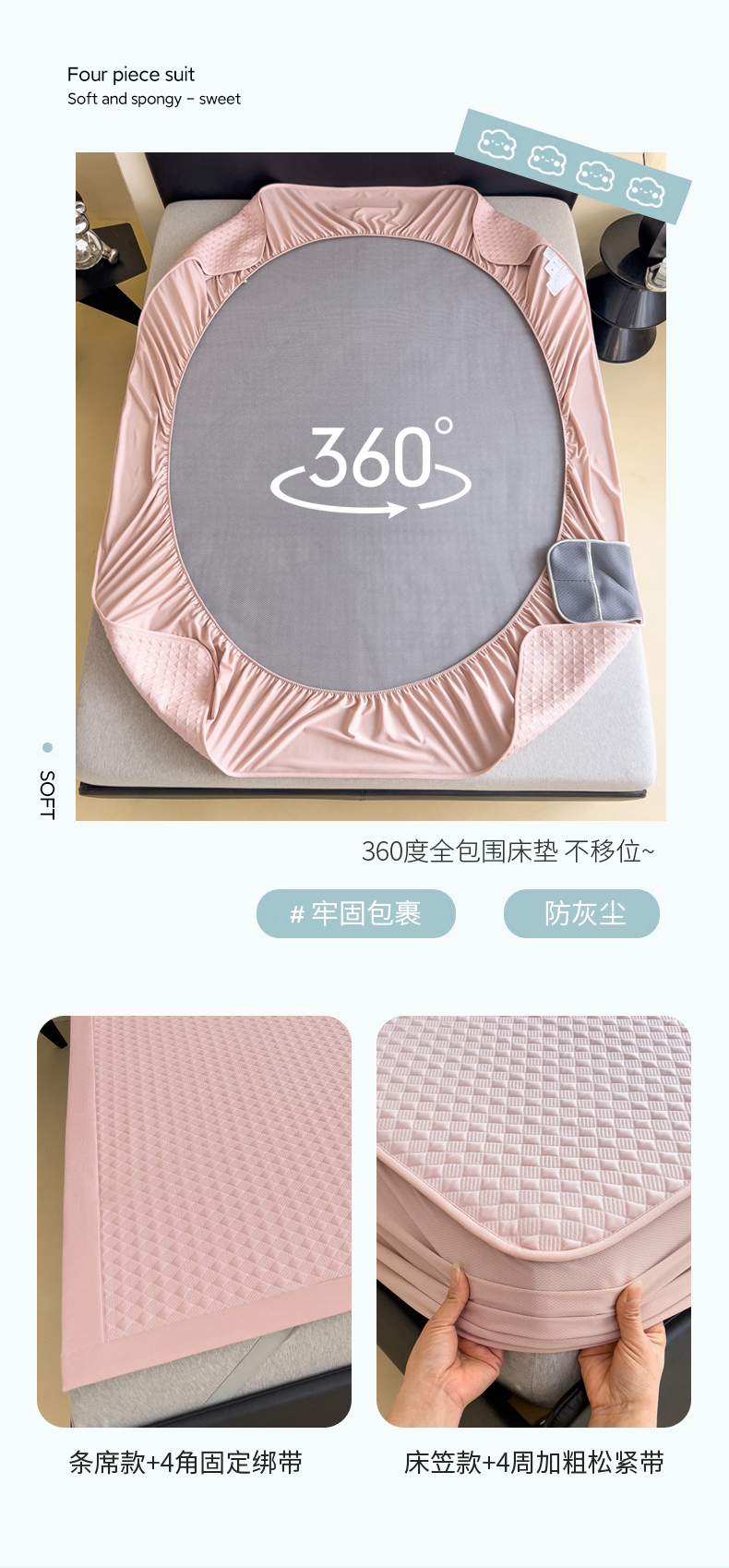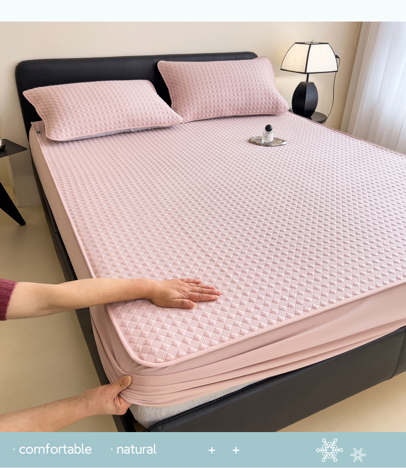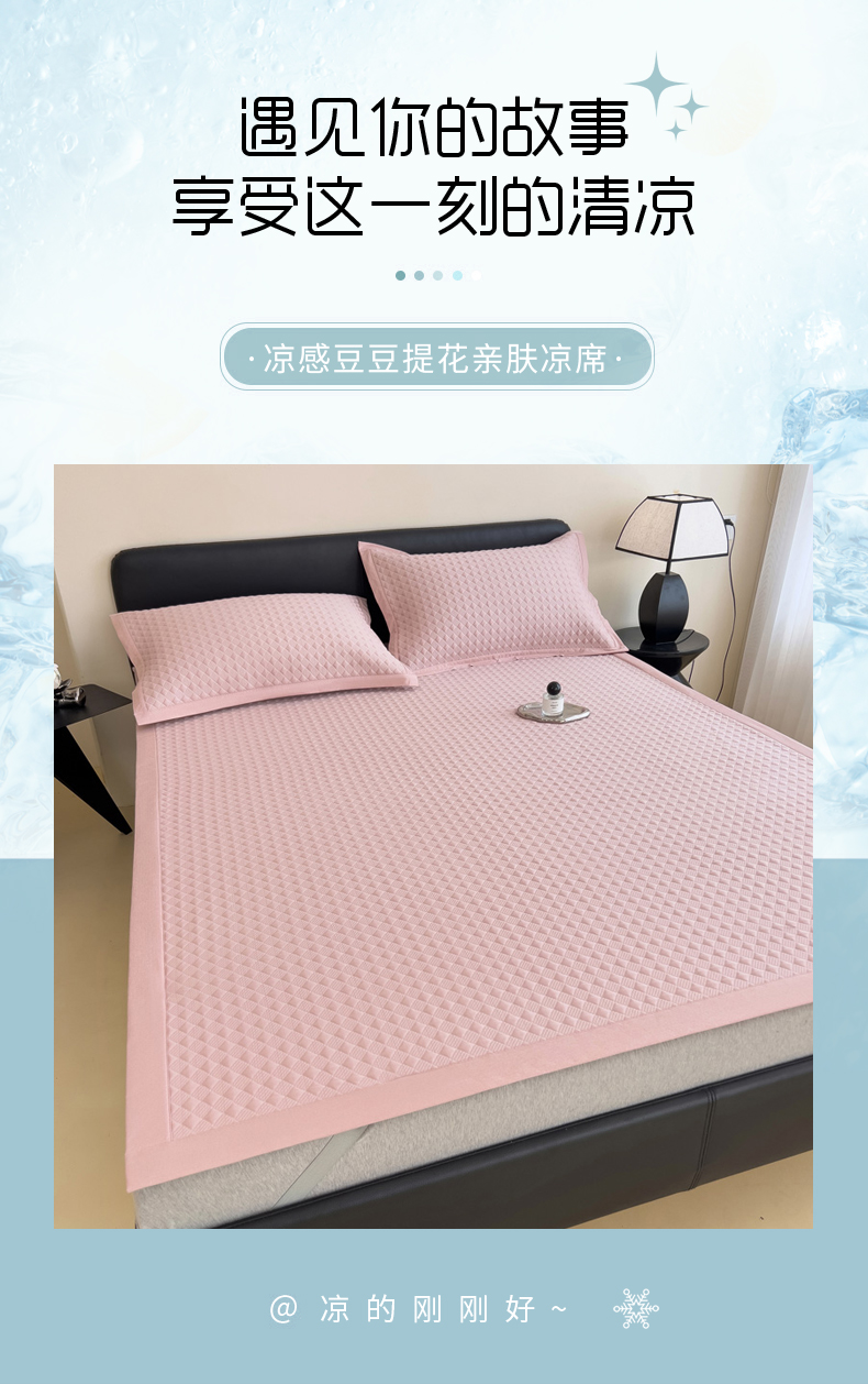 当前位置: 91家纺网 > 商品网购 > 床品套件 > 三件套 > 席世家 2025新款凉感席冰豆豆席子三套件凉席床笠 小方格芙蓉粉-床笠款