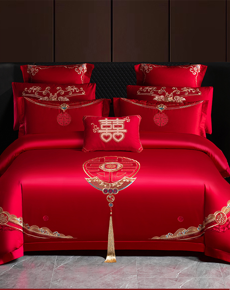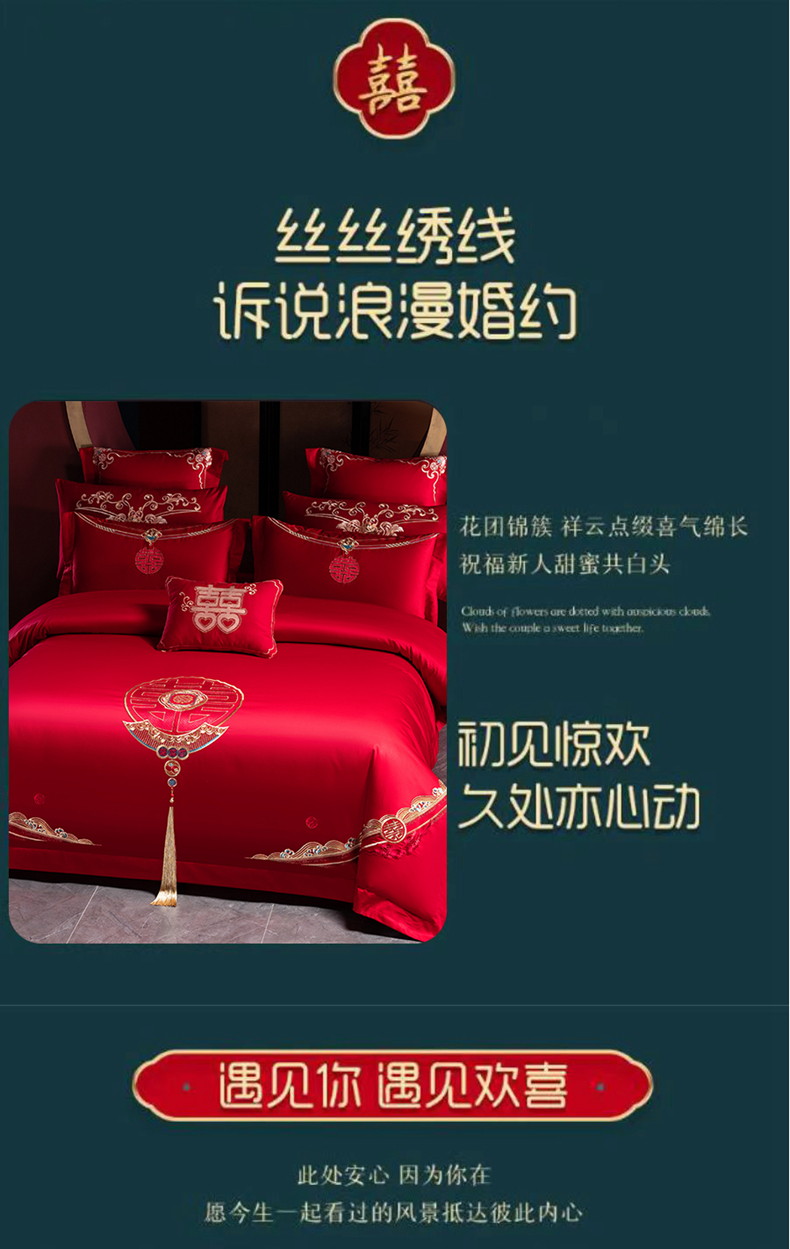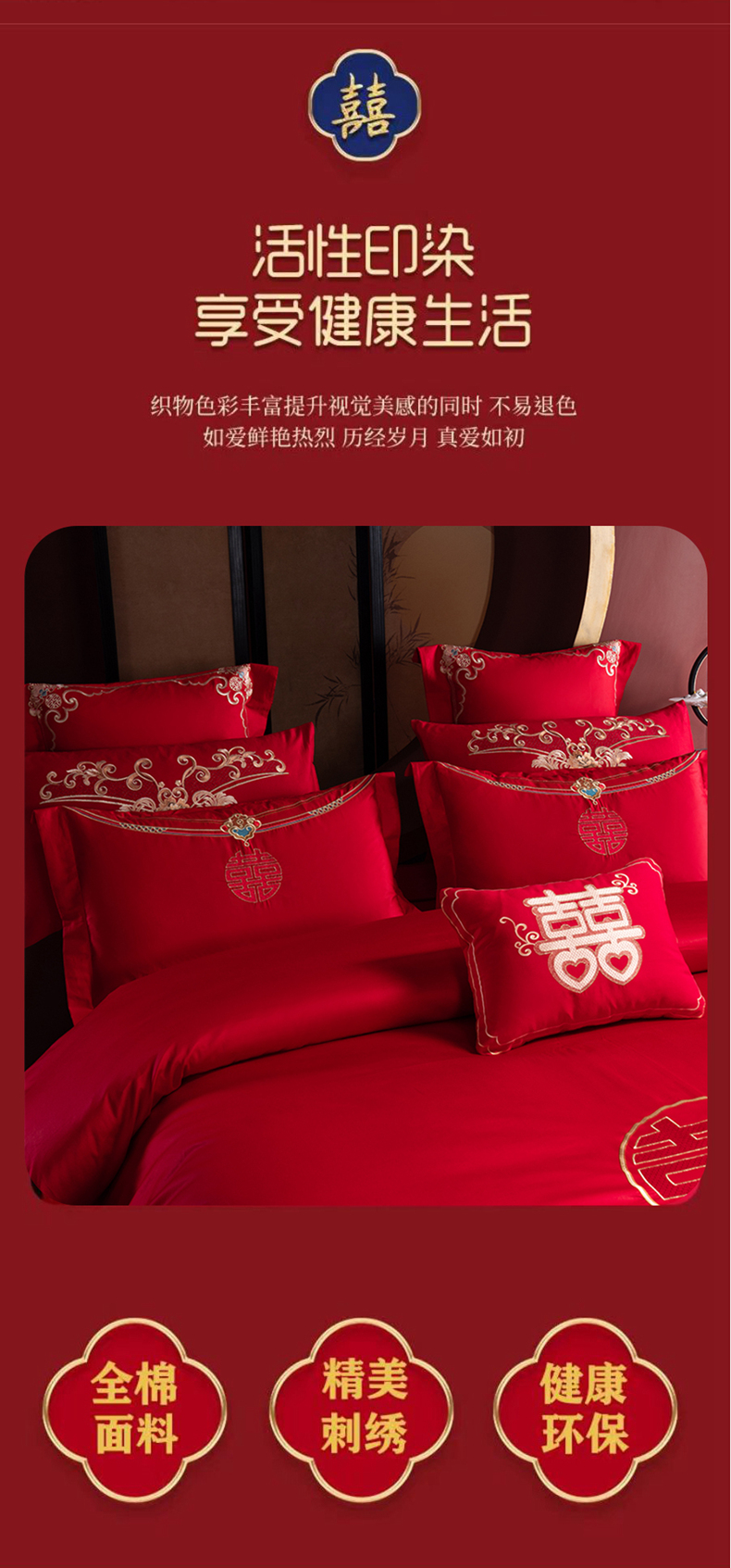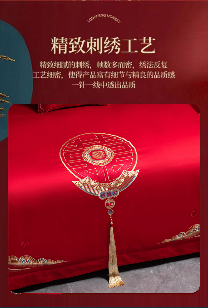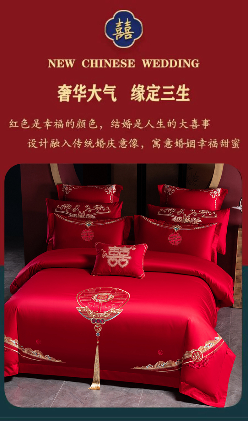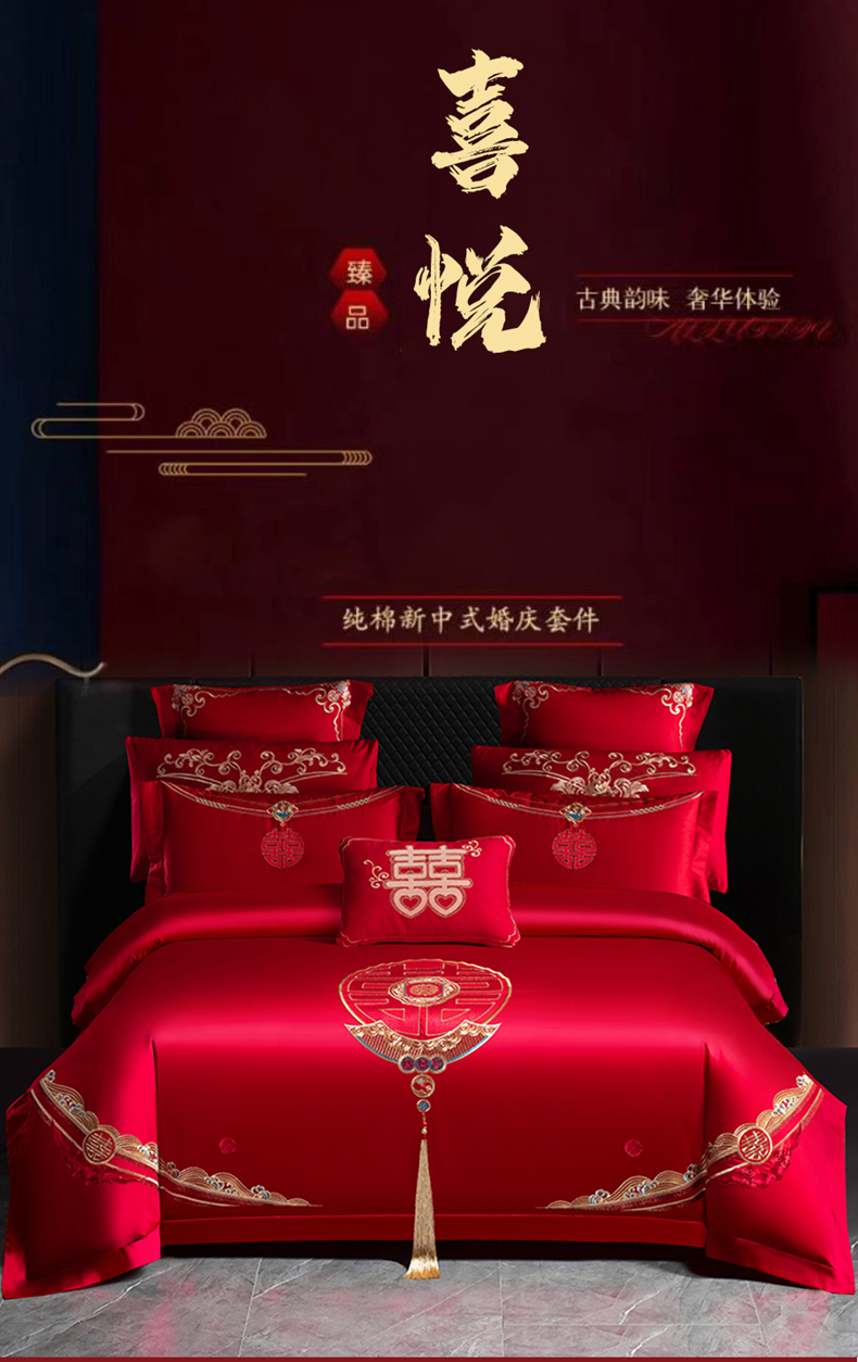 当前位置: 91家纺网 > 商品网购 > 床品套件 > 多件套 > 多件套 > 博之洋婚庆 2025新款全棉长绒棉刺绣新中式婚庆系列多件套 喜悦