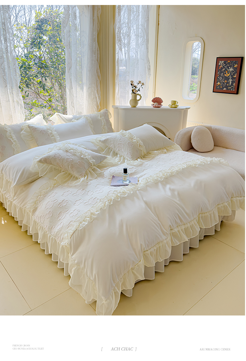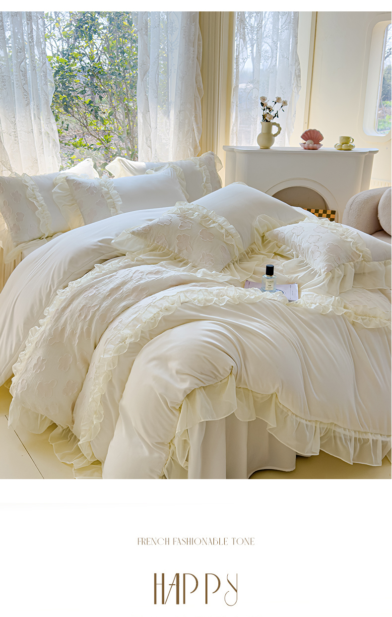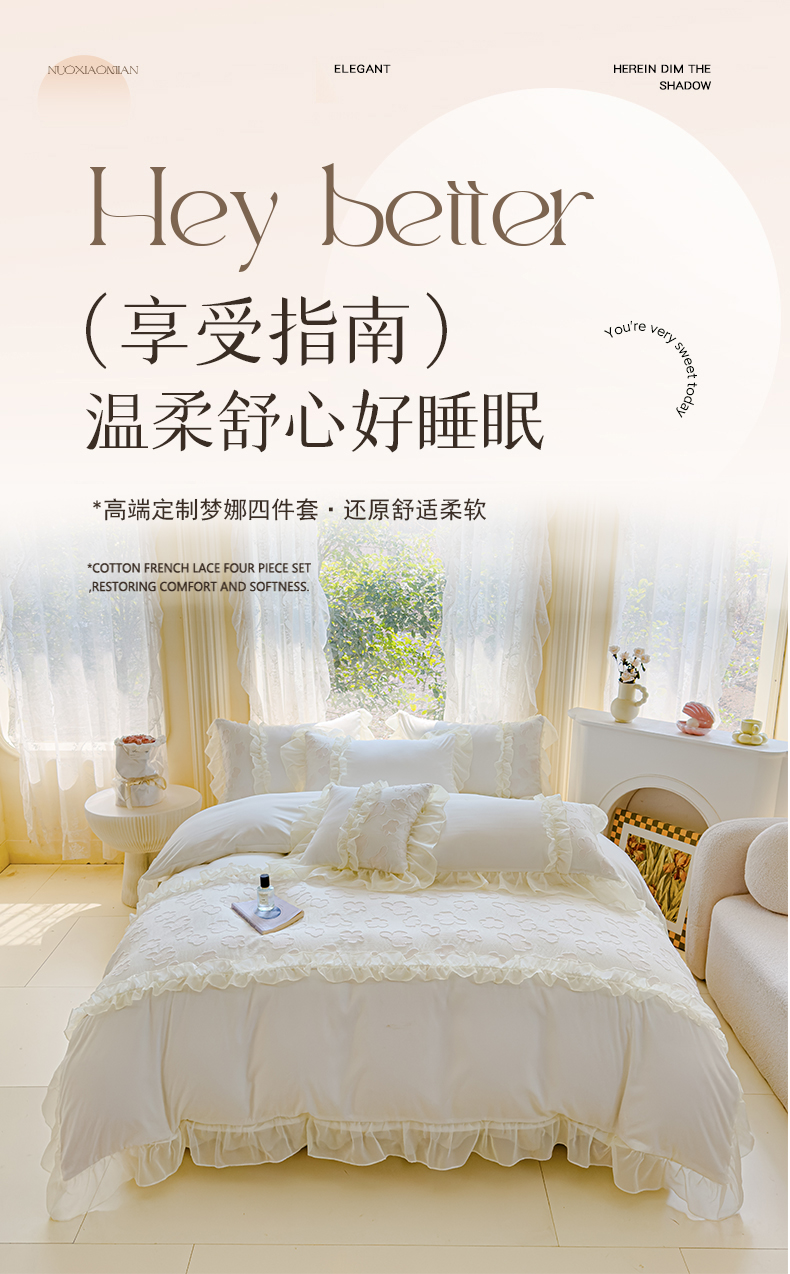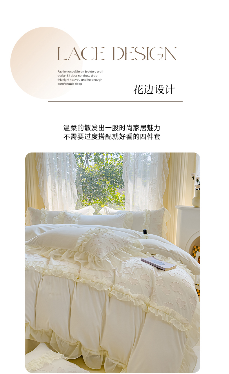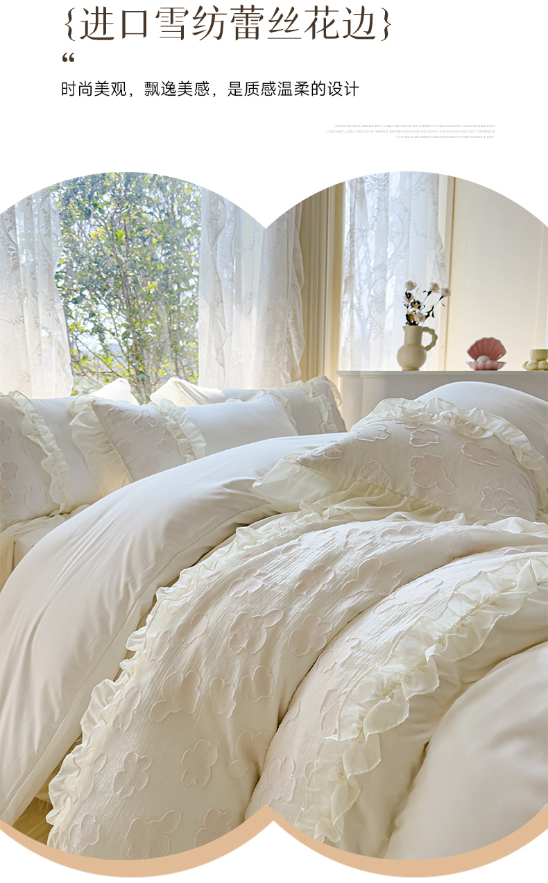 当前位置: 91家纺网 > 商品网购 > 床品套件 > 四件套 > 全棉普通四件套 > 狂想家 2025新款立体蕾丝花边梦娜系列四件套 梦娜奶昔白