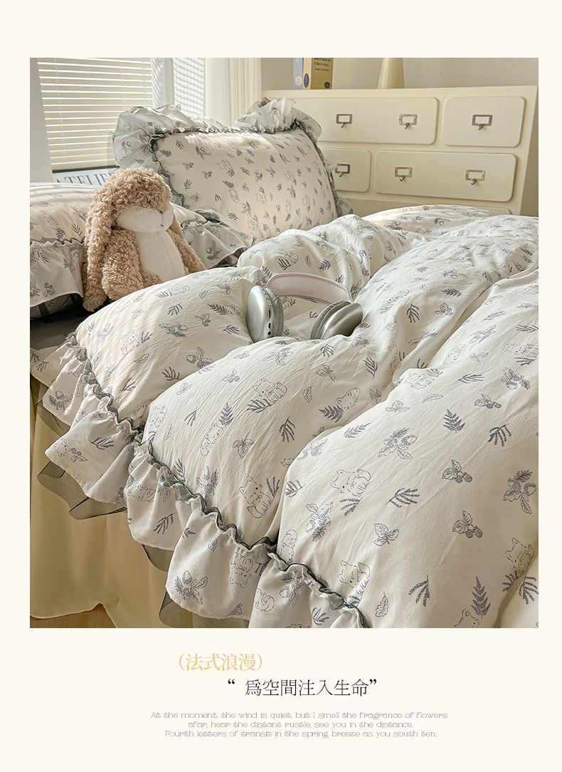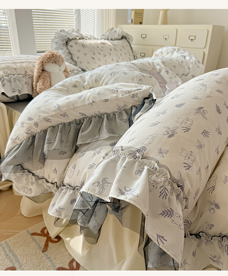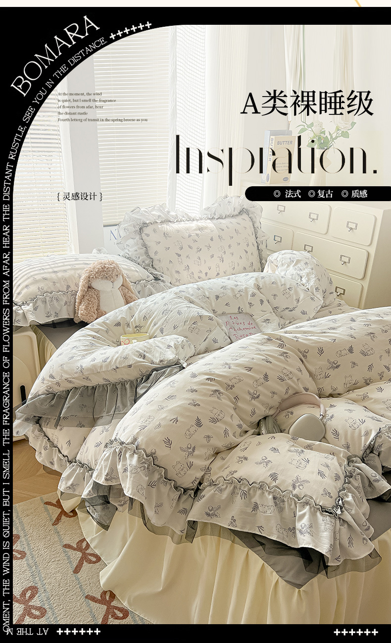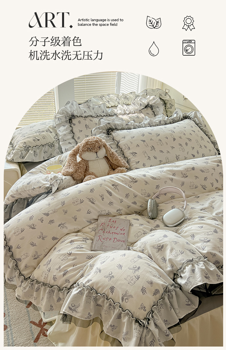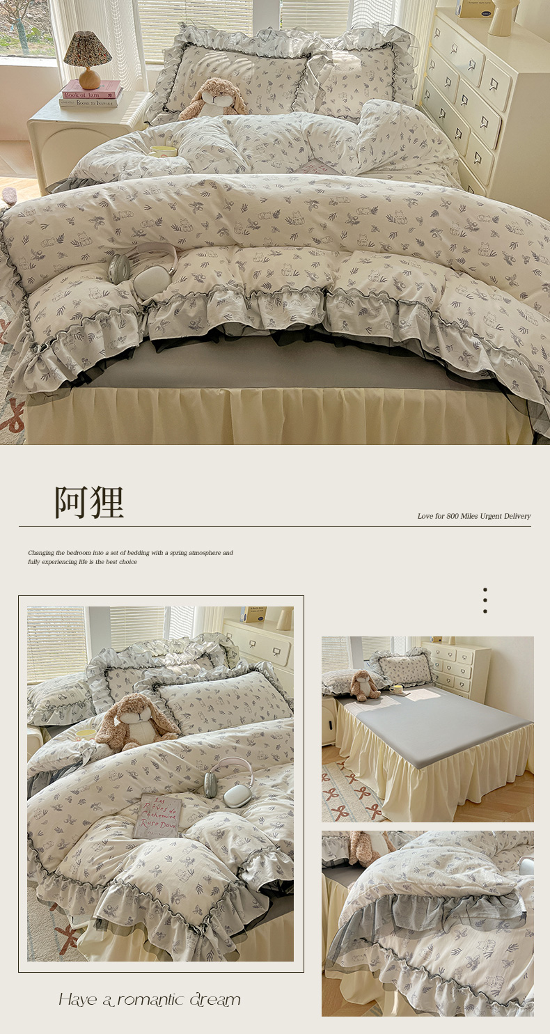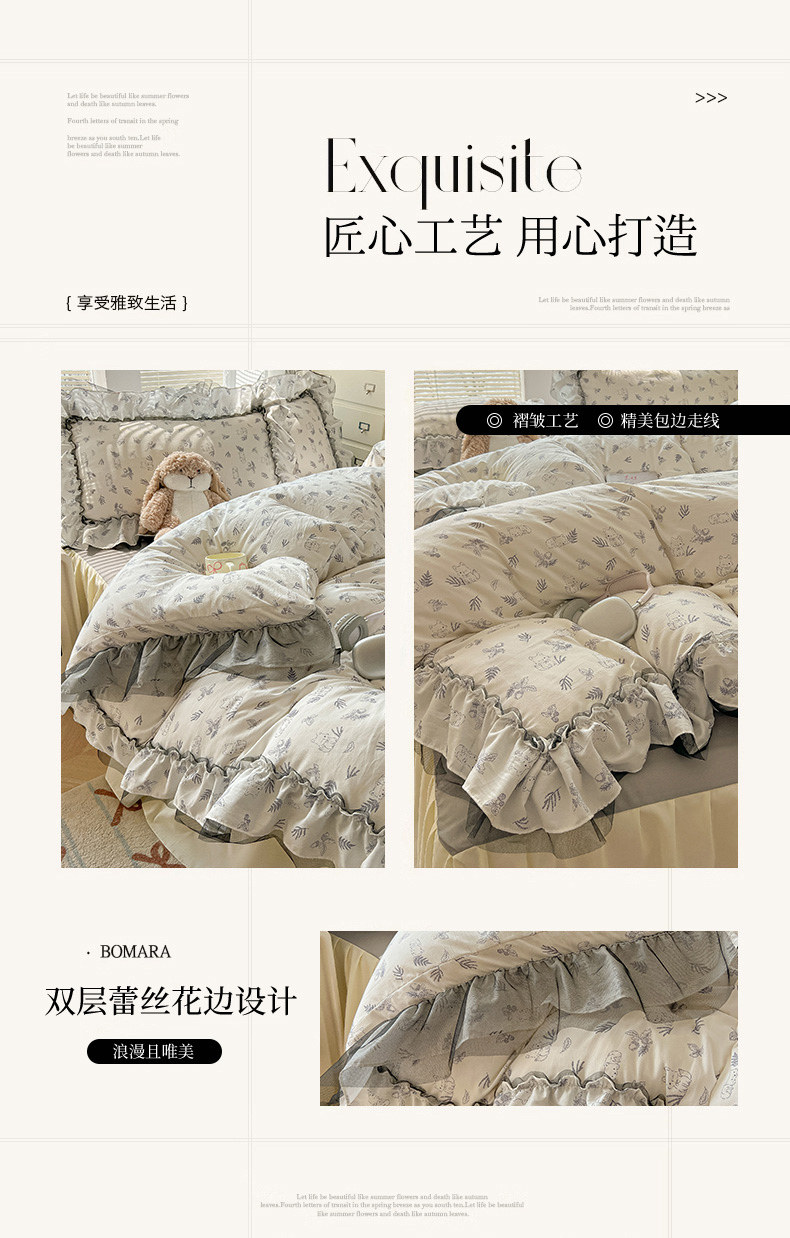 当前位置: 91家纺网 > 商品网购 > 床品套件 > 四件套 > 其它四件套 > 眠帛家居 2025新款A类法式皱皱纱小清新蕾丝花边四件套 阿狸