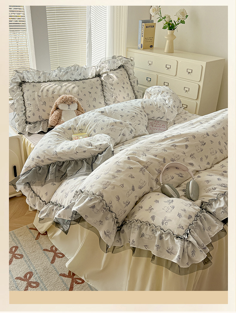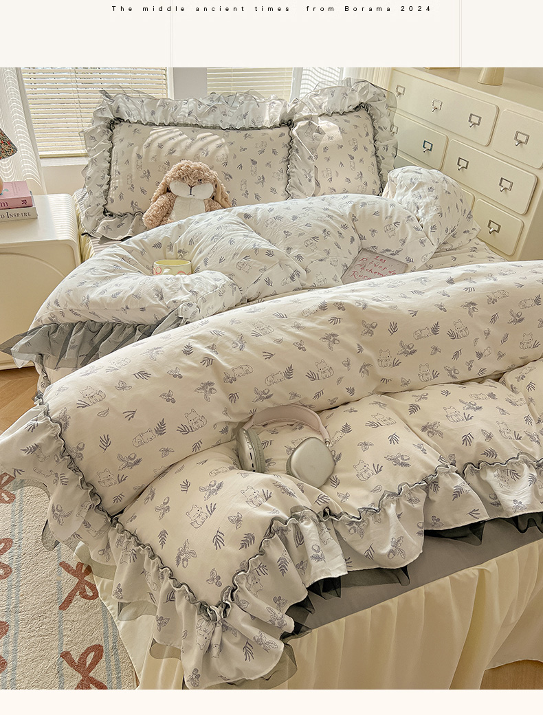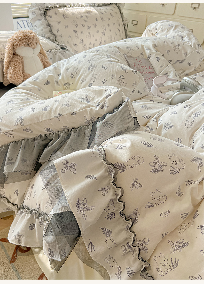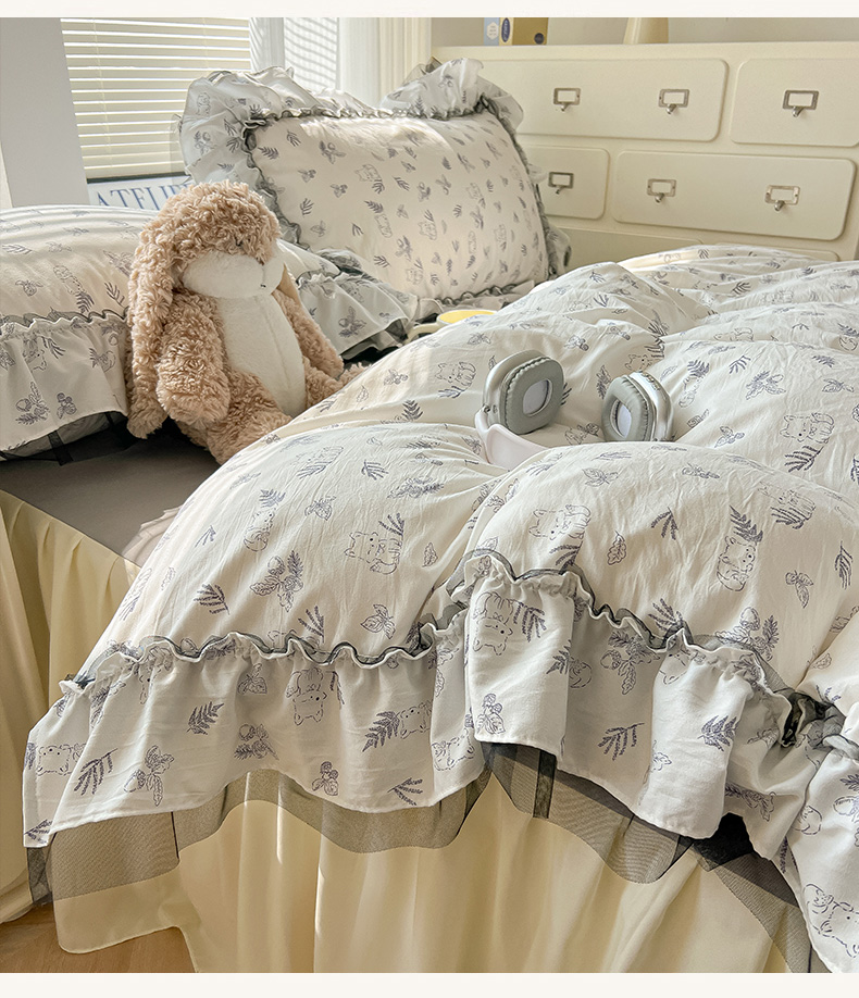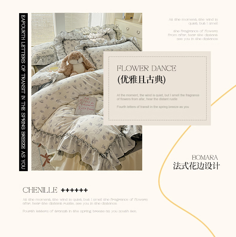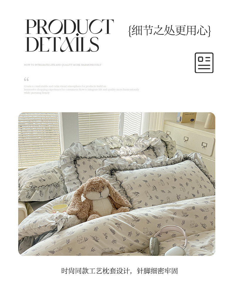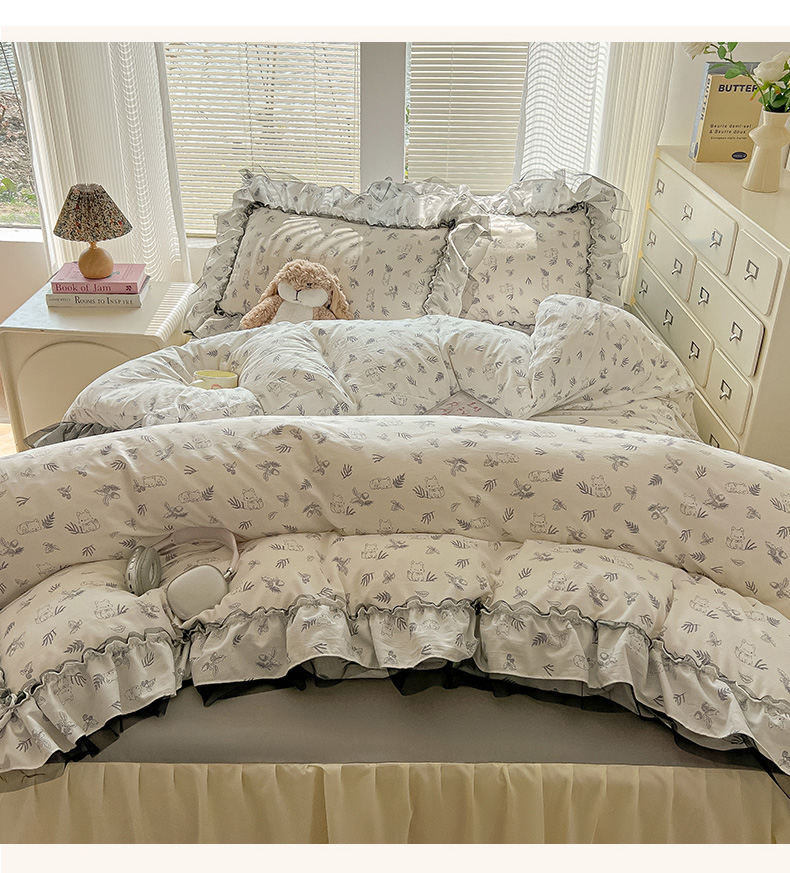 当前位置: 91家纺网 > 商品网购 > 床品套件 > 四件套 > 其它四件套 > 眠帛家居 2025新款A类法式皱皱纱小清新蕾丝花边四件套 阿狸