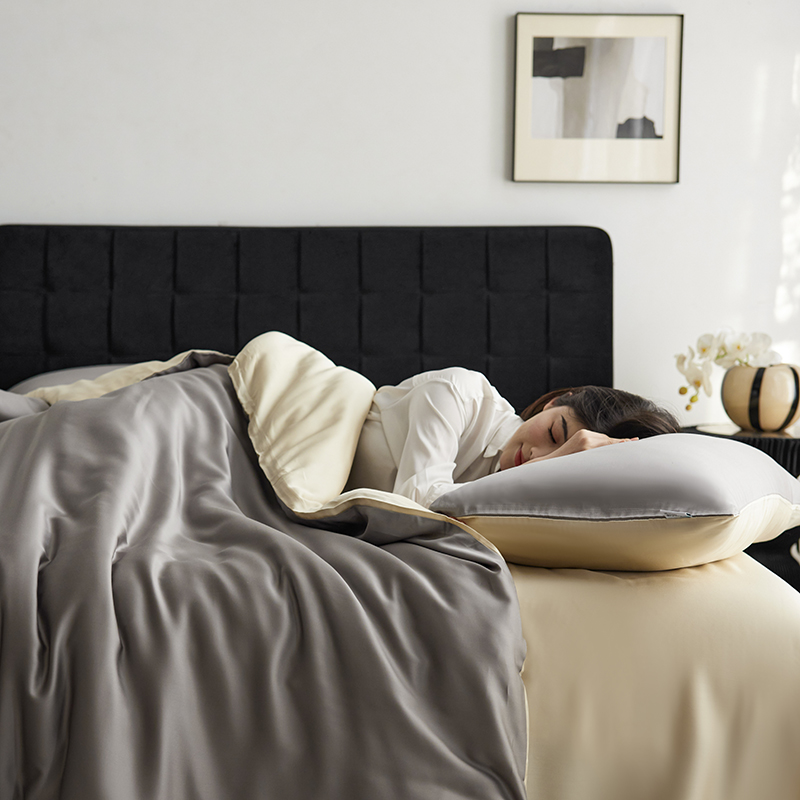(总)玉宇阁家居 2023新款春夏60支兰精天丝拼色四件套,都市灰香槟,海盐松露,芥末黄香槟,裸粉香槟,茉莉奶绿,浅灰鹅黄,若草乳白