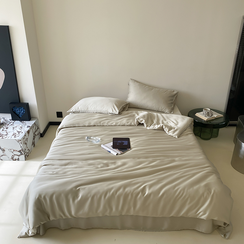 商品名称:2025新款春夏精致都市风60s兰精天丝纯色拼色四件套 裸粉香槟
