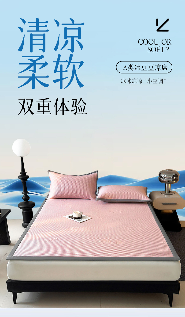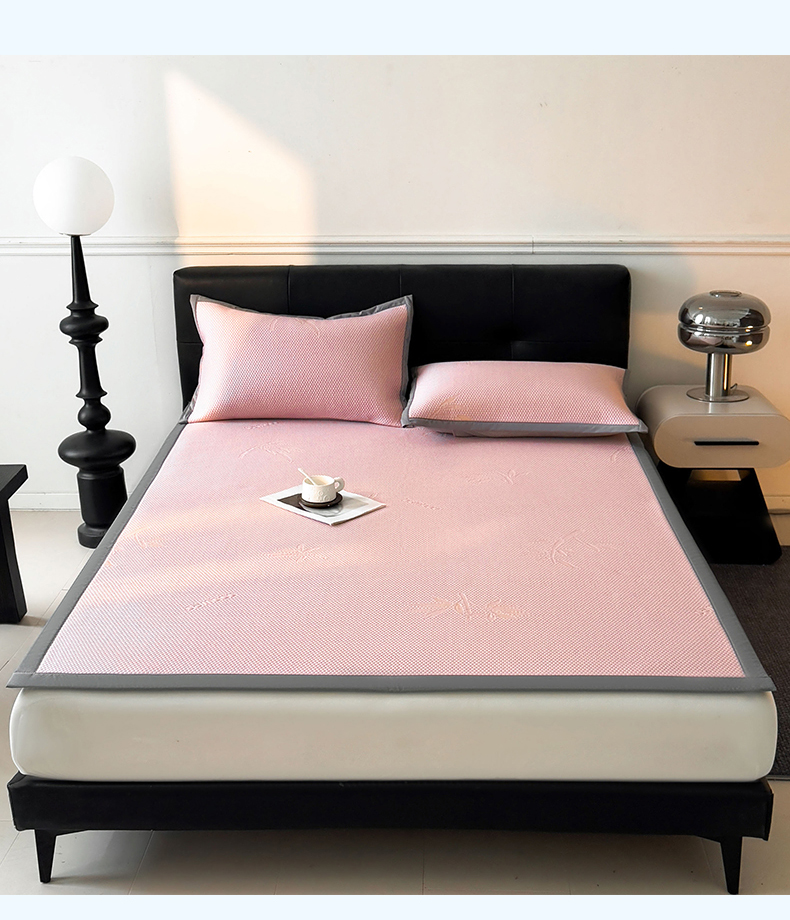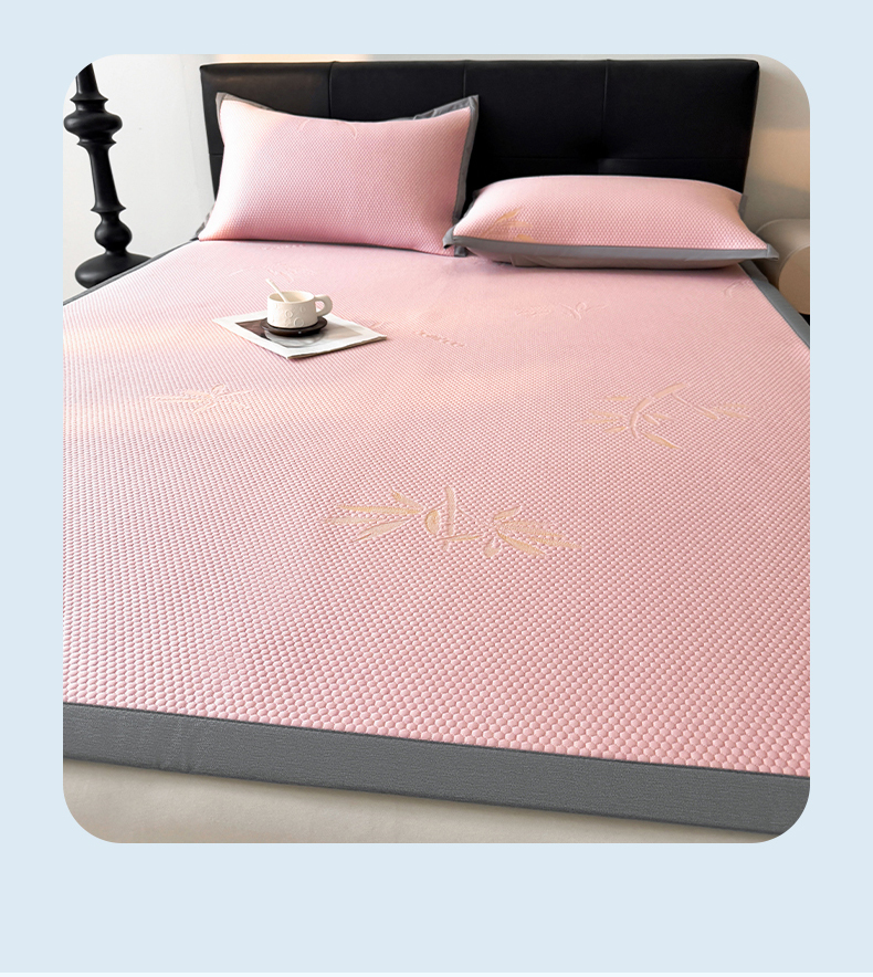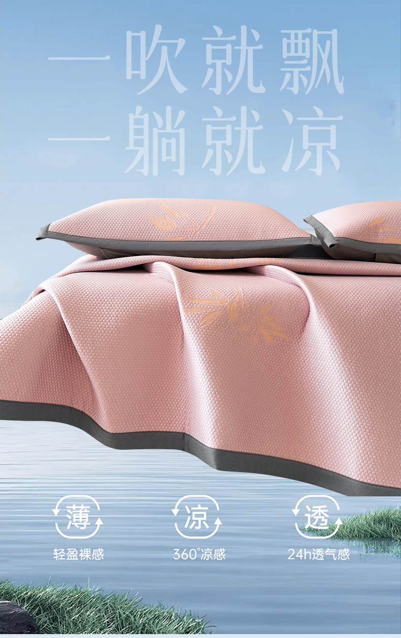 乐家欣 2025新款A类提花色织冰豆豆凉席-竹韵系列 竹韵床席款-蜜桃粉