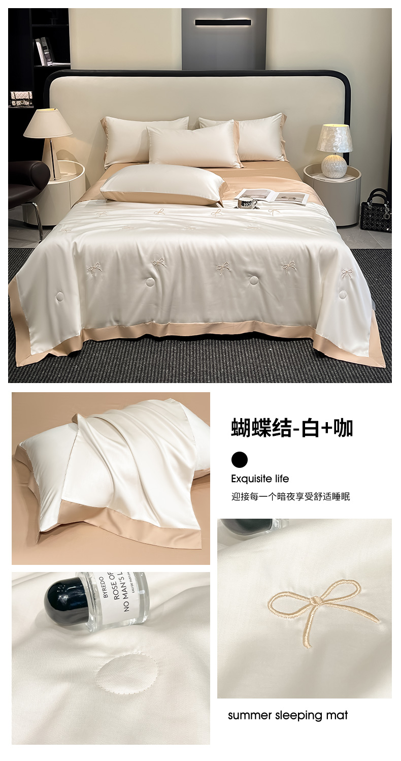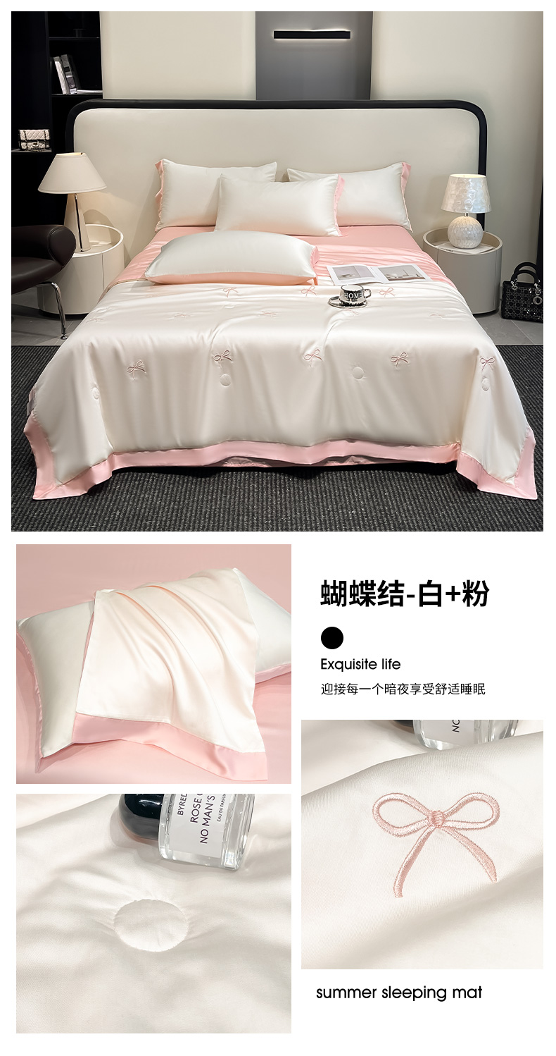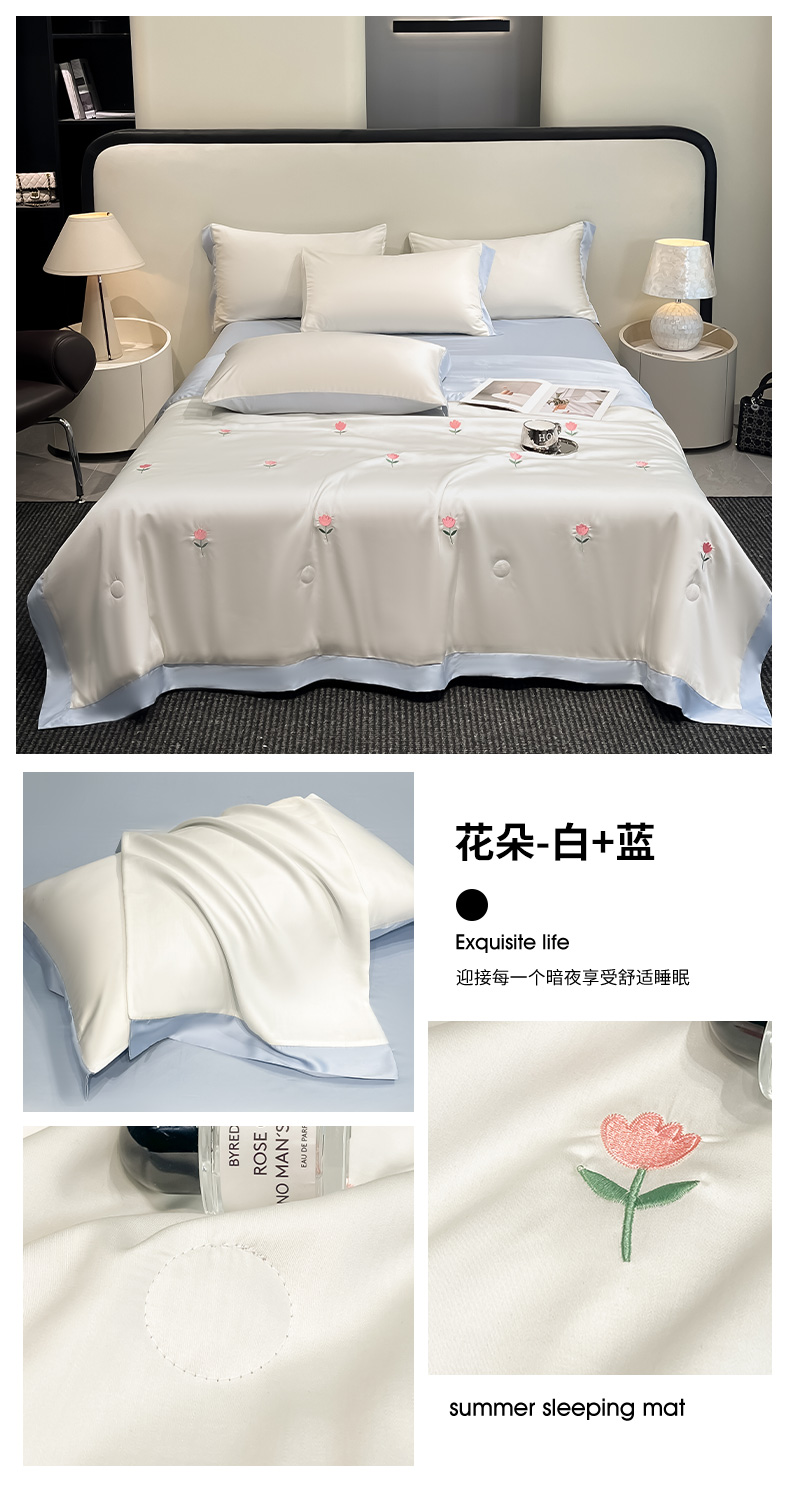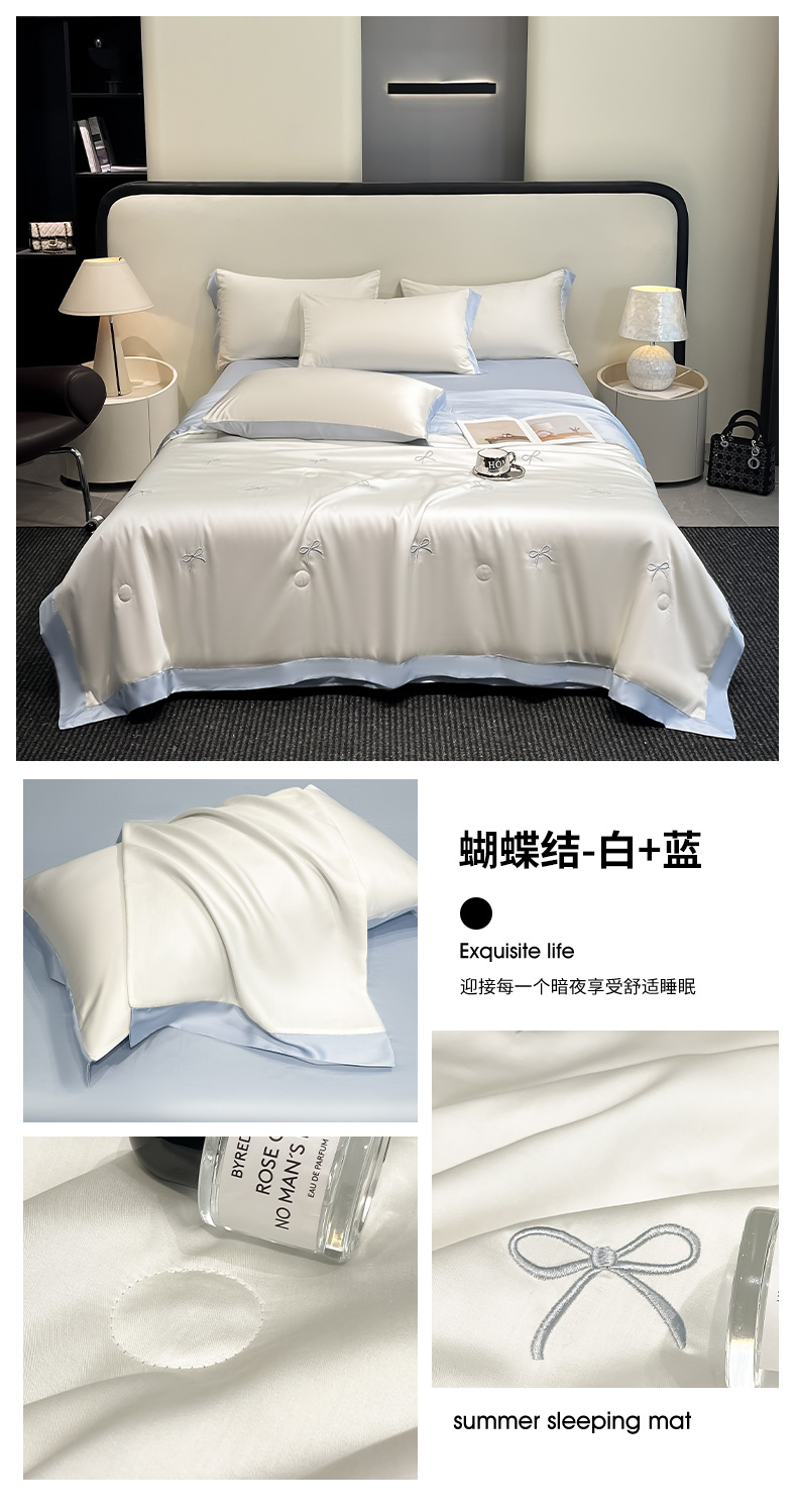 商品名称:(总)绘萱 2025爆款绣花水洗天丝夏被四件套水洗真丝夏被冰丝夏凉被空调被-花朵/蝴蝶结