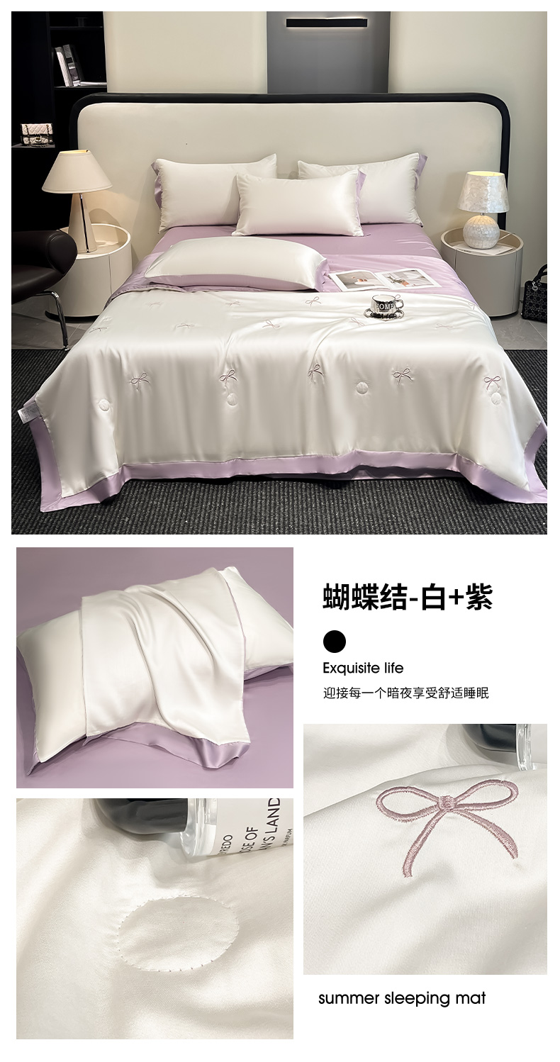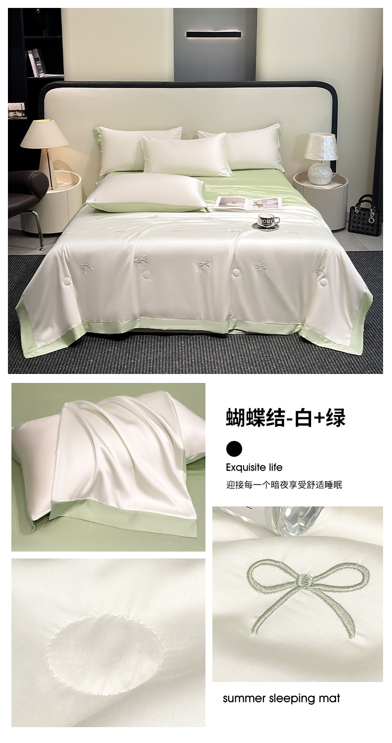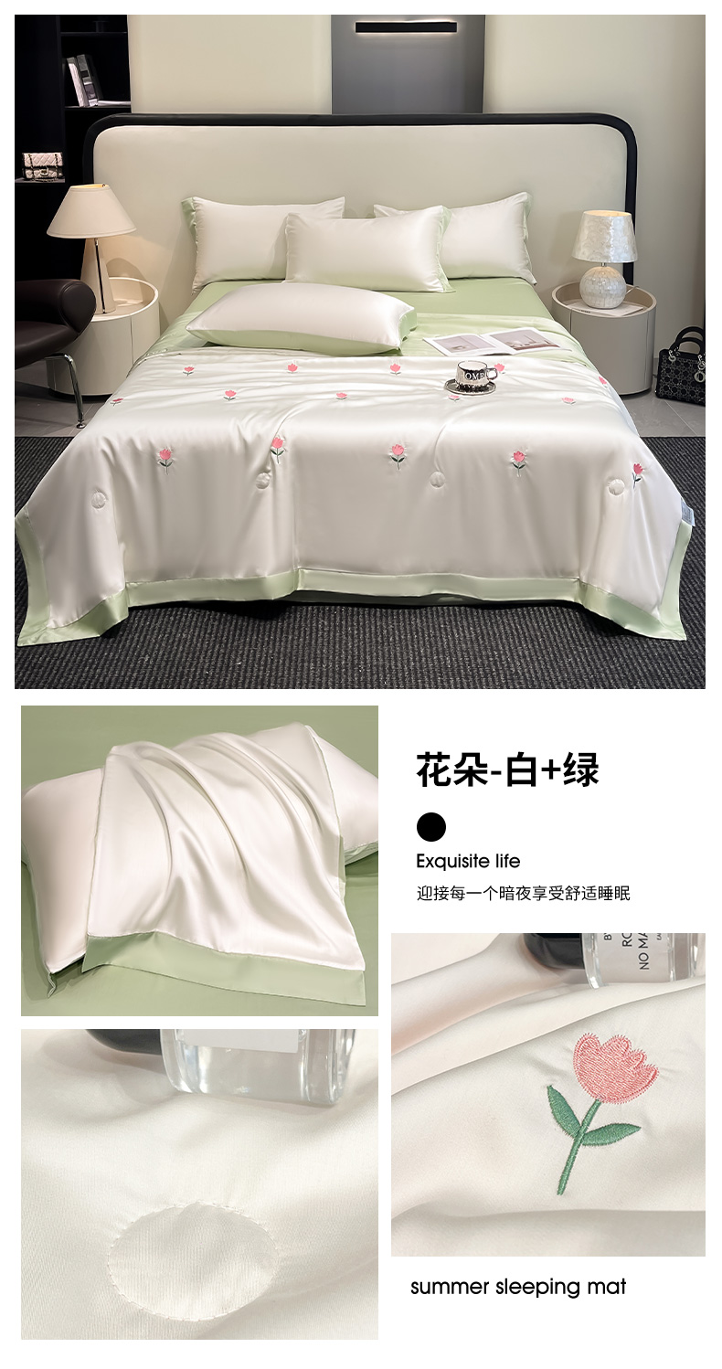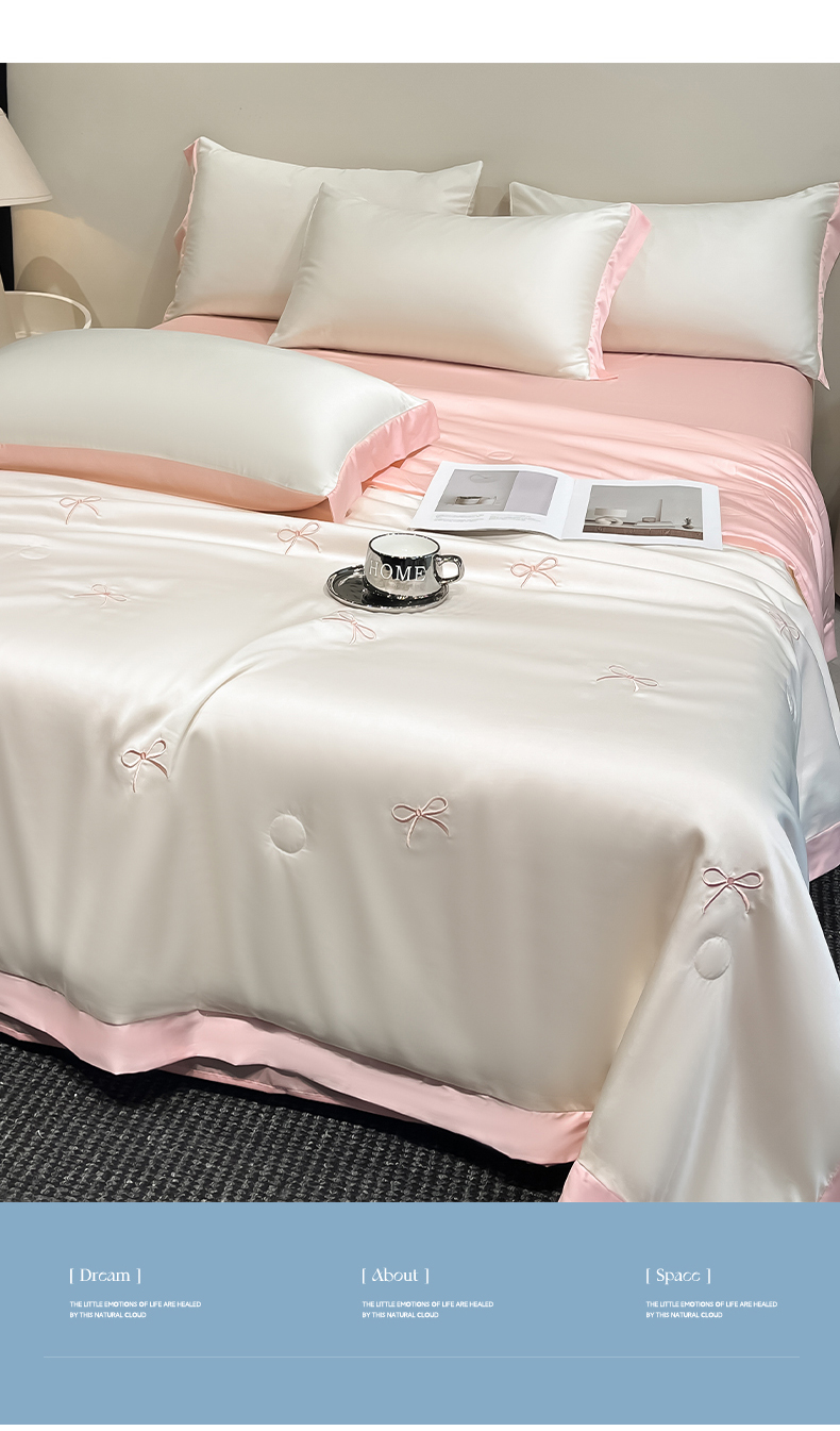 商品名称:(总)绘萱 2025爆款绣花水洗天丝夏被四件套水洗真丝夏被冰丝夏凉被空调被-花朵/蝴蝶结