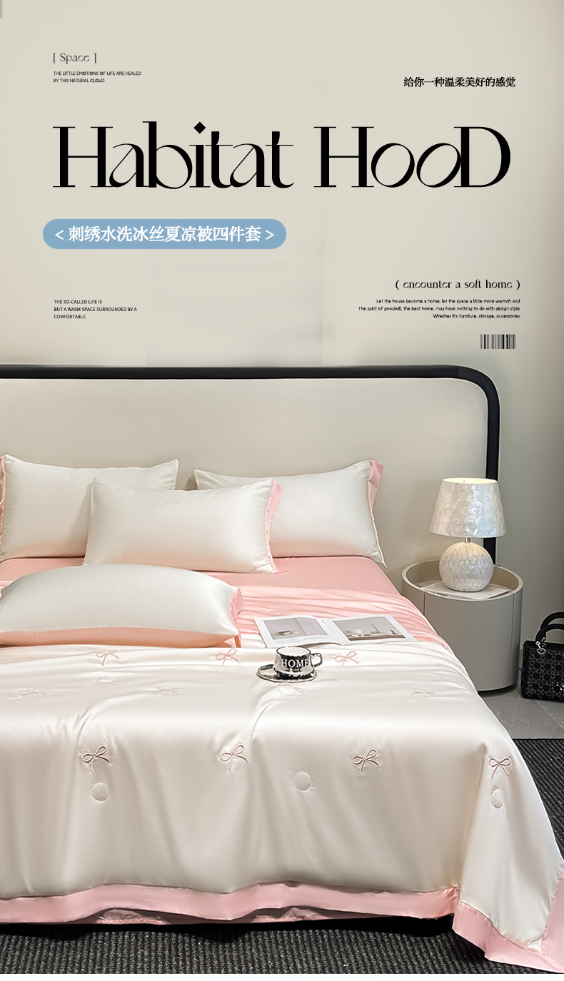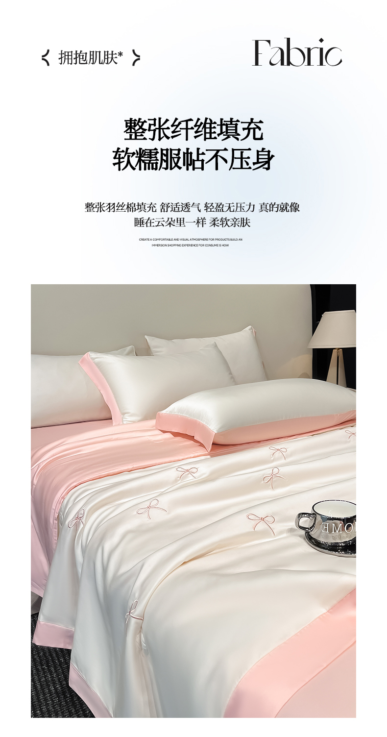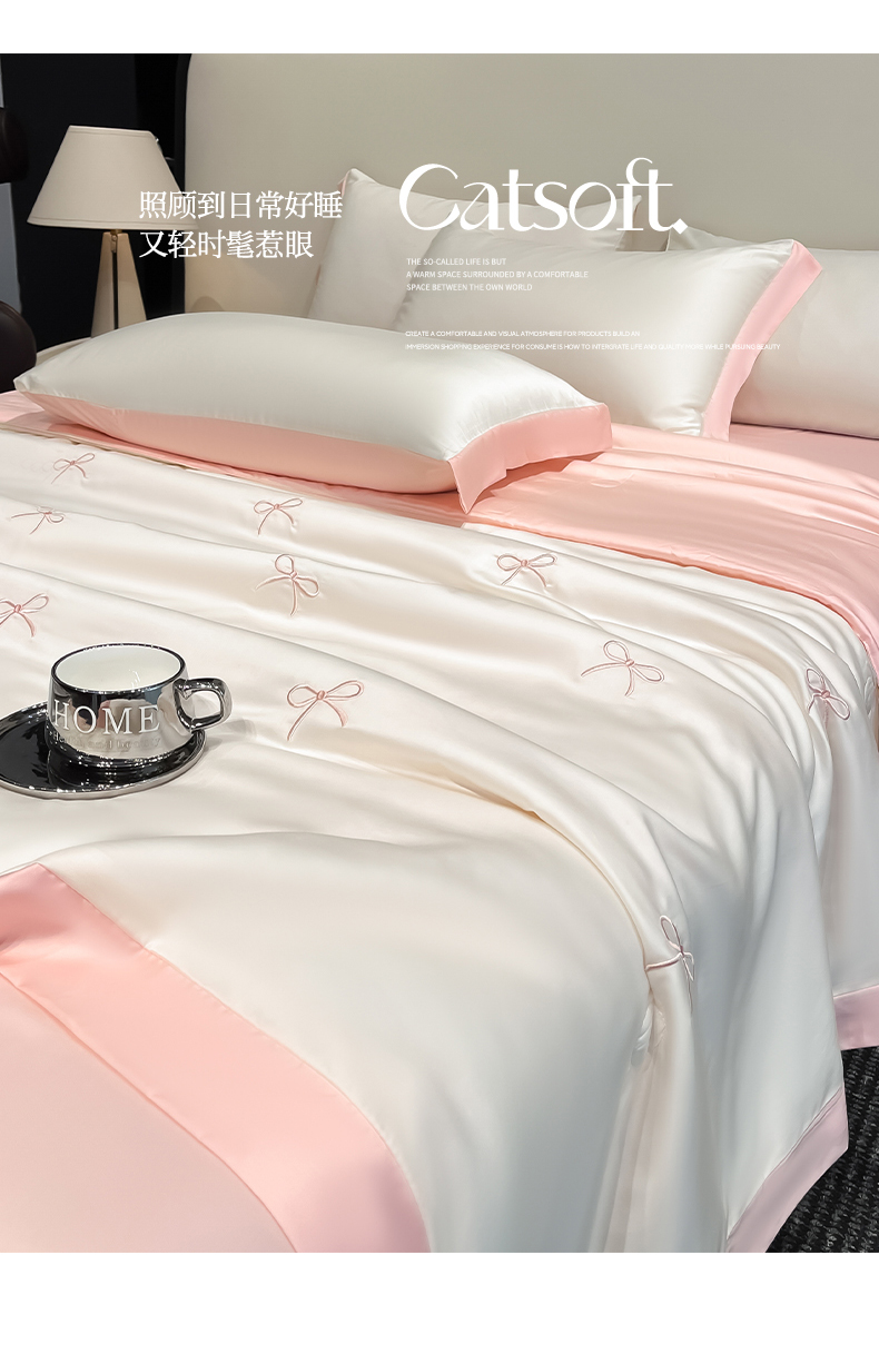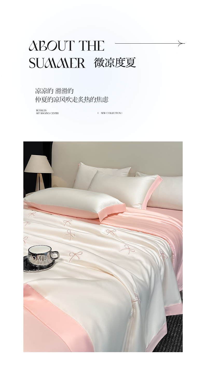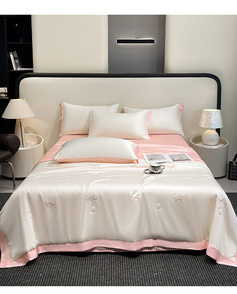 商品名称:(总)绘萱 2025爆款绣花水洗天丝夏被四件套水洗真丝夏被冰丝夏凉被空调被-花朵/蝴蝶结