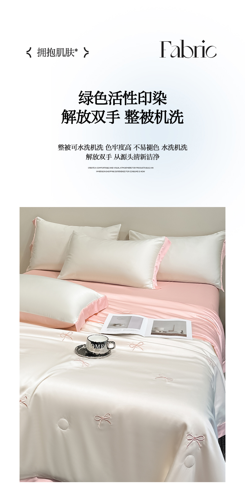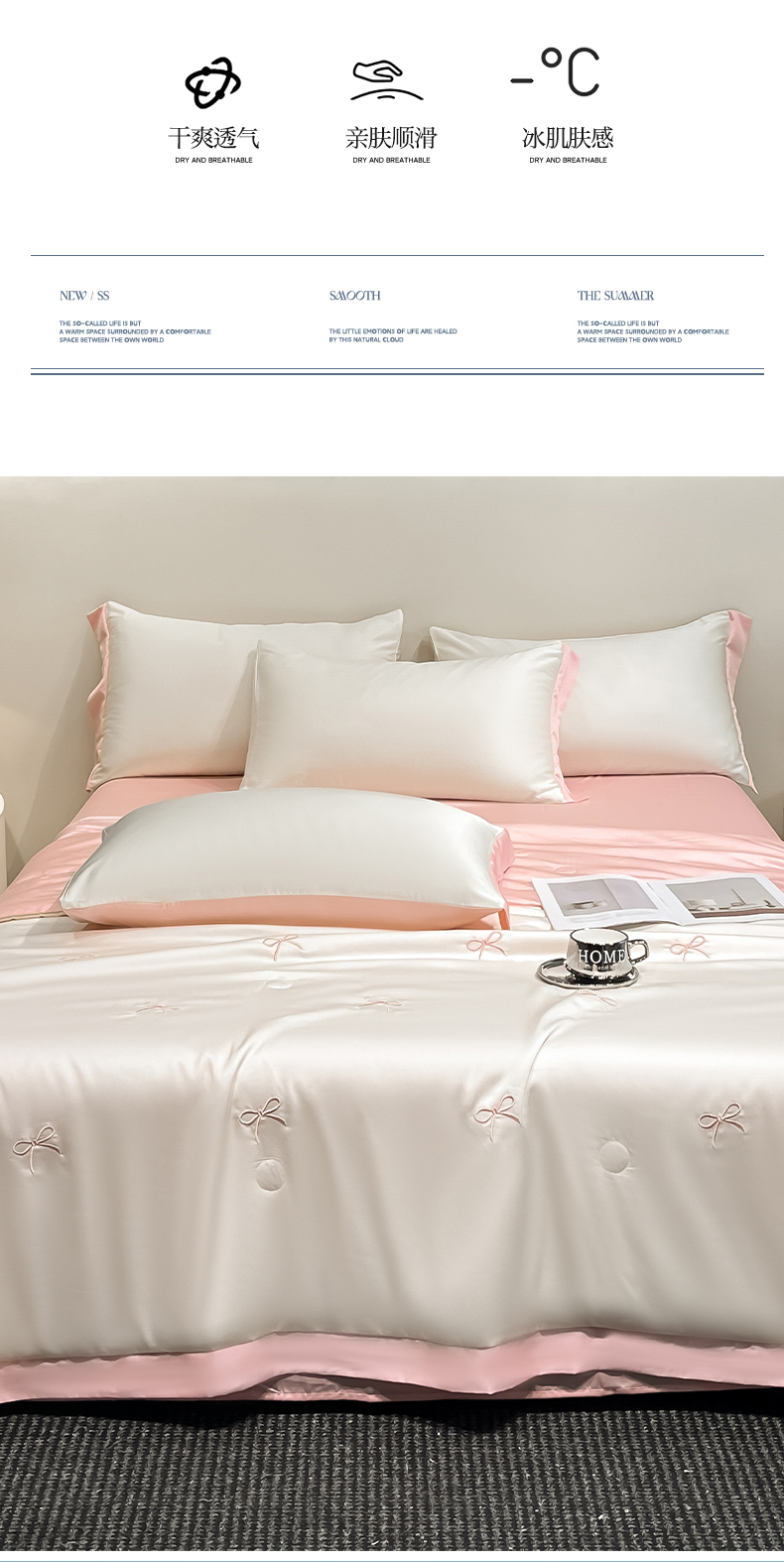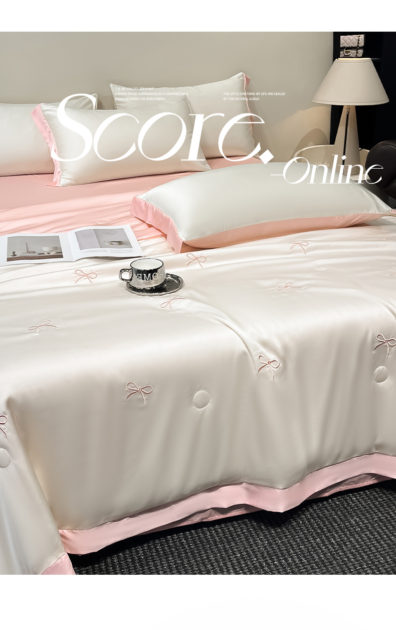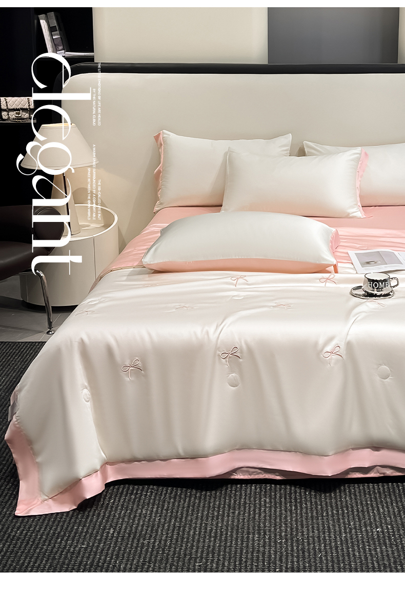 商品名称:(总)绘萱 2025爆款绣花水洗天丝夏被四件套水洗真丝夏被冰丝夏凉被空调被-花朵/蝴蝶结