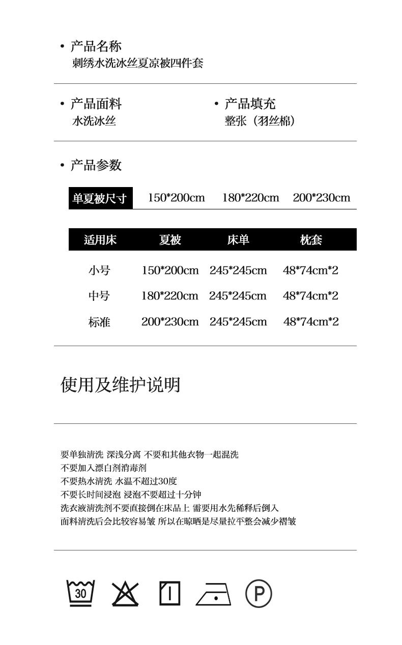 150*200cm三件套(夏被+两只枕套)