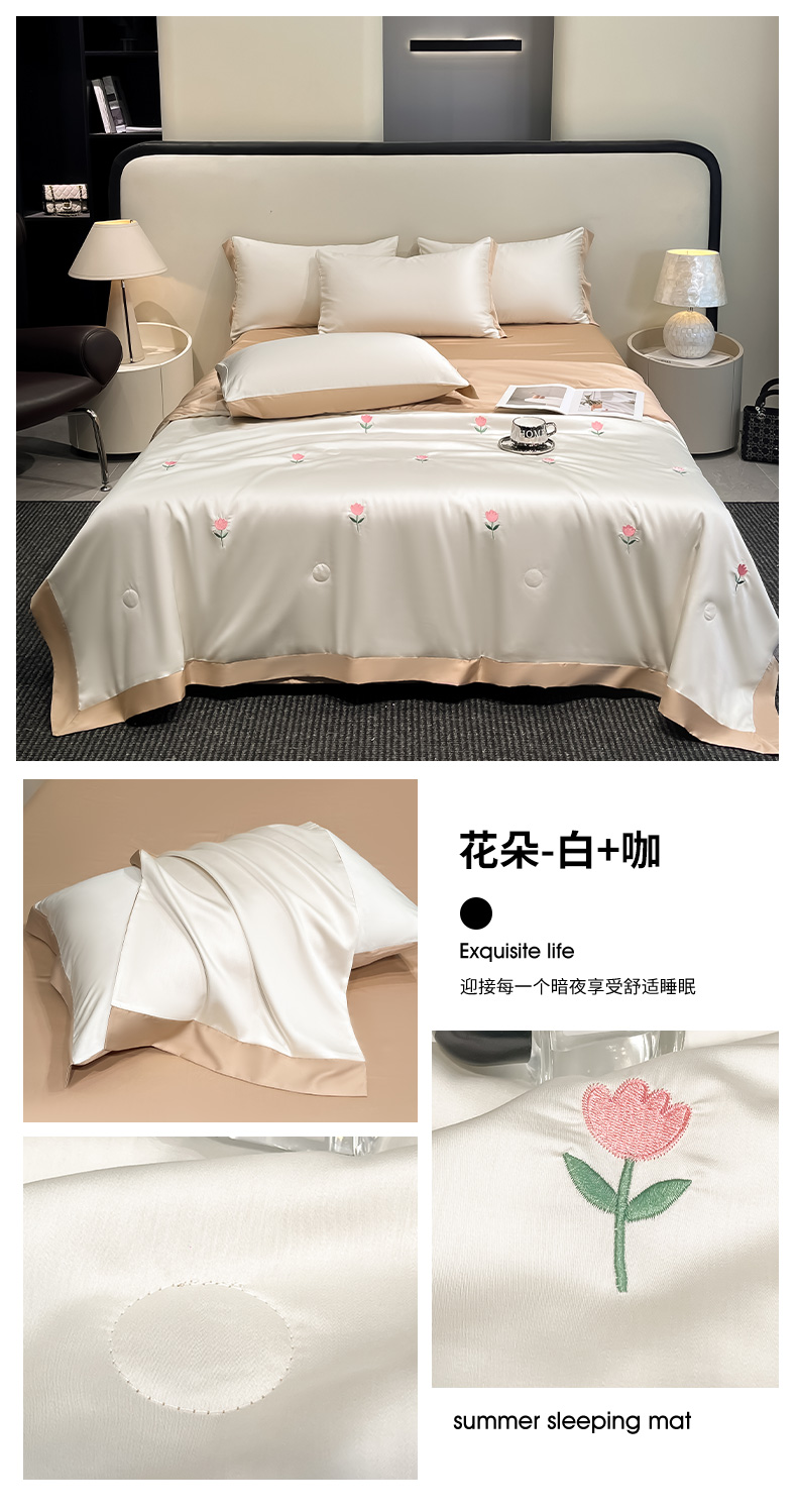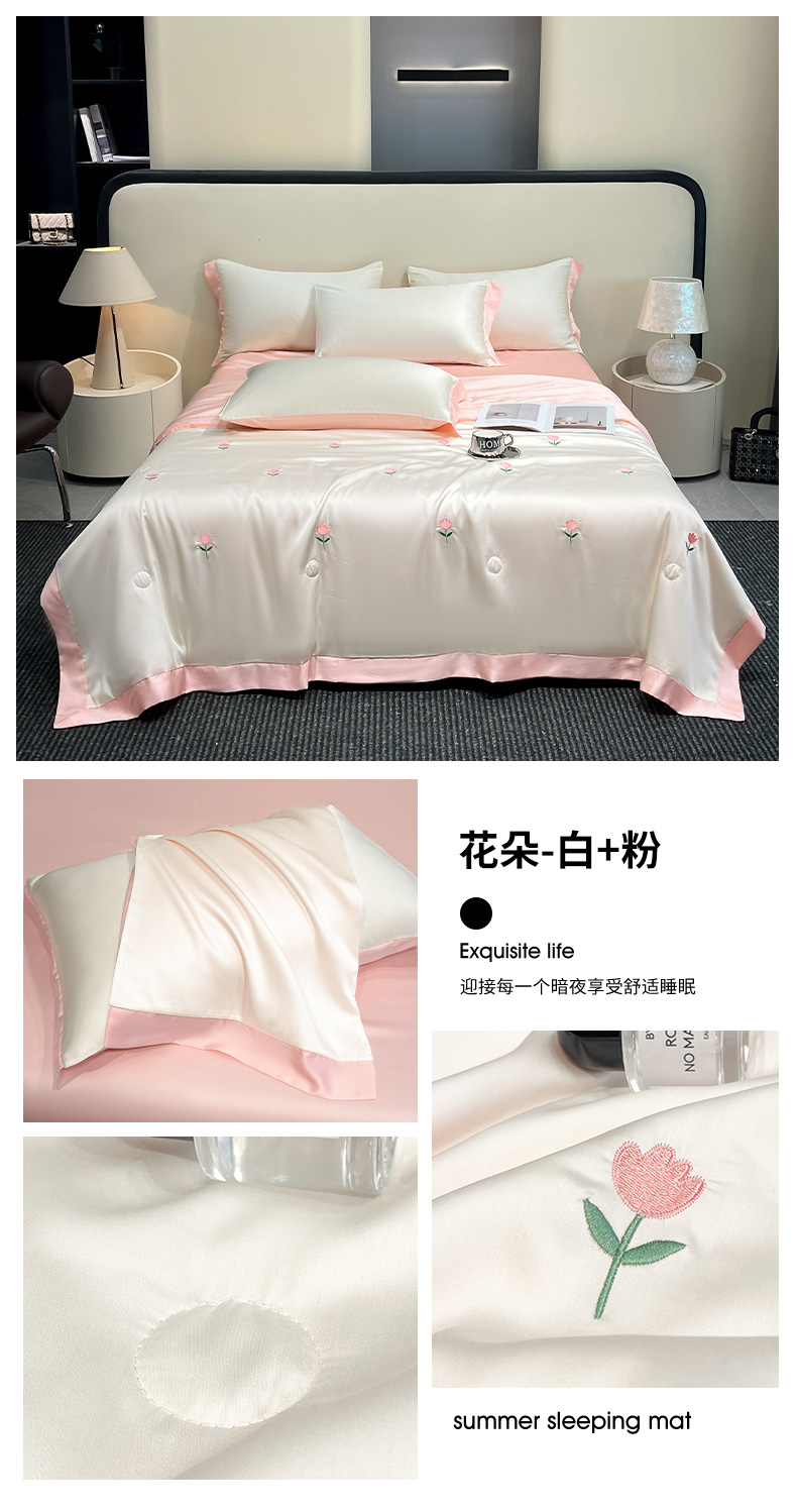 (总)绘萱 2025爆款绣花水洗天丝夏被四件套水洗真丝夏被冰丝夏凉被空调被-花朵/蝴蝶结
