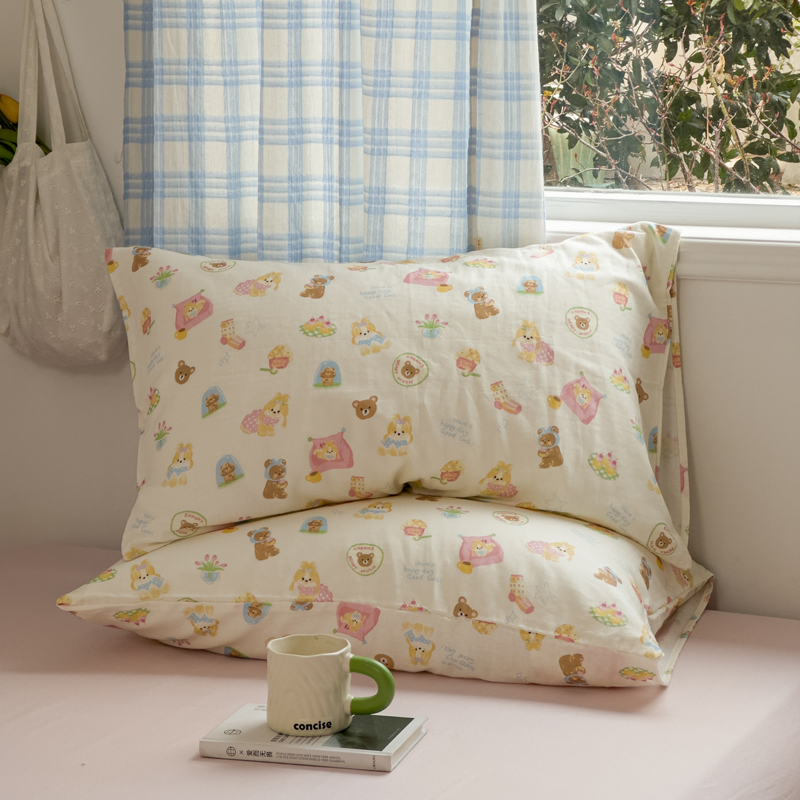 商品名称:塔塔家居 2025新款全棉纯棉双层纱枕套单品单枕套枕套单件 春日派对