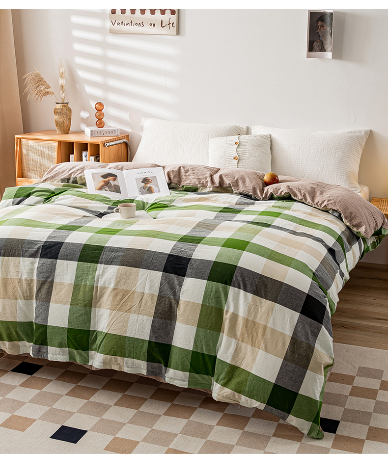 2025新款A类色织水洗棉单被套 海青鲜绿格