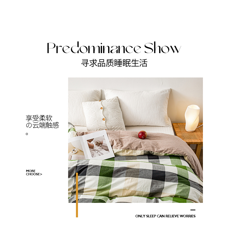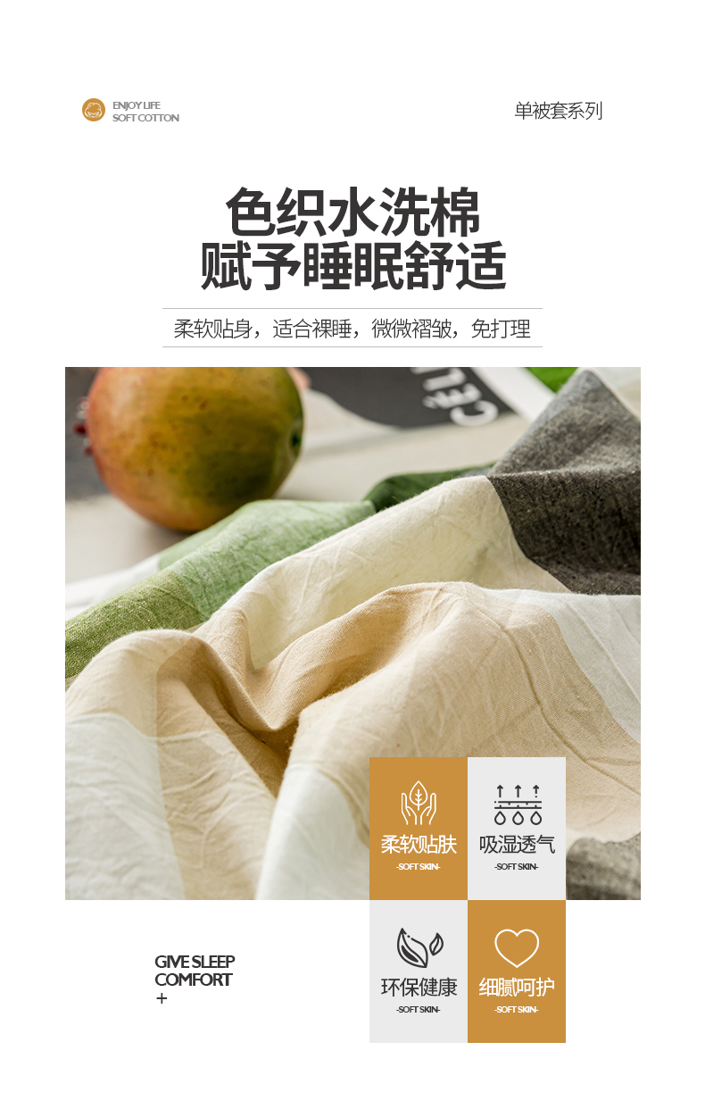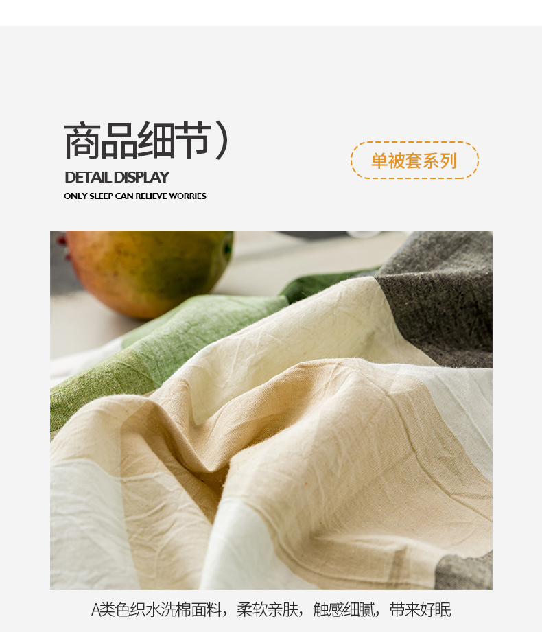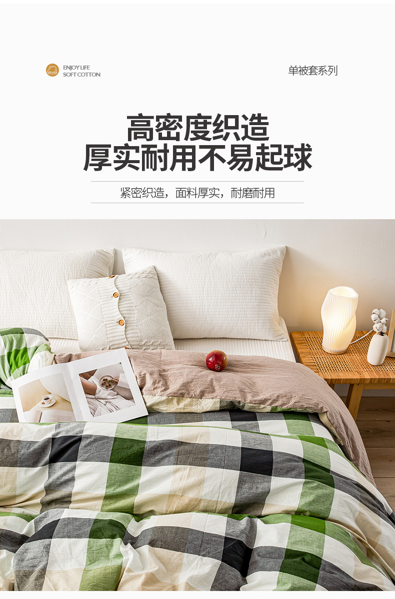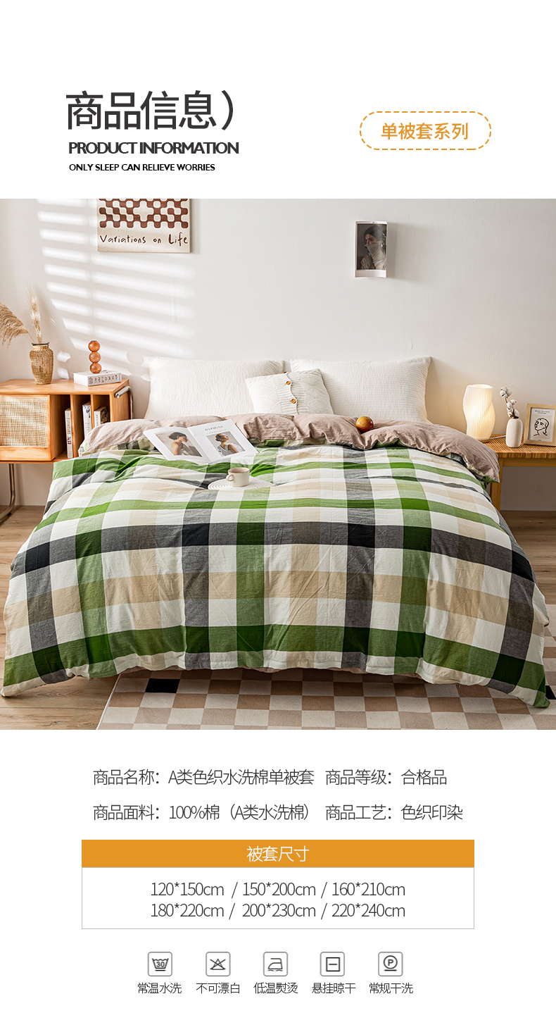 商品名称:2025新款A类色织水洗棉单被套 海青鲜绿格