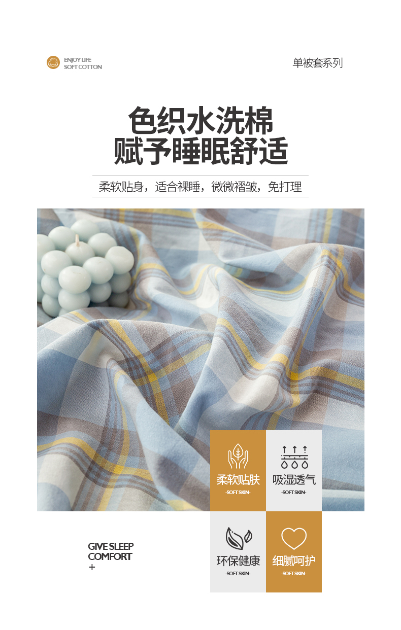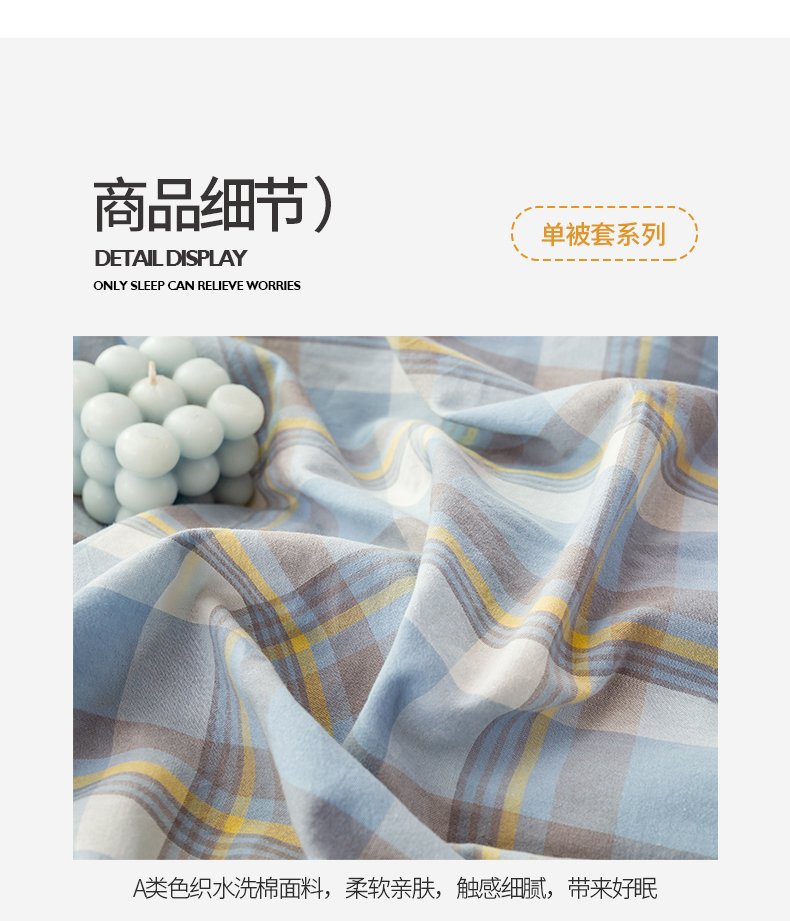 商品名称:2025新款A类色织水洗棉单被套 莫妮卡