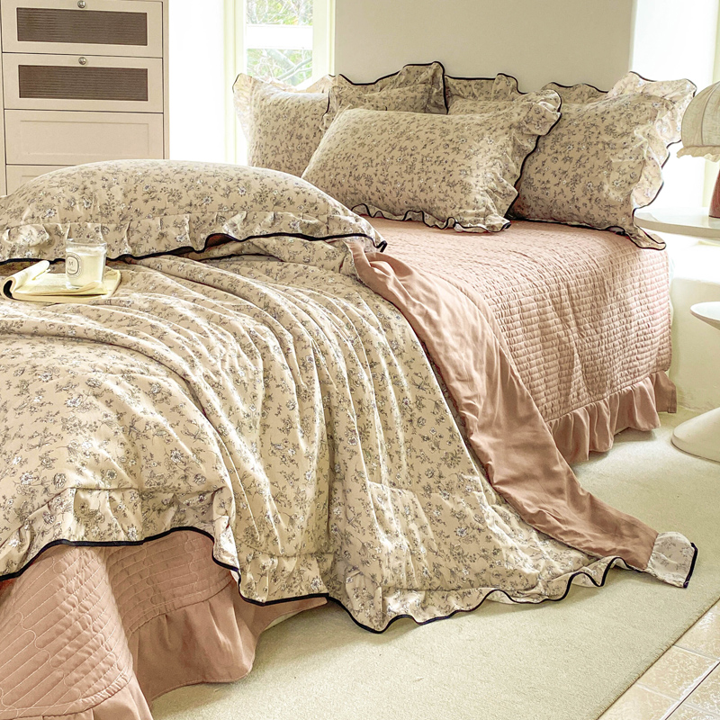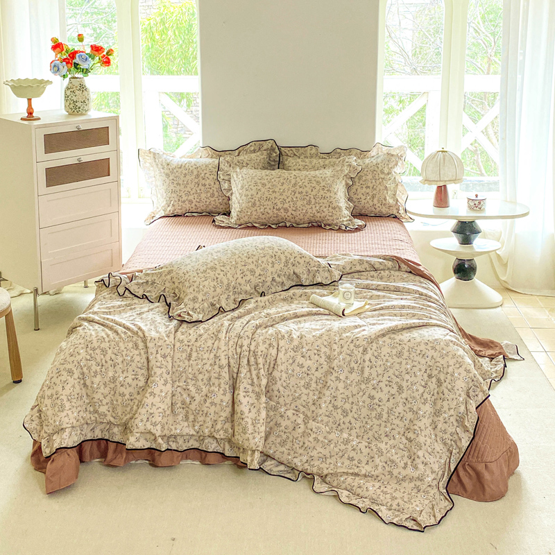 仟网汇 2025新款赫本针织双层纱夏被夏凉被空调被床盖四件套单夏被单床盖单品 花满楼