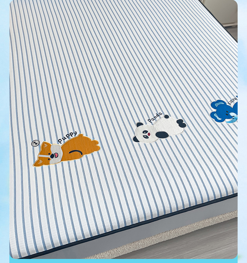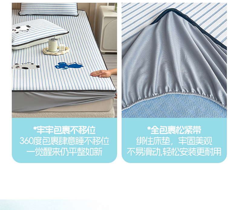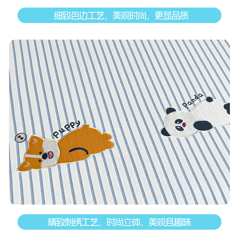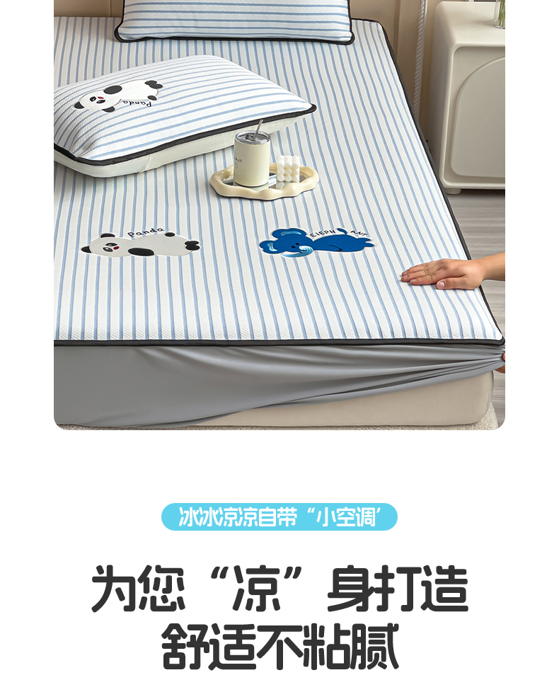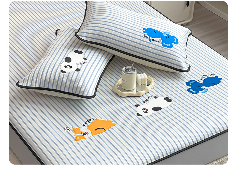 商品名称:炫拼 2025新款A类凉豆豆提花条纹卡通刺绣床笠席三件套 趴趴睡