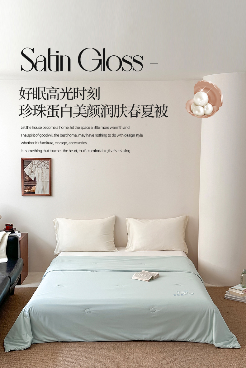 商品名称:亿莱鑫 2025新款水洗云柔棉珍珠蛋白润肤夏凉被 空调被 被子夏被春秋被 水兰