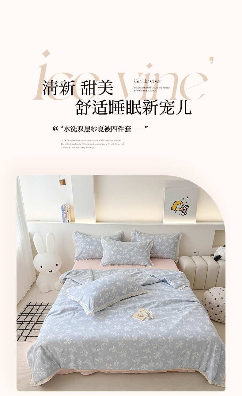 商品名称:吾欢心 2025新款水洗双层纱夏被四件套 青花瓷
