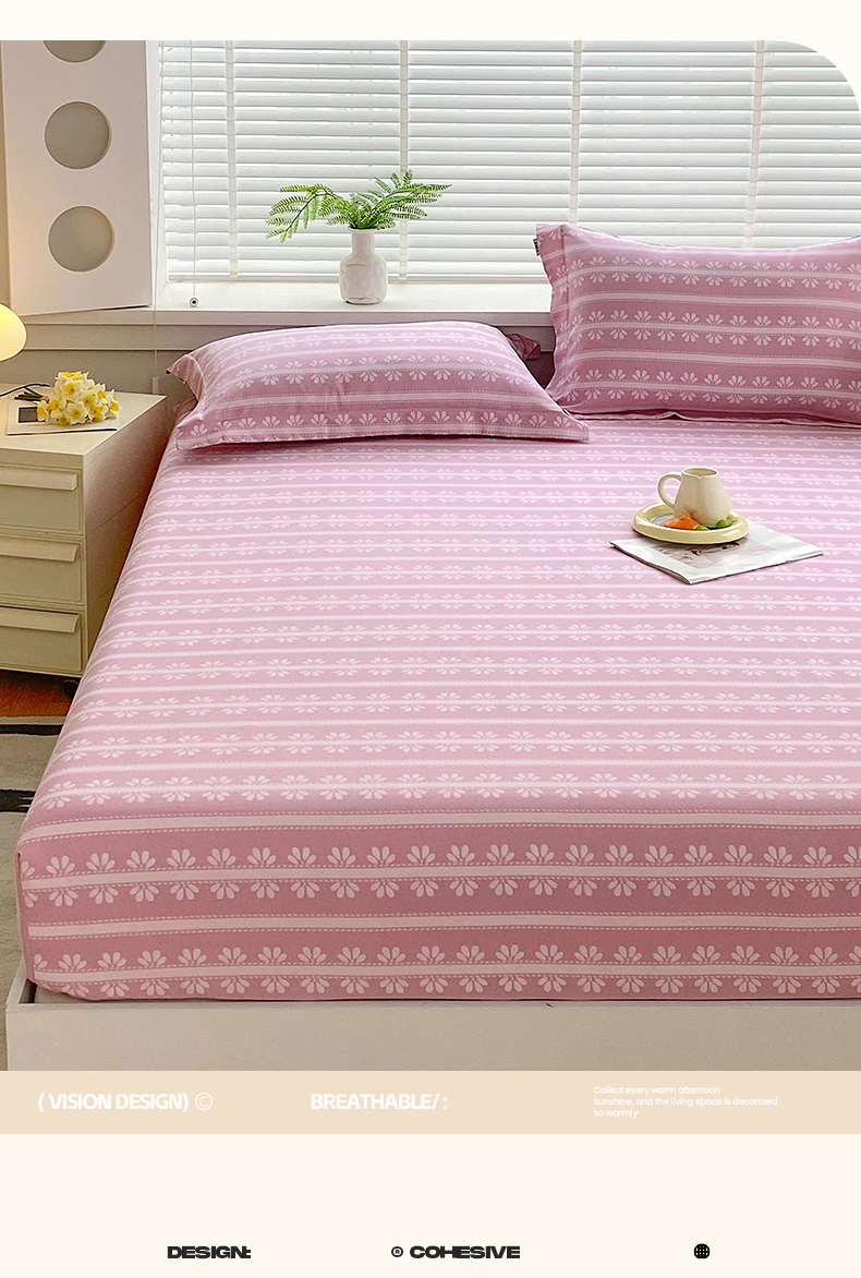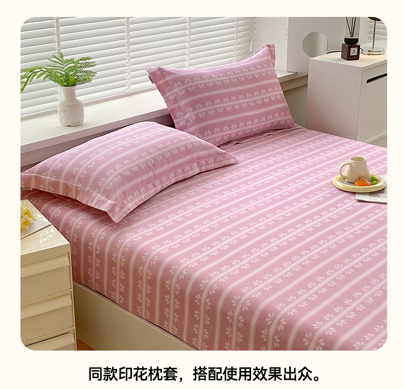 凯磊2025新款老粗布印花单品床笠床笠单件 甜纹悠居-粉
