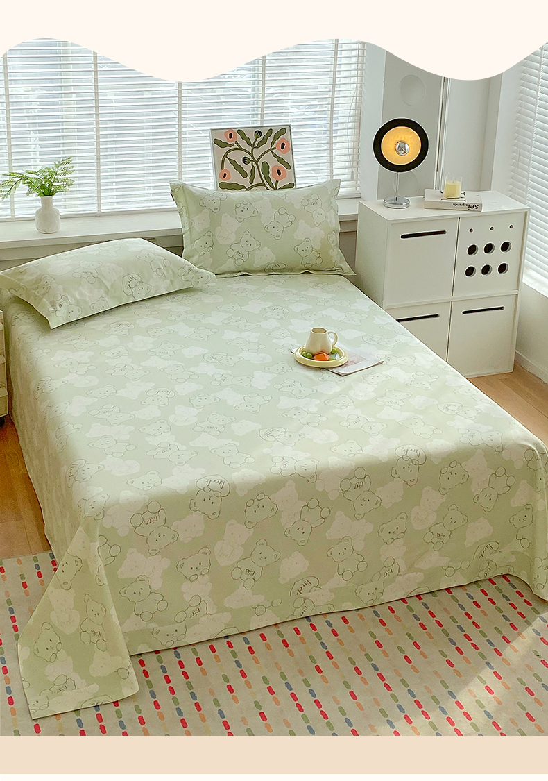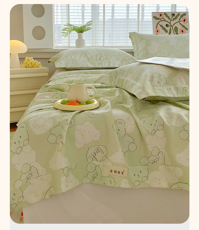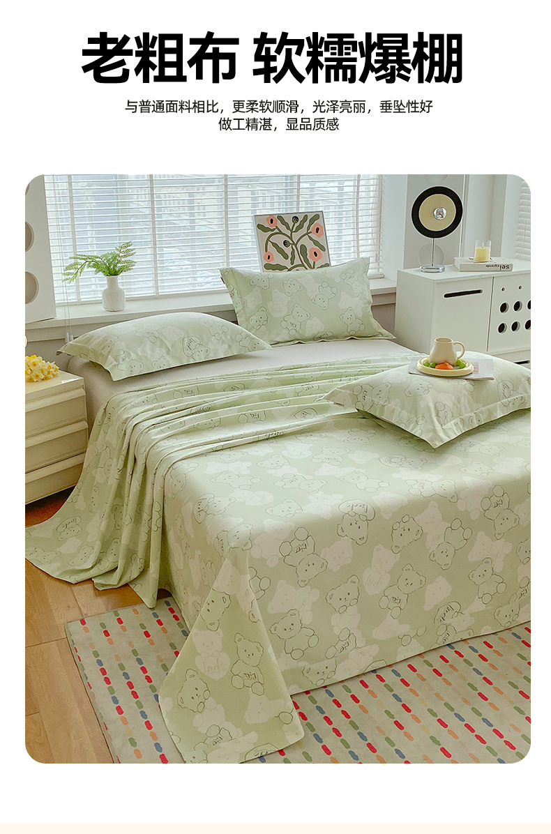 商品名称:凯磊2025新款老粗布印花单品床单床单单件 萌熊悠眠