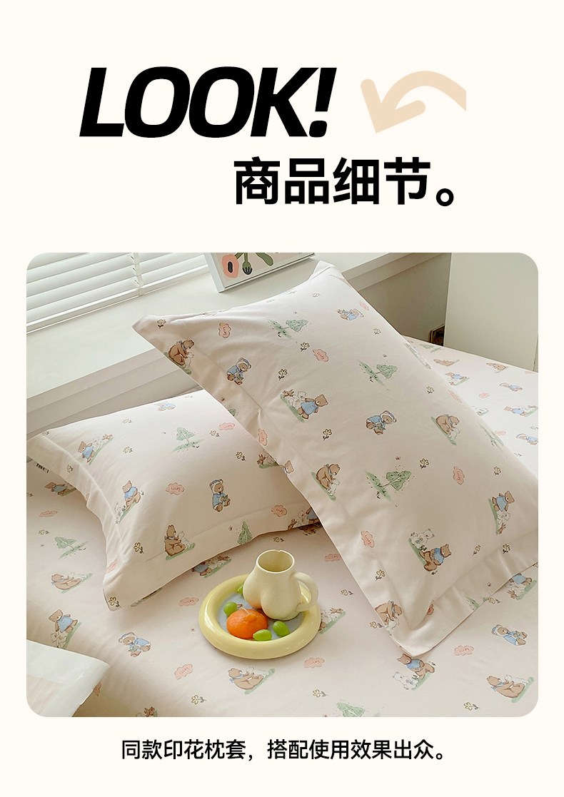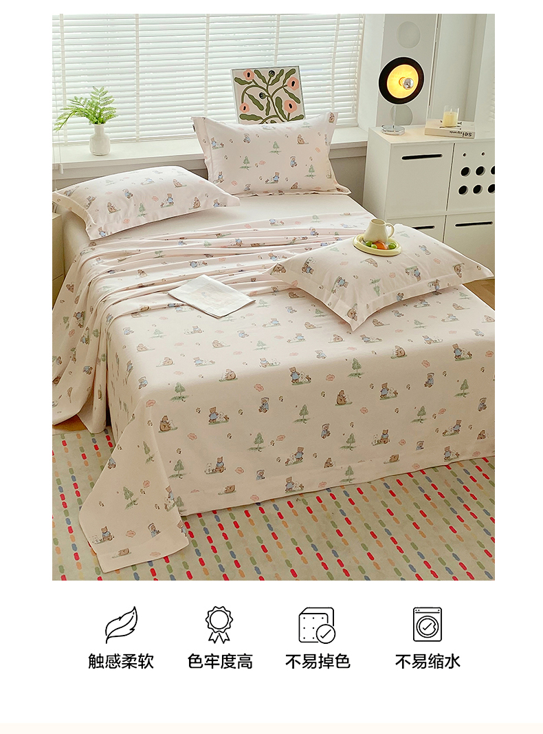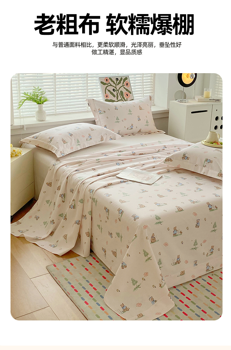 商品名称:凯磊2025新款老粗布印花单品床单床单单件 小熊漫居