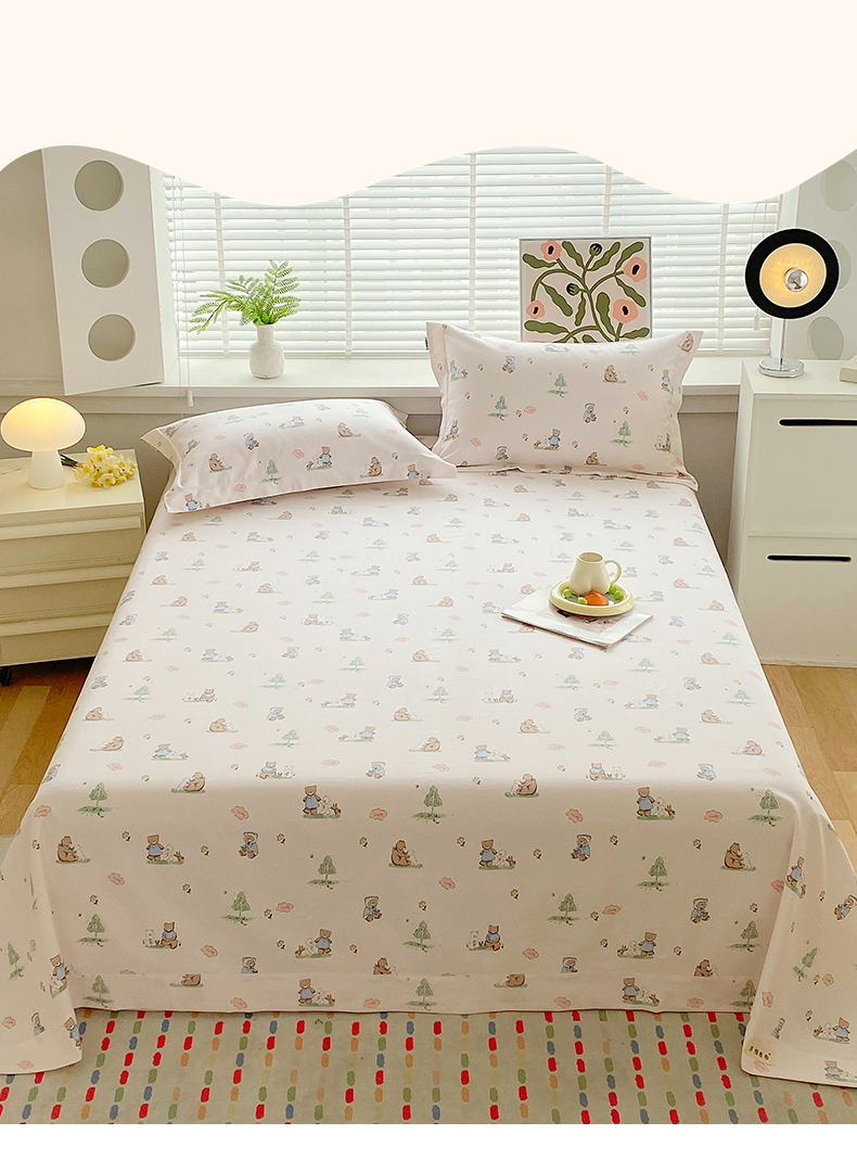 凯磊2025新款老粗布印花单品床单床单单件 小熊漫居