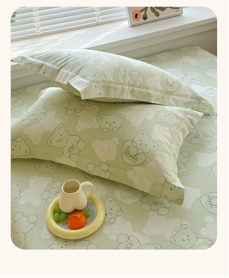 商品名称:凯磊2025新款老粗布印花单品枕套枕套单件 萌熊悠眠