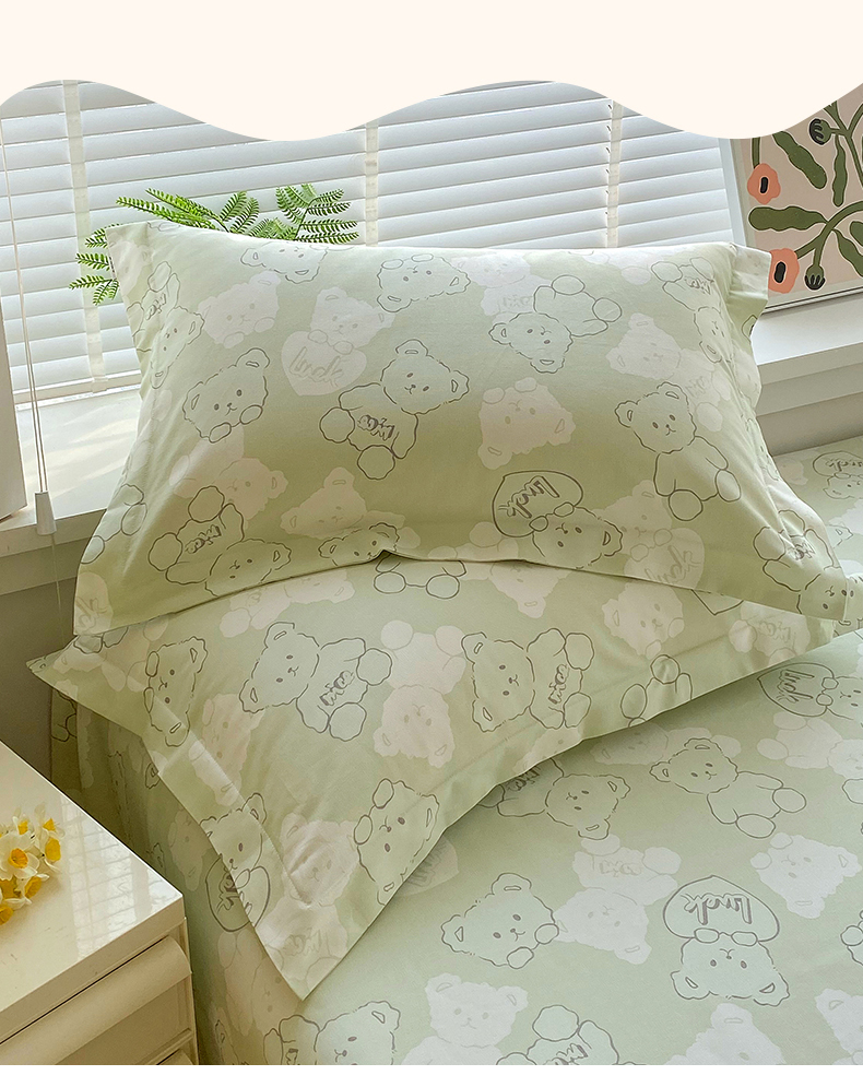 凯磊2025新款老粗布印花单品枕套枕套单件 萌熊悠眠
