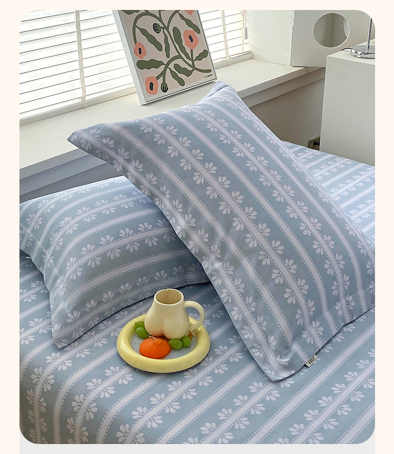 商品名称:凯磊2025新款老粗布印花单品枕套枕套单件 甜纹悠居-蓝
