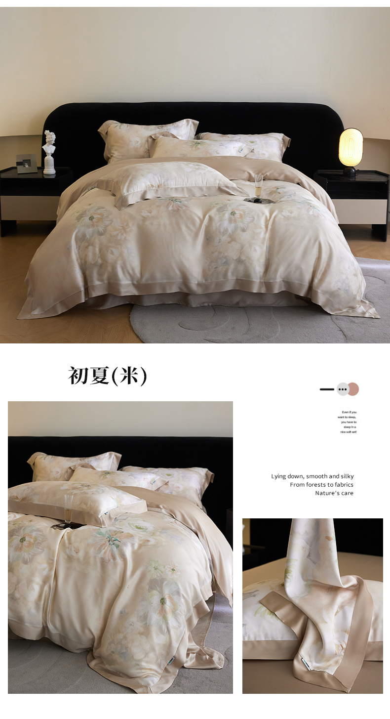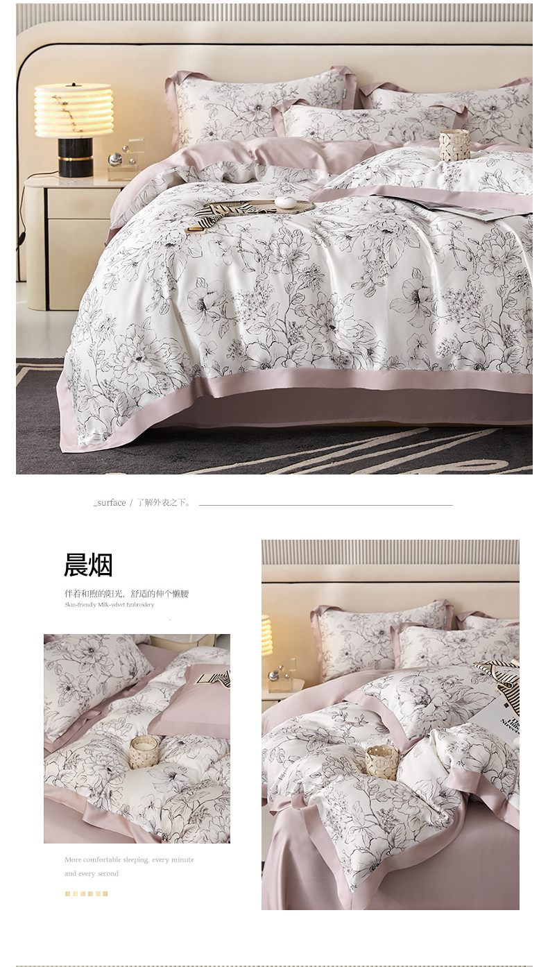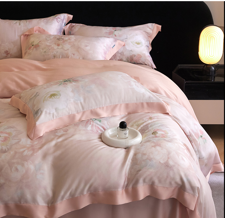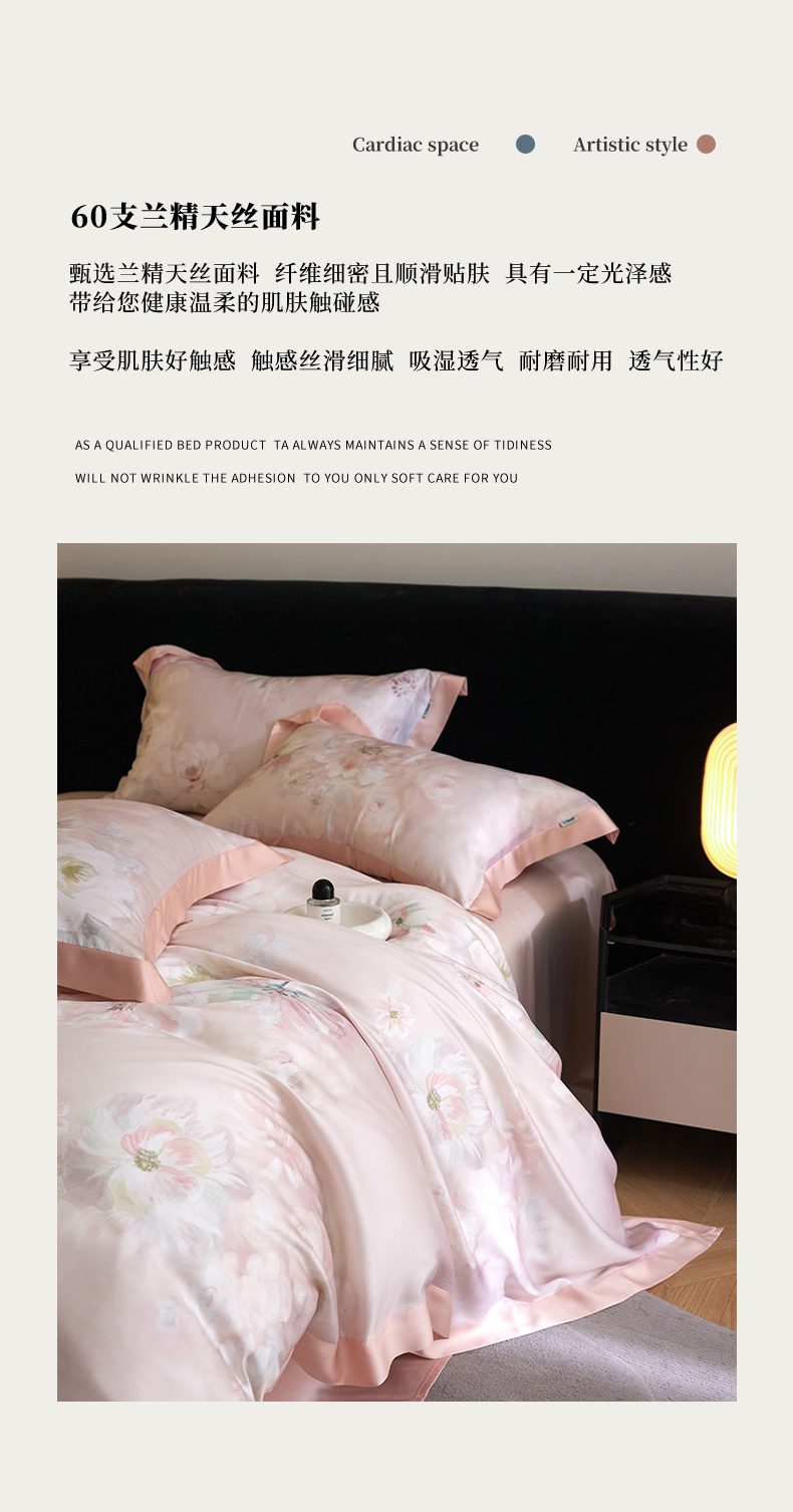 商品名称:禾时 2025新款60S兰精天丝印花四件套 粉黛