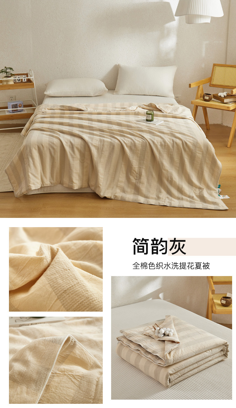 被子 > 夏被 > 良品汇馆 2025【水洗大豆宽条纹夏被】日式无印A类水洗提花大豆夏被良品宽条纹夏季被子双人全棉空调被 简韵灰