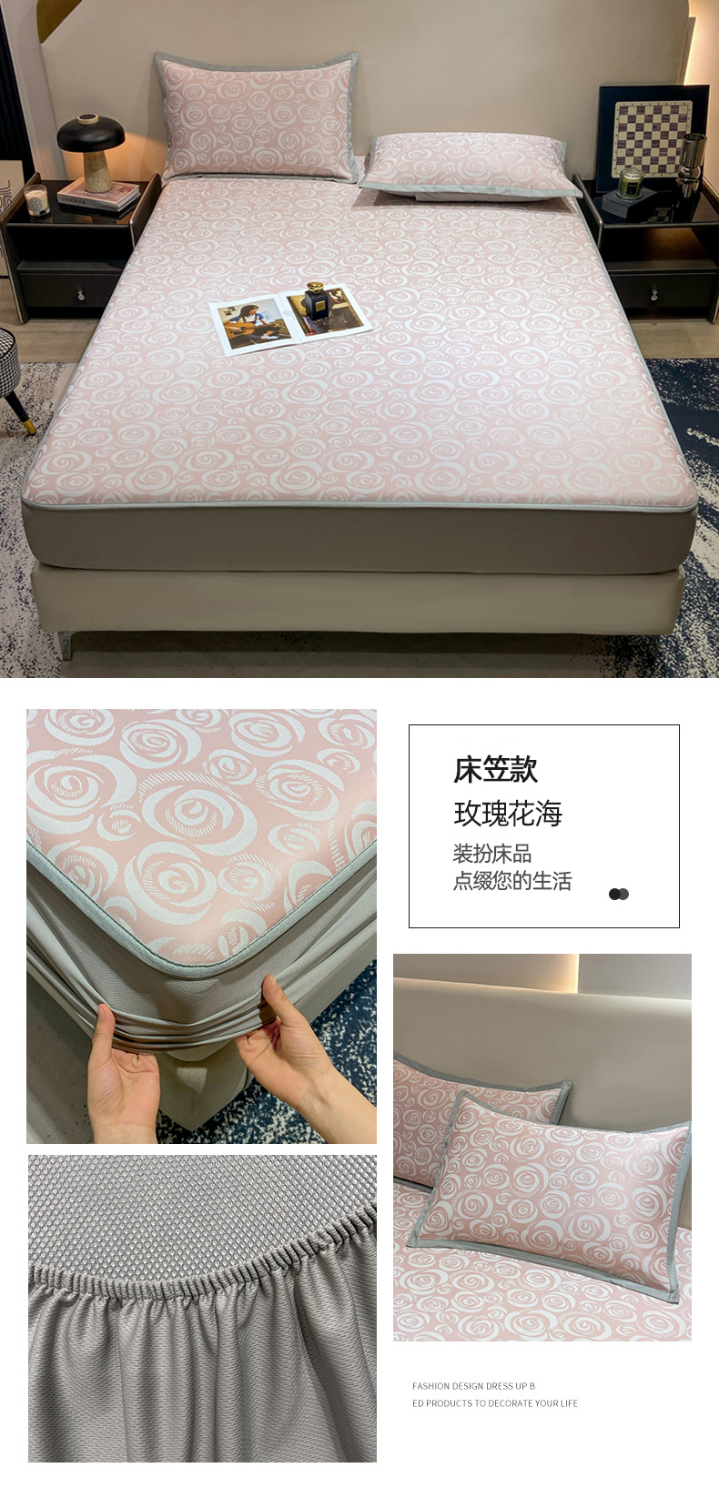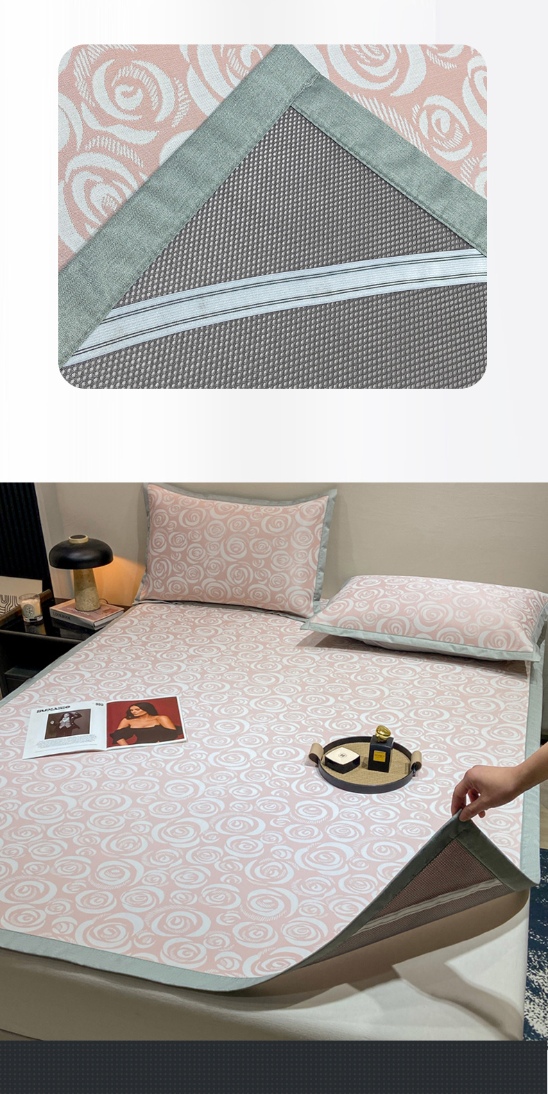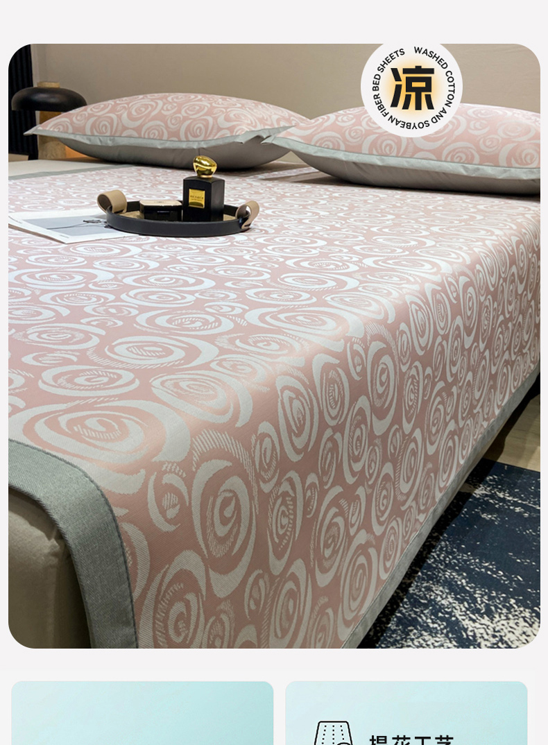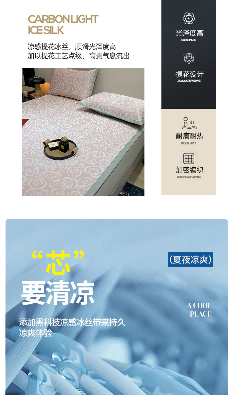 当前位置: 91家纺网 > 商品网购 > 床上用品 > 凉席 > 冰丝席 > 蝶帕家纺 2025新品A类PE高分子乙纶复合三明治提花冰丝席 玫瑰花海 床笠
