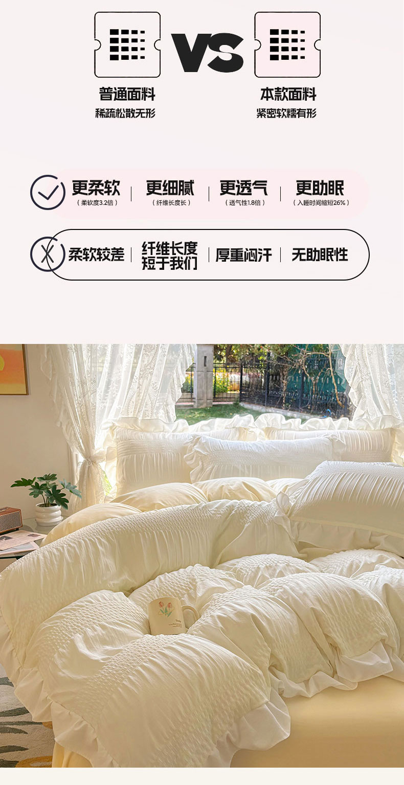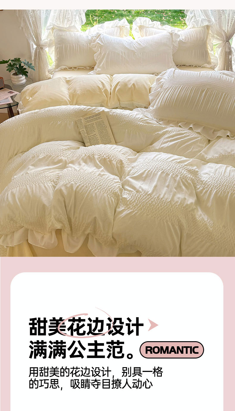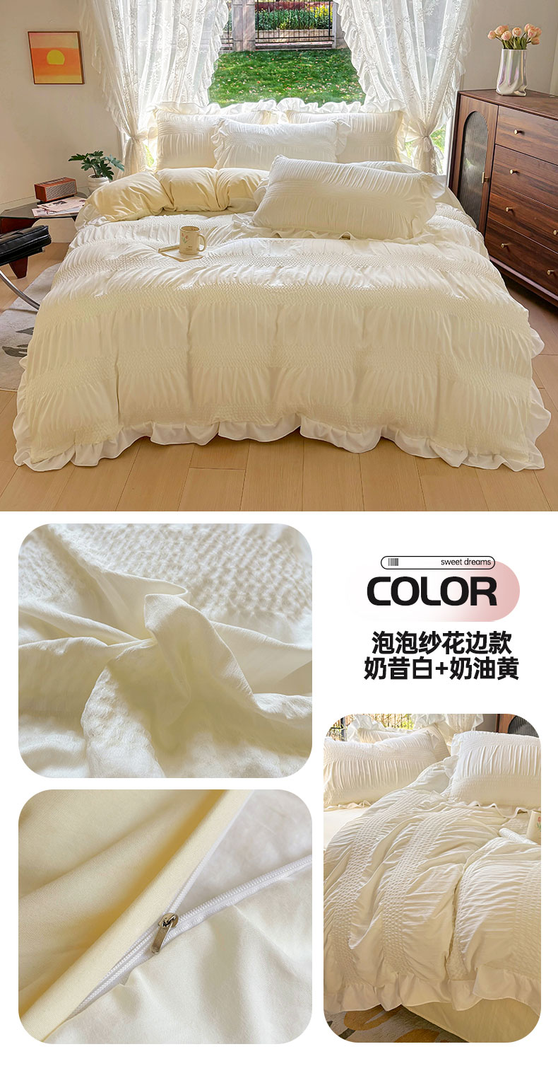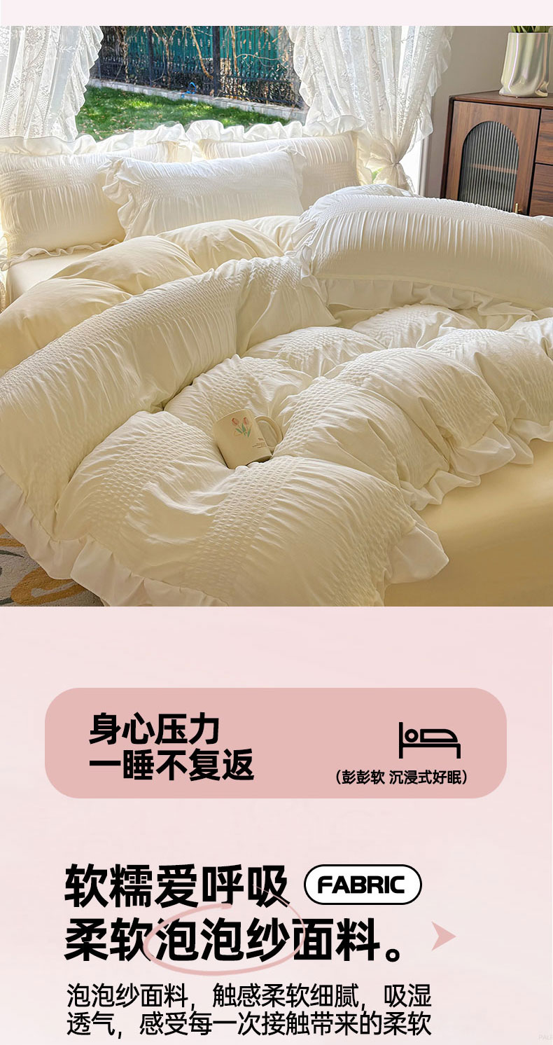 当前位置: 91家纺网 > 商品网购 > 床品套件 > 四件套 > 其它四件套 > 灰鲸2025新款泡泡纱公主风花边款四件套 泡泡纱花边款-奶昔白+奶油黄