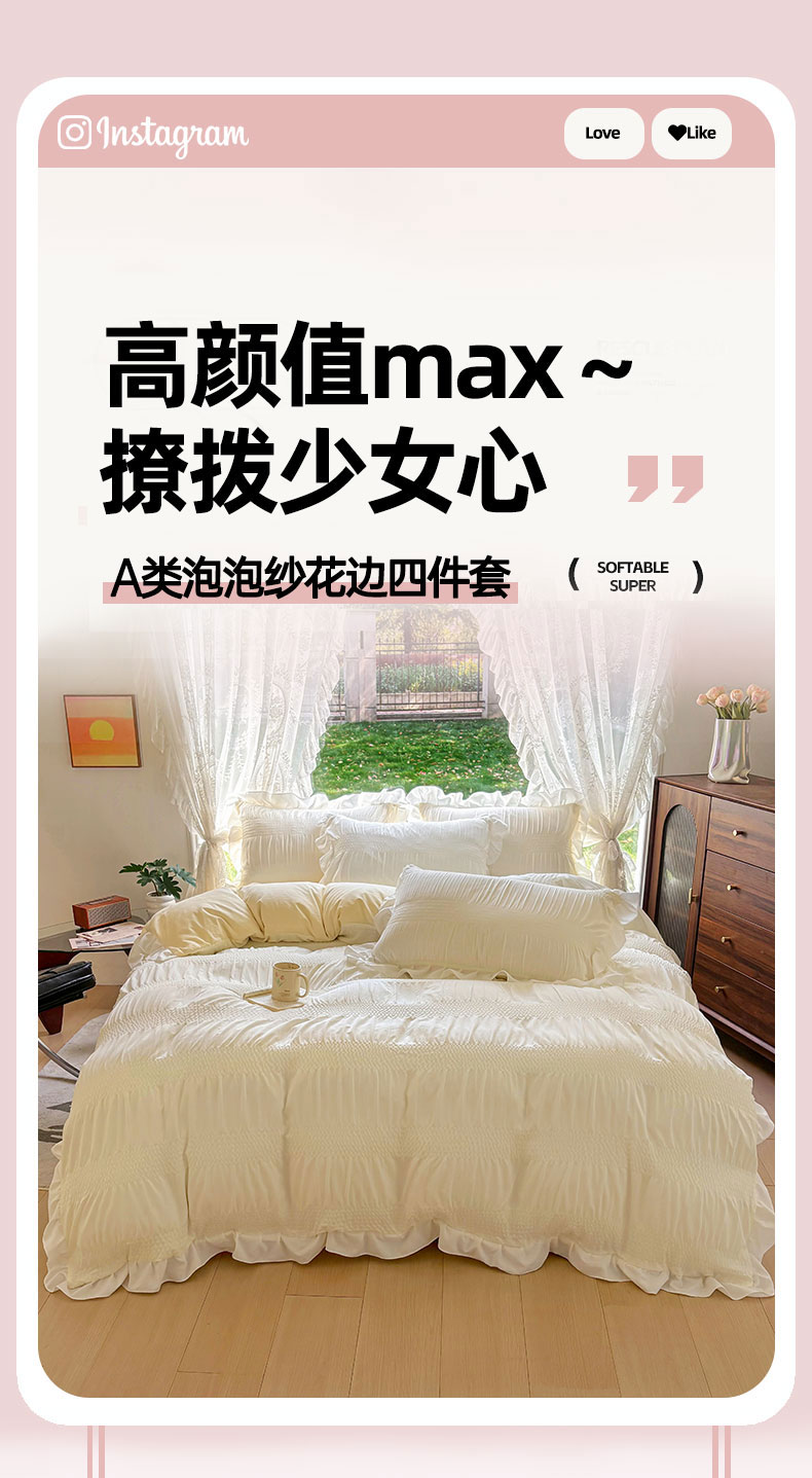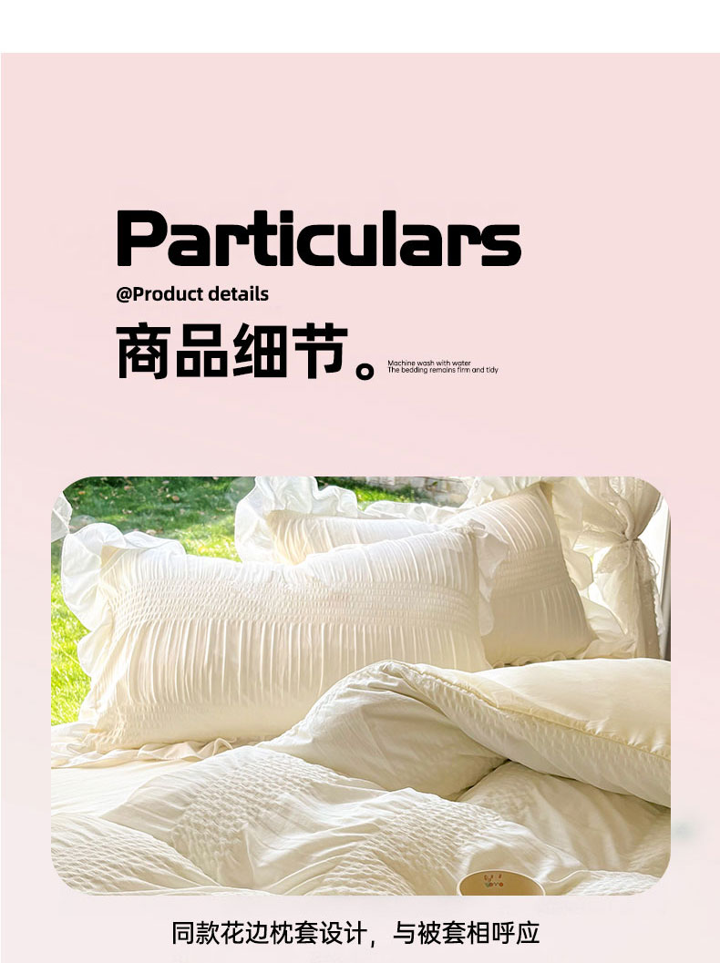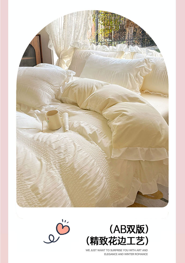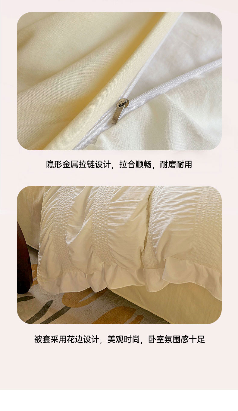 当前位置: 91家纺网 > 商品网购 > 床品套件 > 四件套 > 其它四件套 > 灰鲸2025新款泡泡纱公主风花边款四件套 泡泡纱花边款-奶昔白+奶油黄