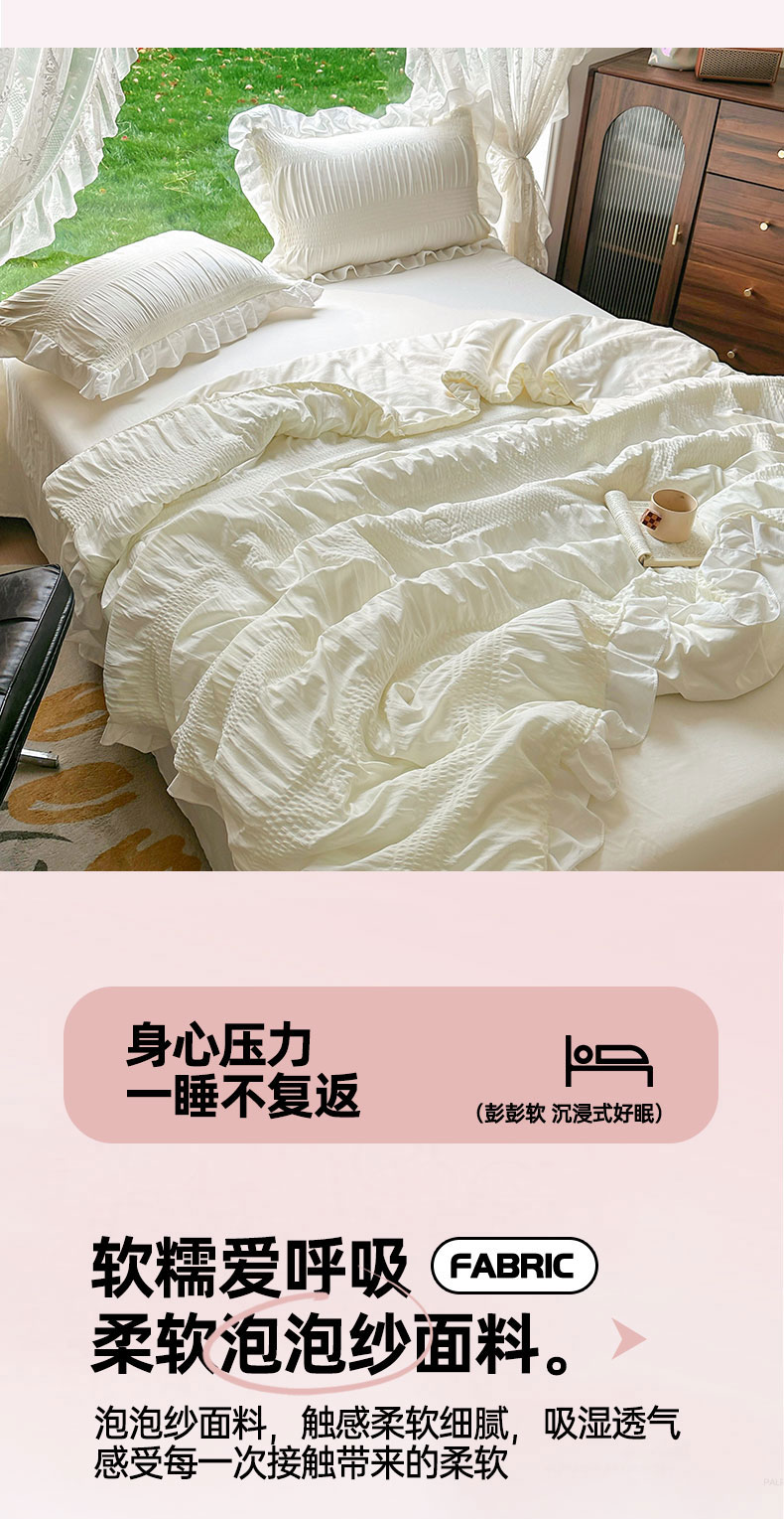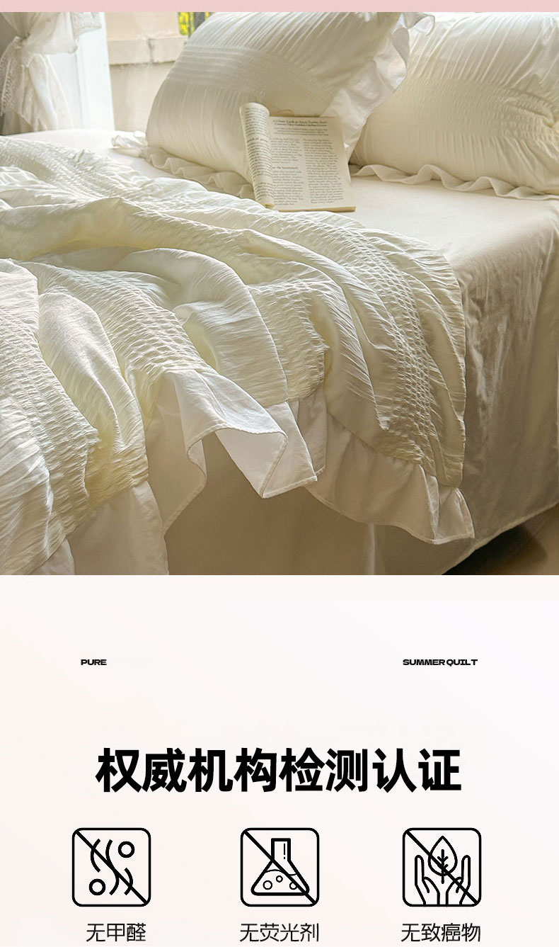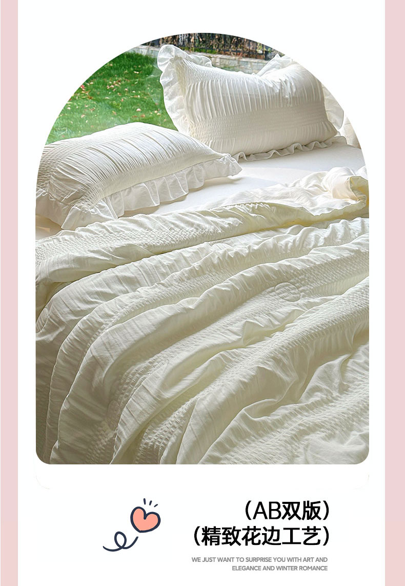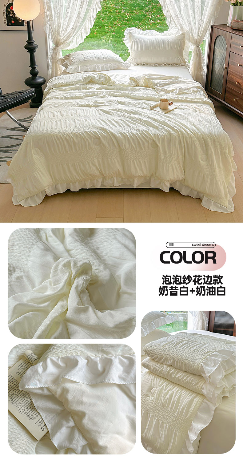 • 91家纺网 家纺一手货源 找家纺 灰鲸2025新款泡泡纱公主风花边款夏被夏凉被空调被四件套系列 泡泡纱花边款-奶昔白+奶油白