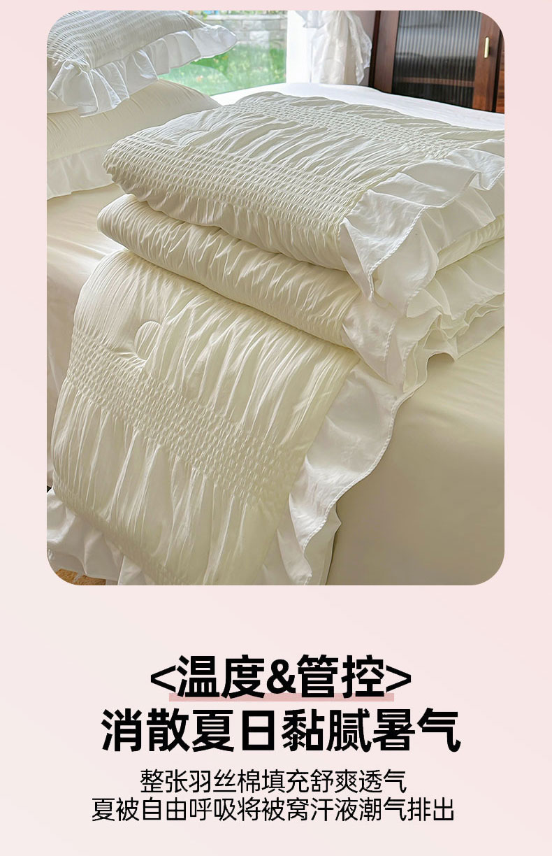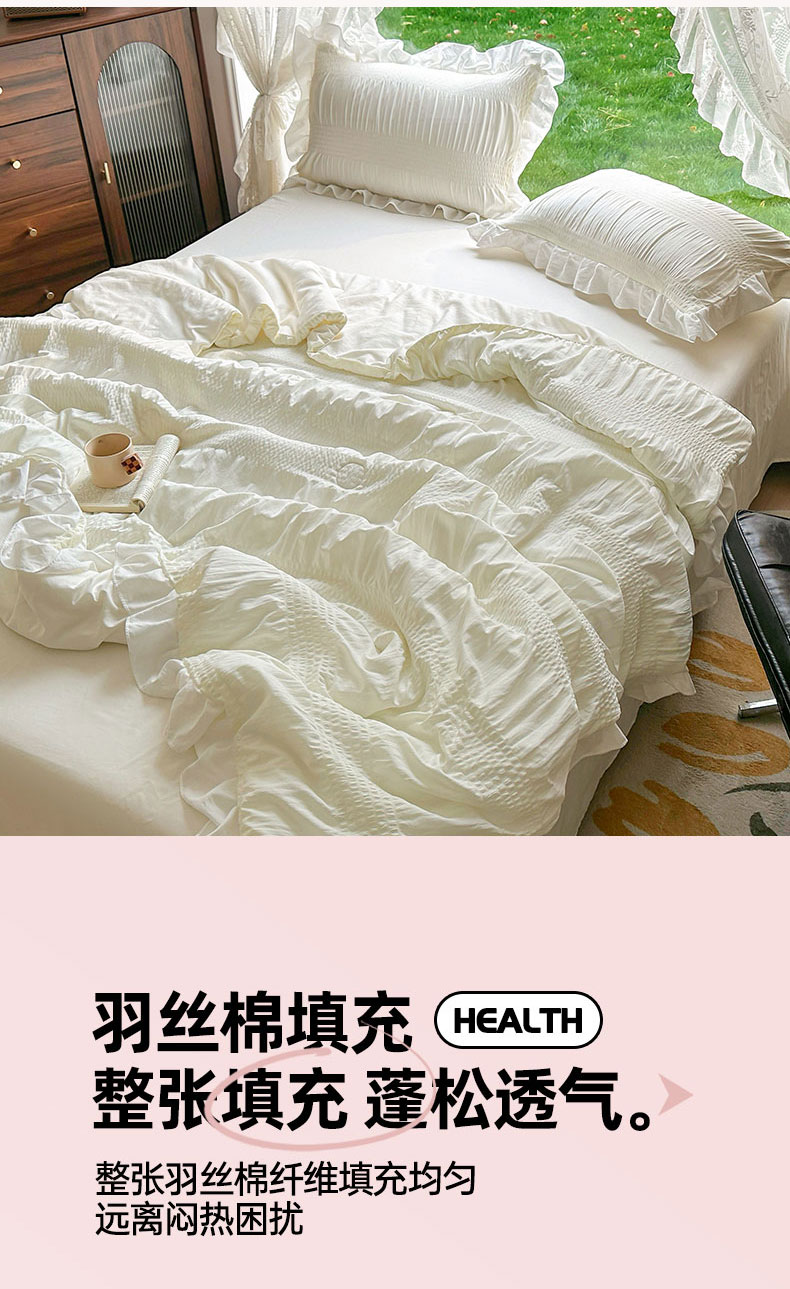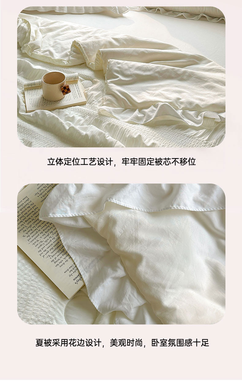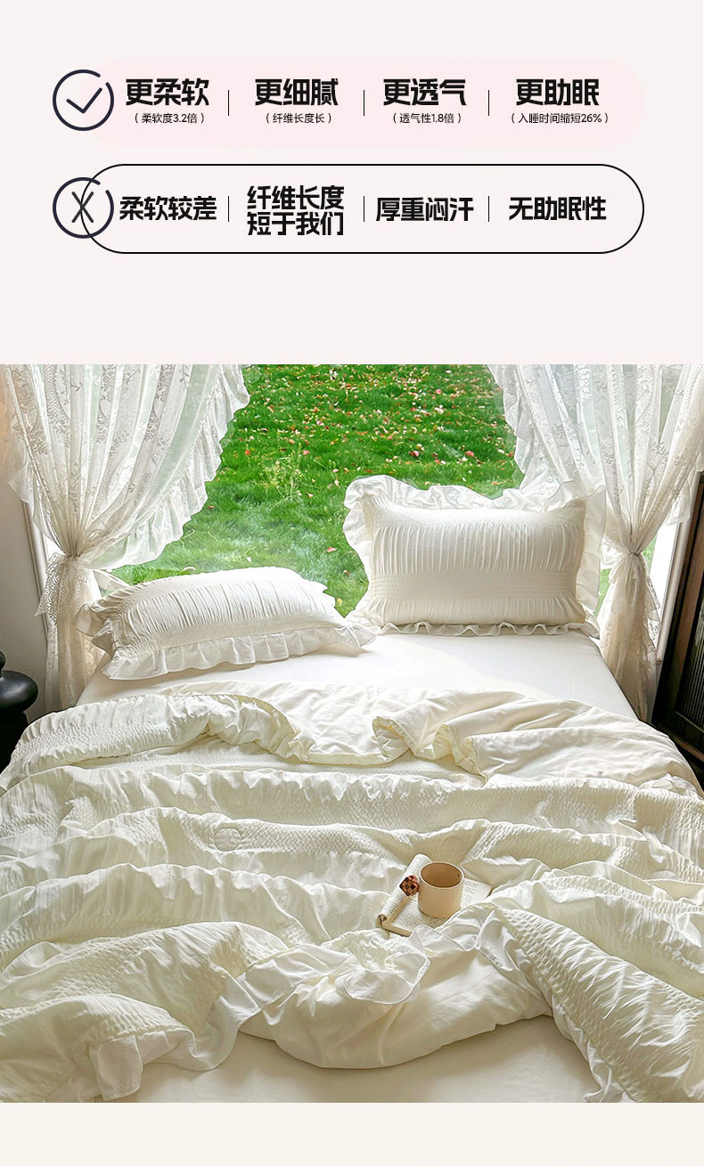• 91家纺网 家纺一手货源 找家纺 灰鲸2025新款泡泡纱公主风花边款夏被夏凉被空调被四件套系列 泡泡纱花边款-奶昔白+奶油白