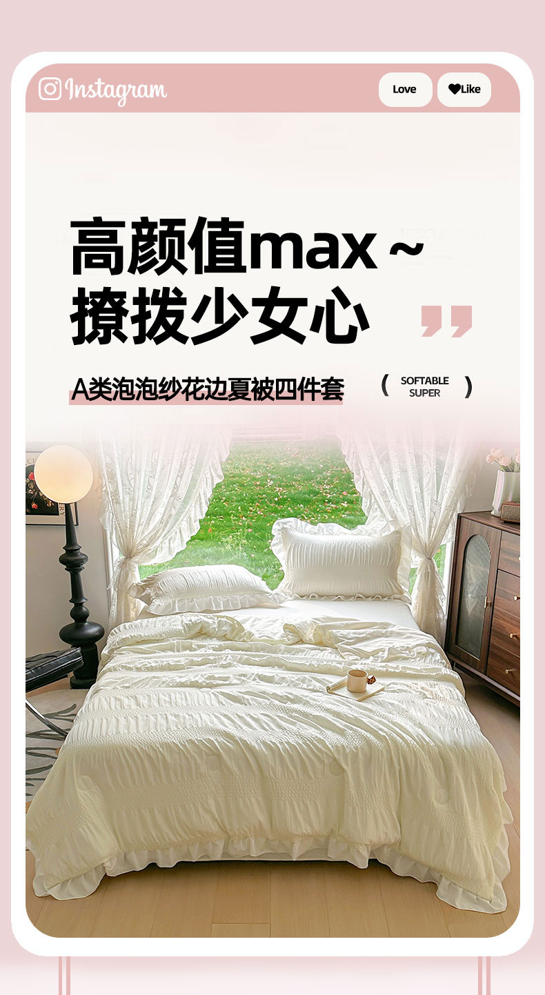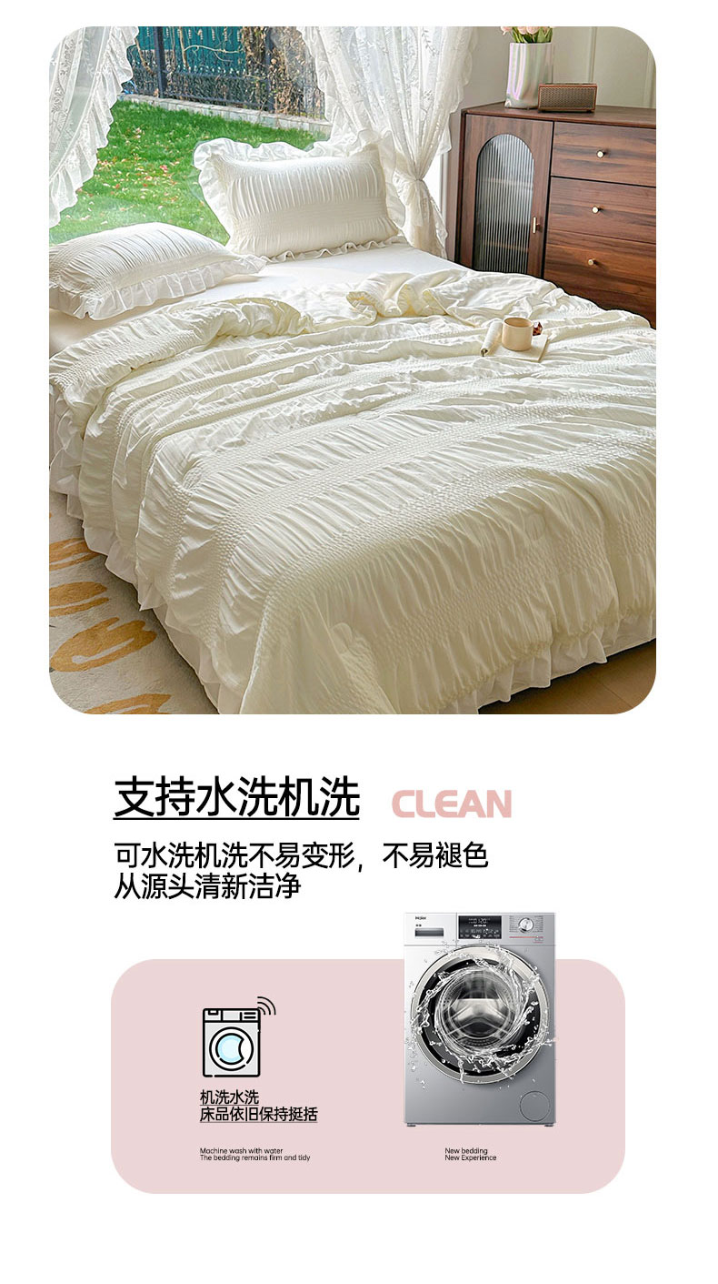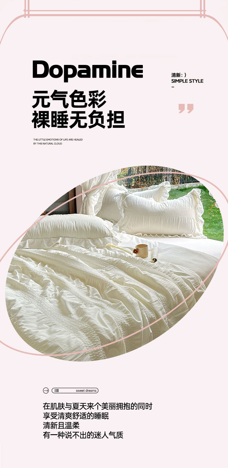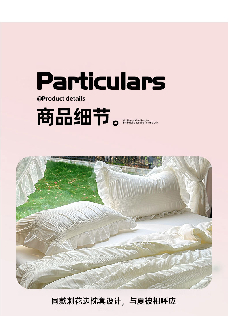 • 91家纺网 家纺一手货源 找家纺 灰鲸2025新款泡泡纱公主风花边款夏被夏凉被空调被四件套系列 泡泡纱花边款-奶昔白+奶油白