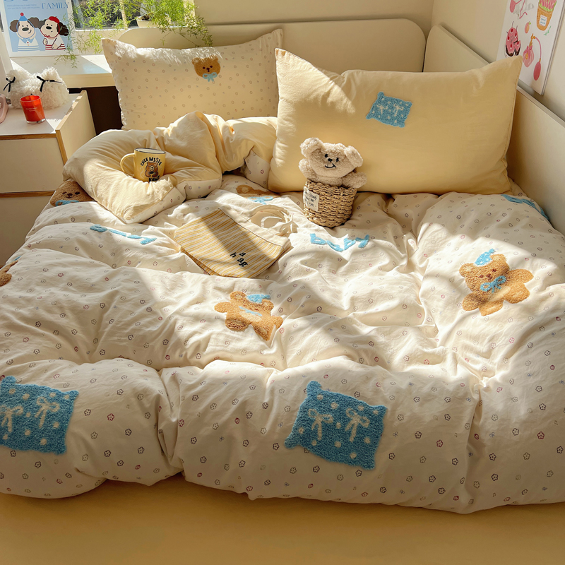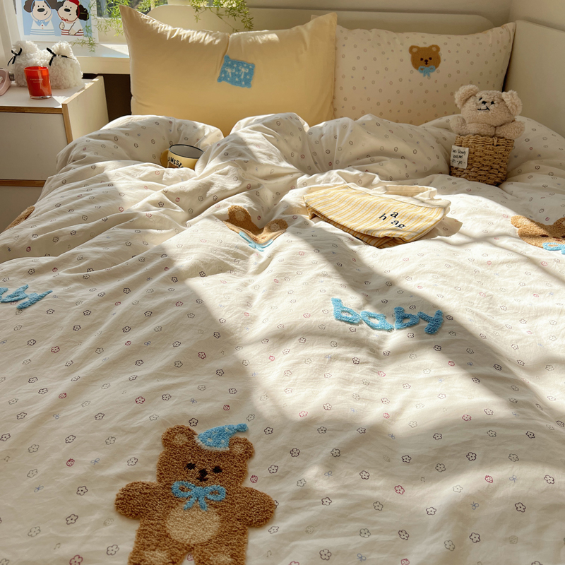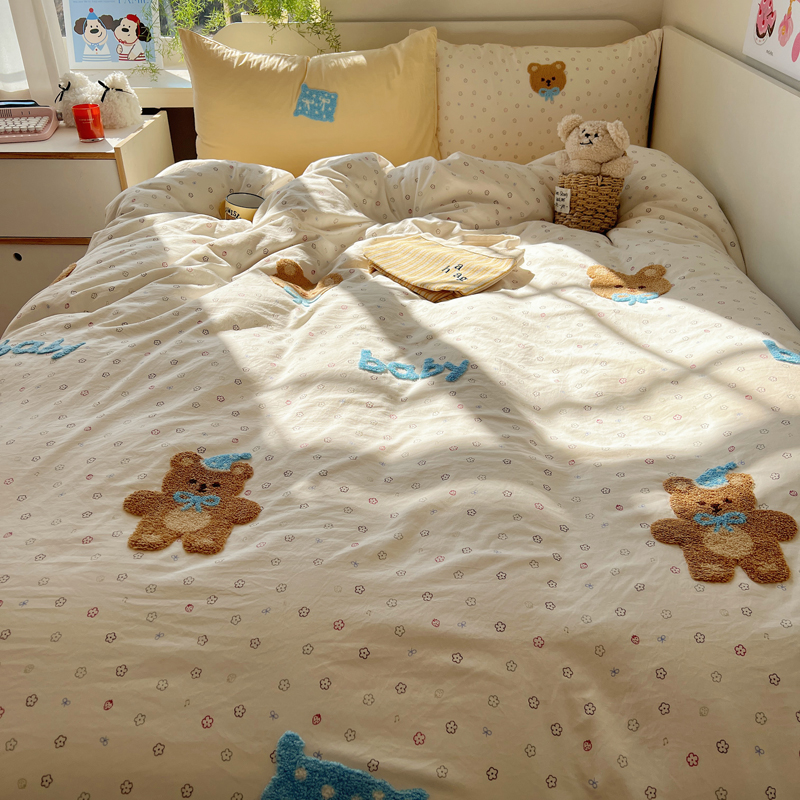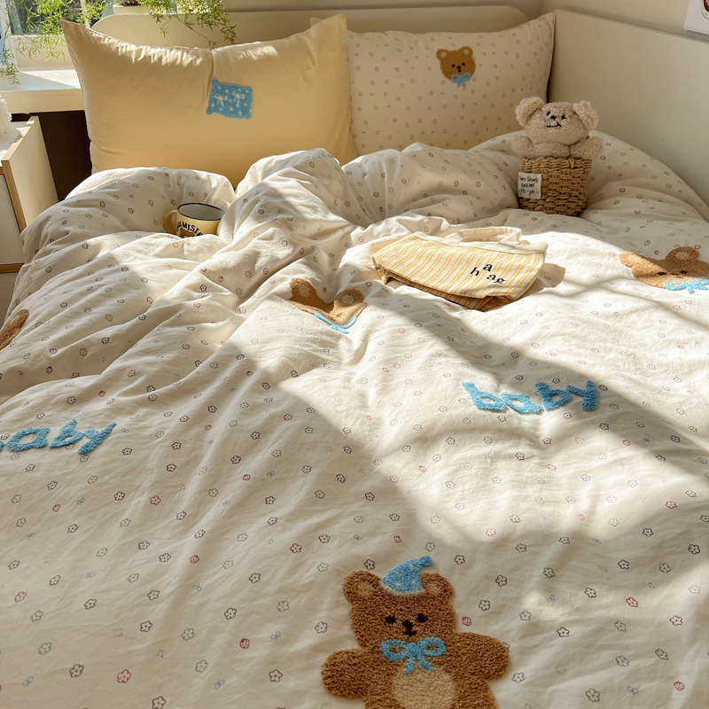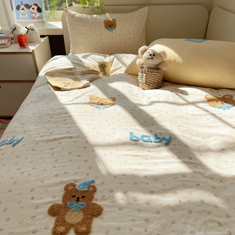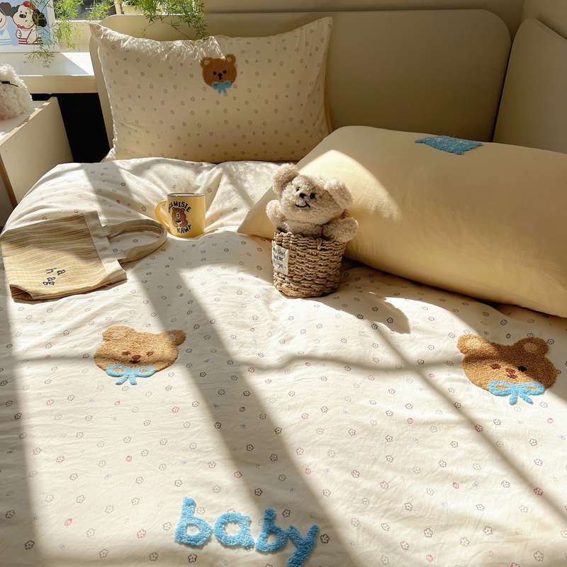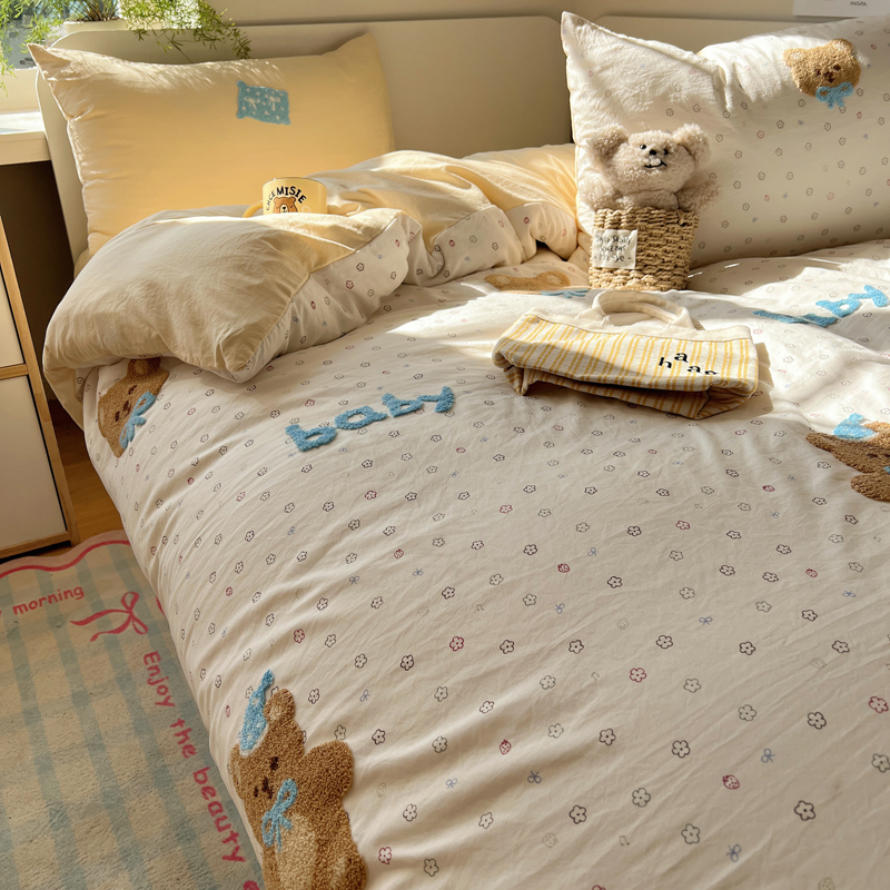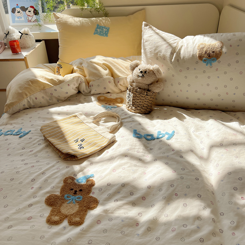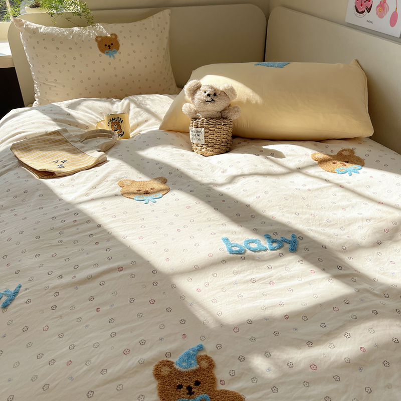 商品名称:顾里家纺 2025新款ins韩系童趣毛巾绣云朵棉四件套 宝贝熊