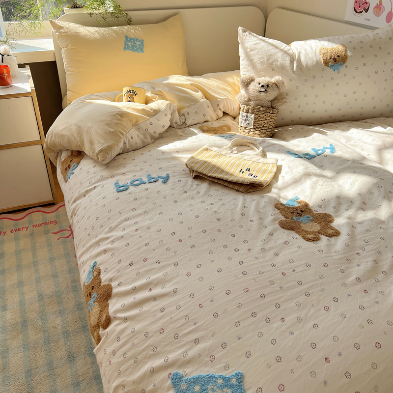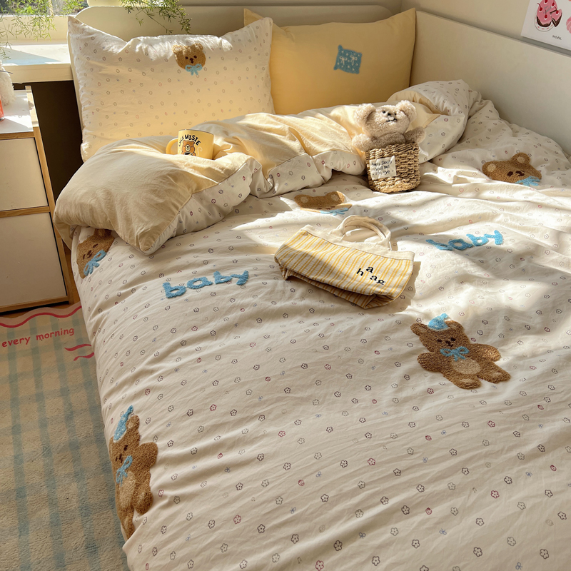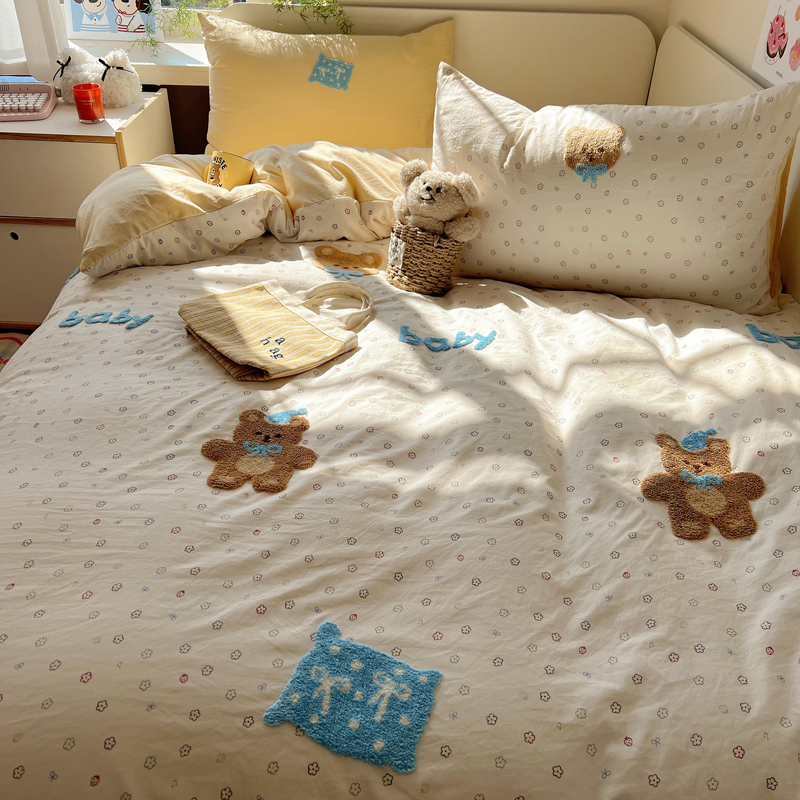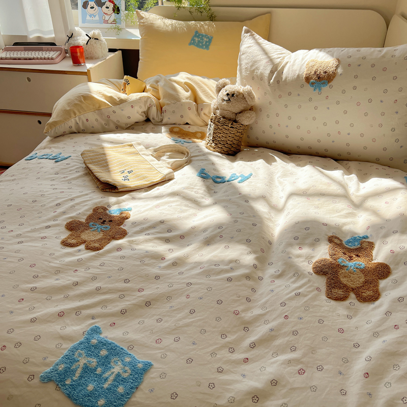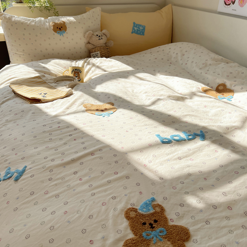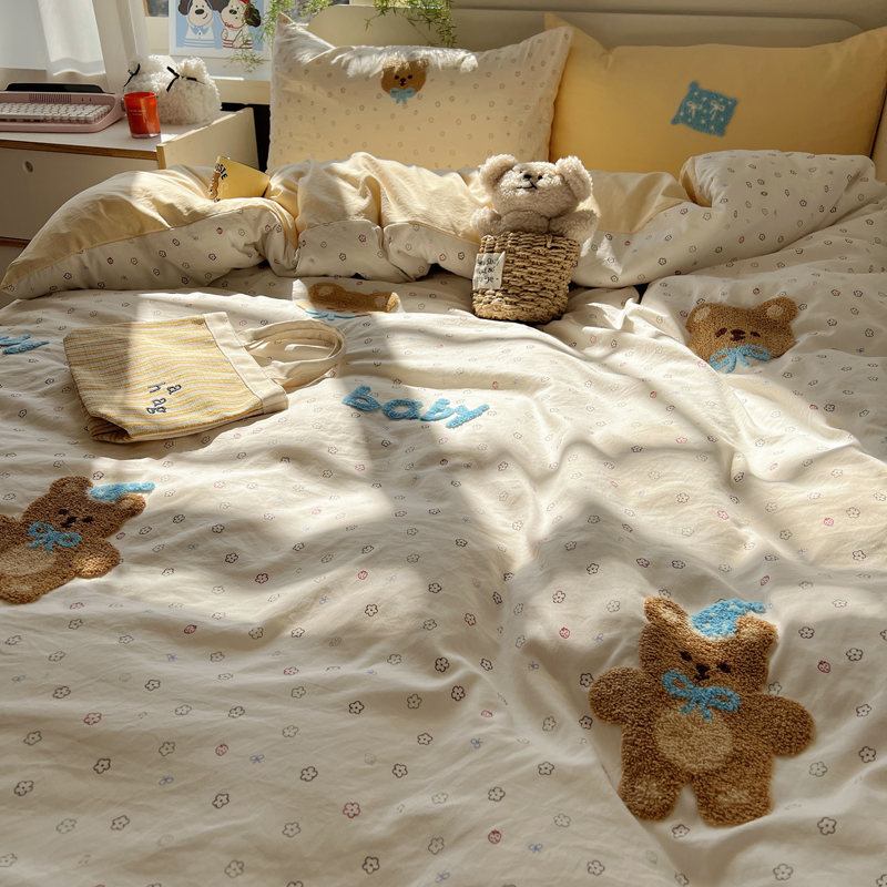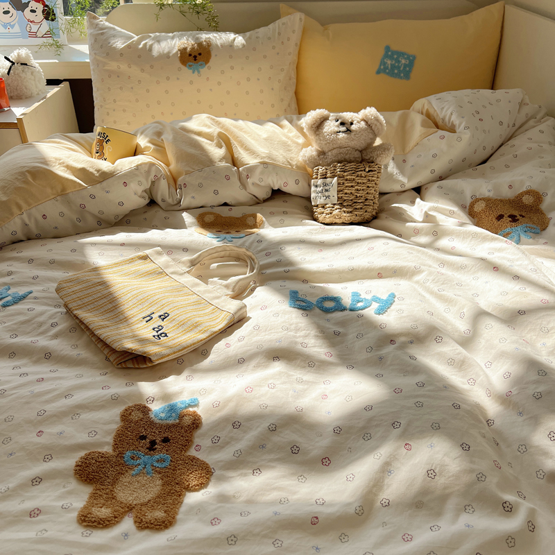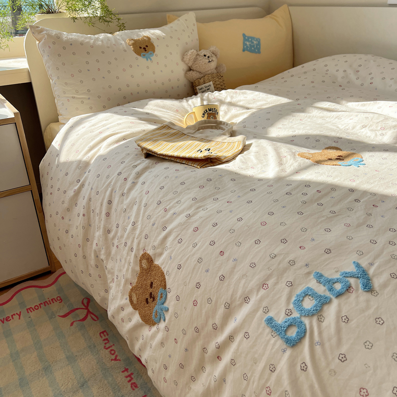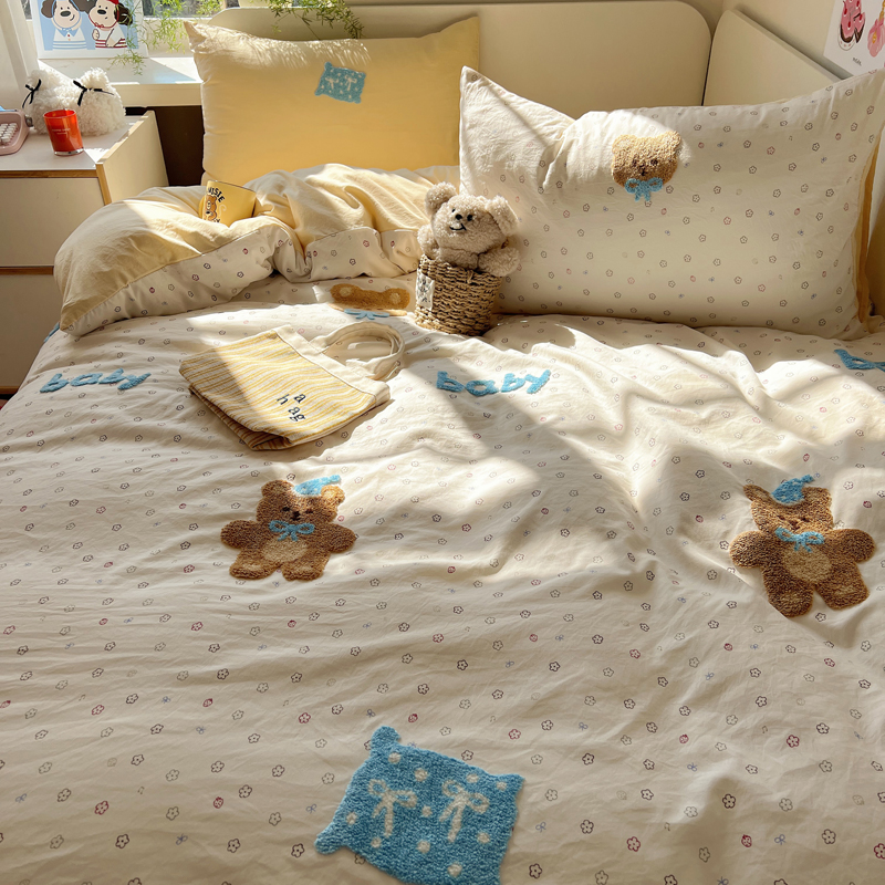 商品名称:顾里家纺 2025新款ins韩系童趣毛巾绣云朵棉四件套 宝贝熊
