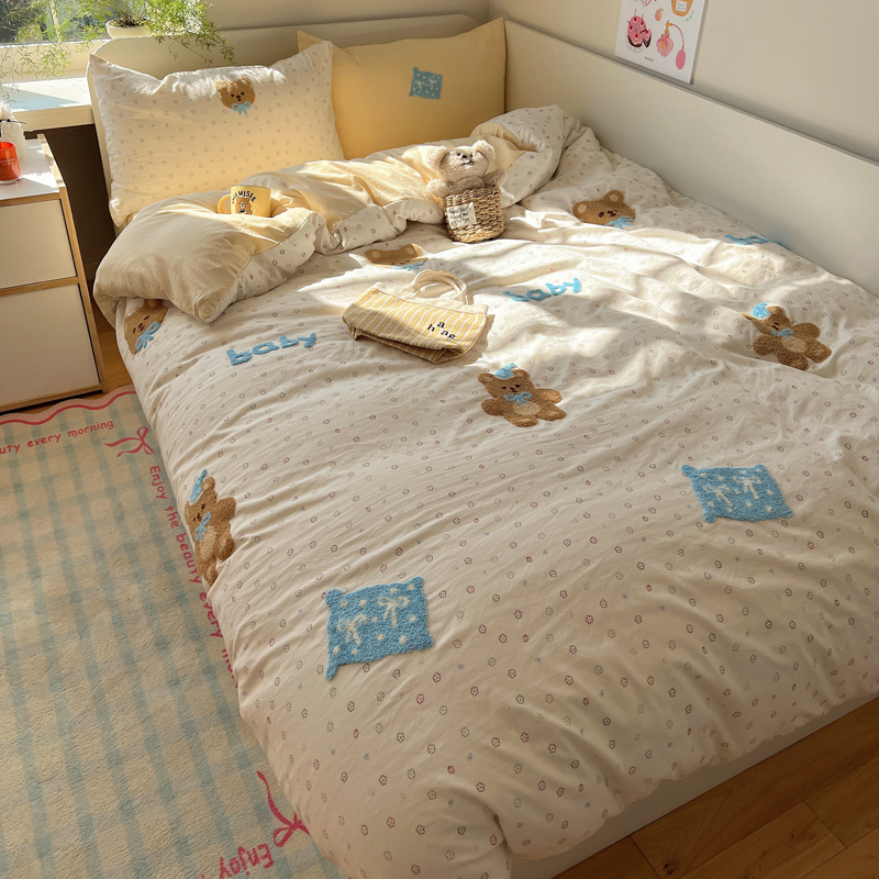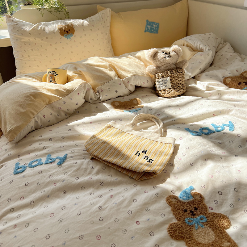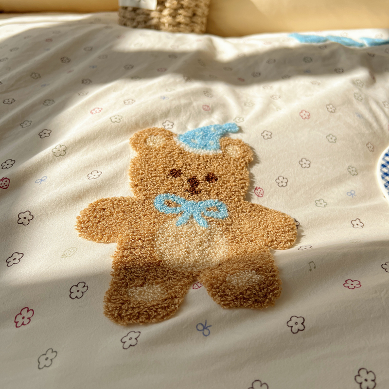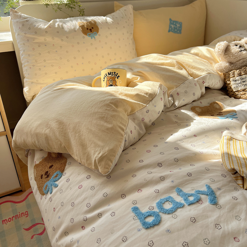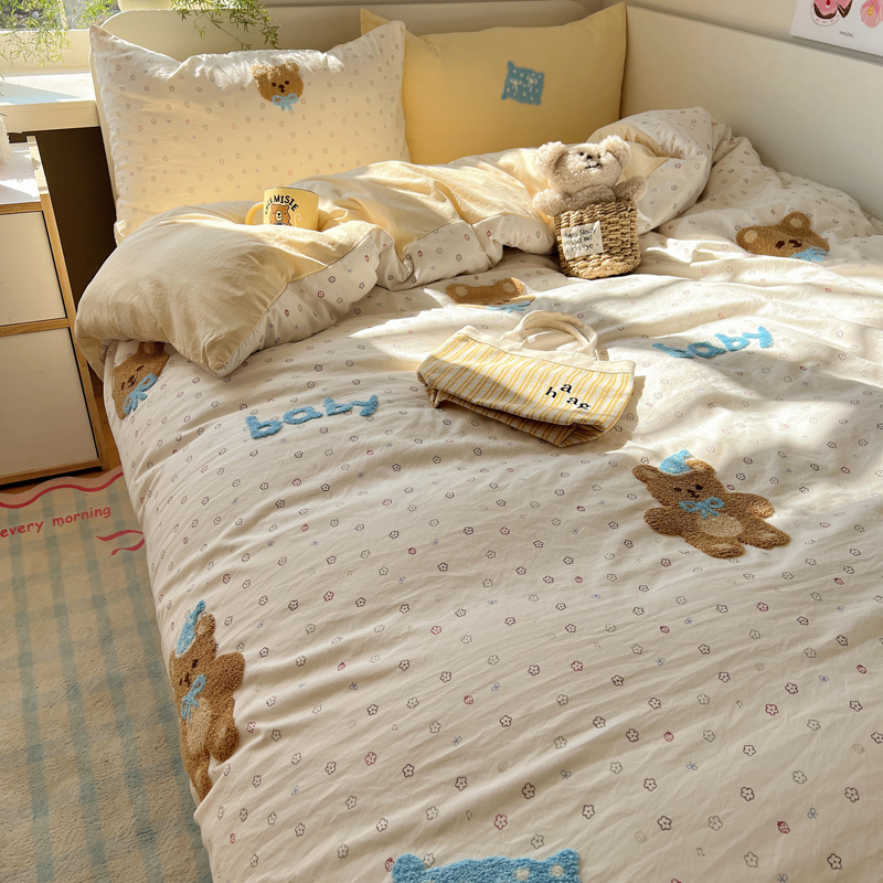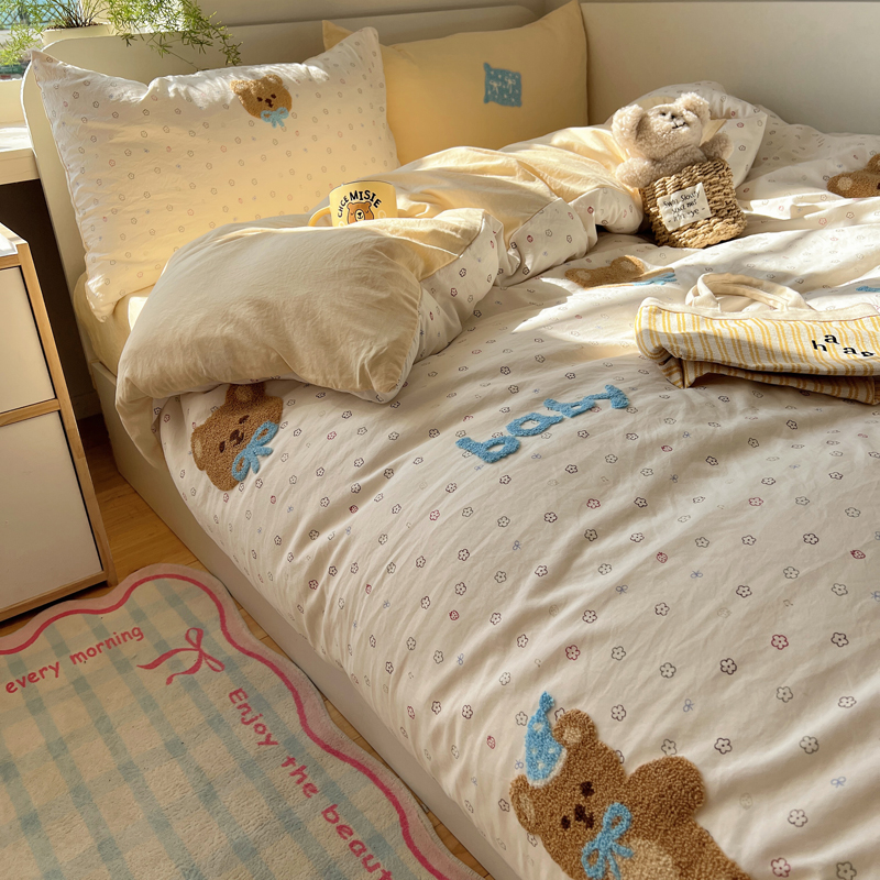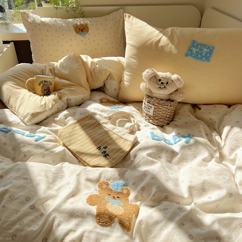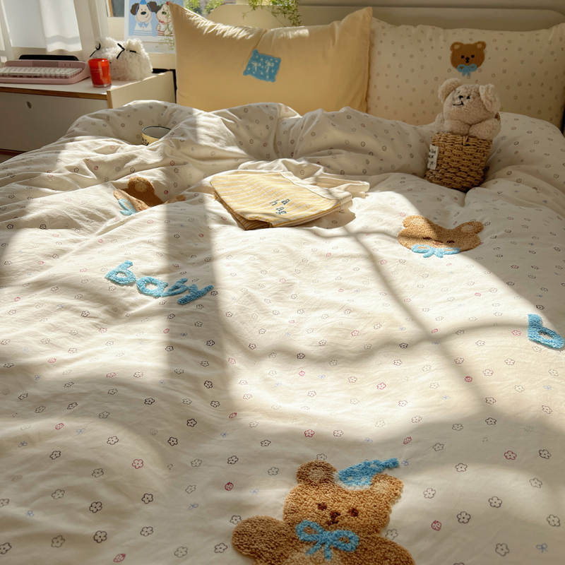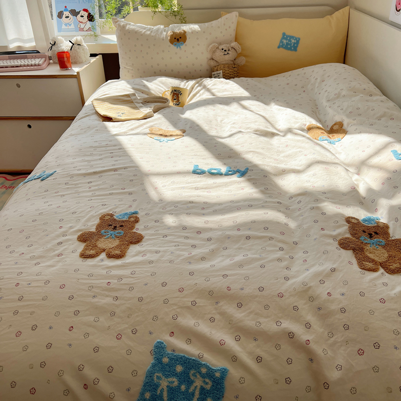 商品名称:顾里家纺 2025新款ins韩系童趣毛巾绣云朵棉四件套 宝贝熊